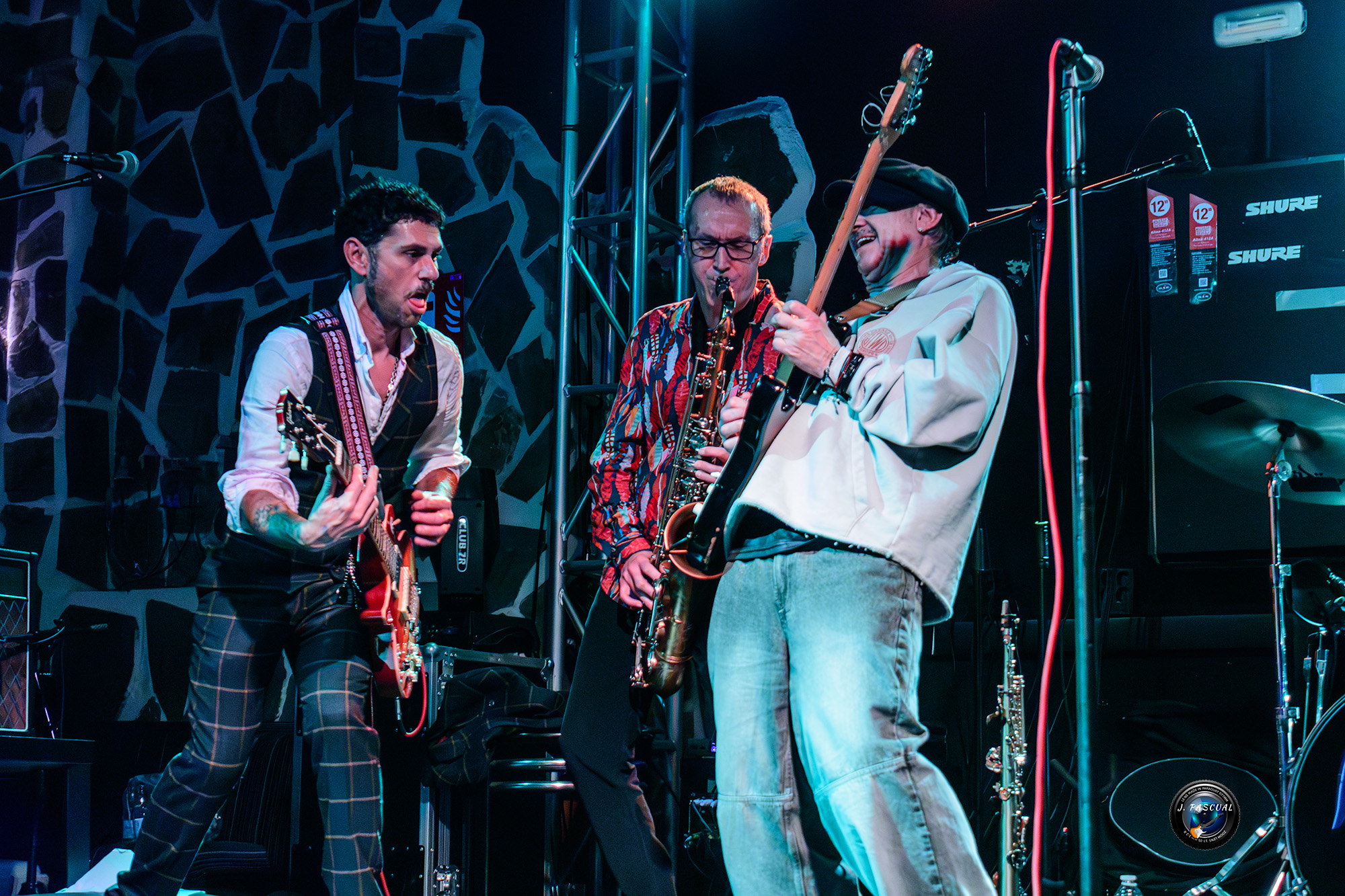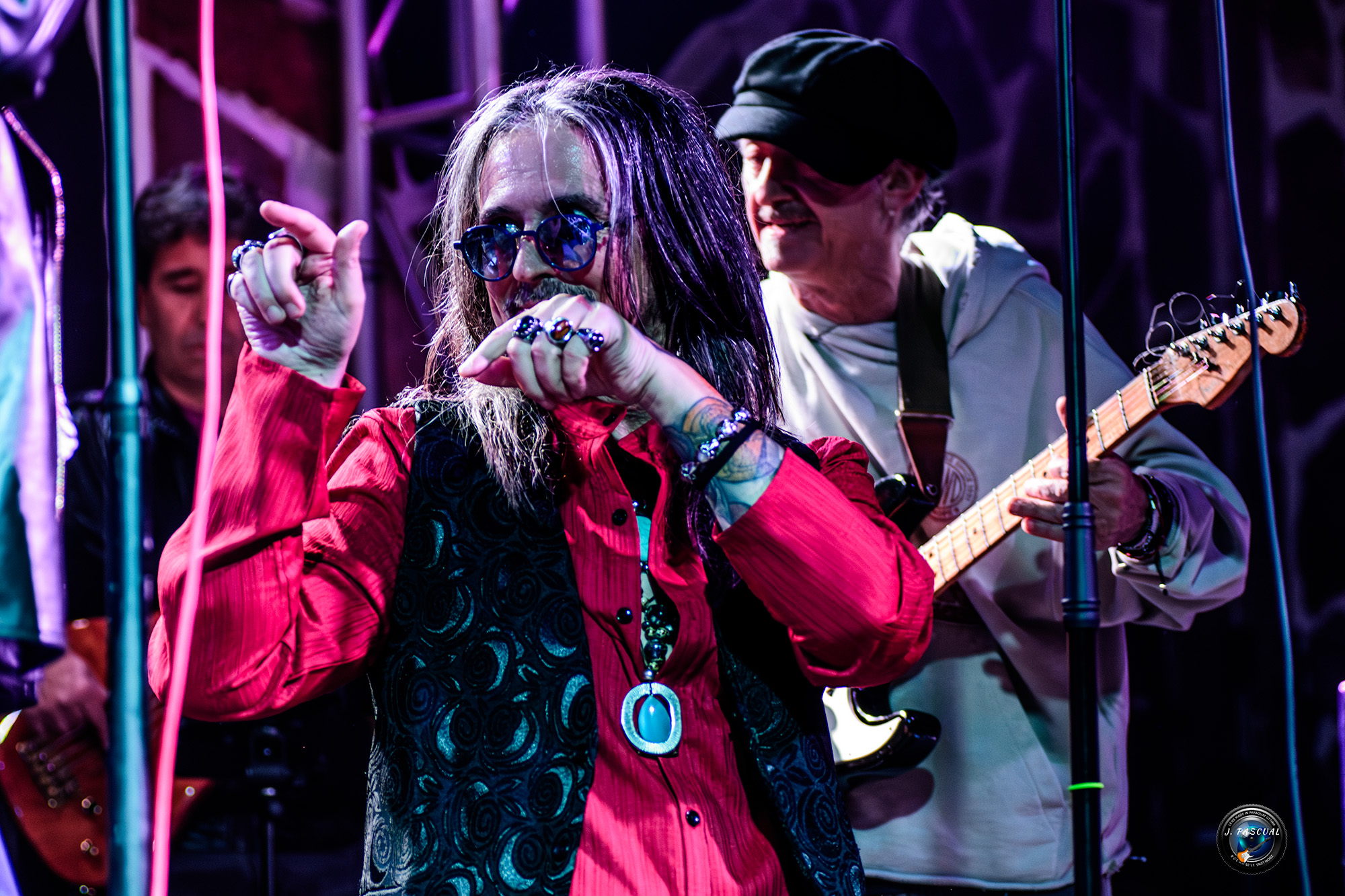 «Mi preciosa Anabel» dedicado a la pareja de Javier un tema que destila buen rollo desde su primera nota, «Inteligencia artificial» subía de las revoluciones, con otro tema en el que merece la pena detenerse en escuchar la letra, al igual que con «Palestina» denuncia del genocidio que está sufriendo el pueblo de palestino, ante la indiferencia de buena parte del mundo, durante el cual vimos agitarse algún que otro pañuelo palestino entre el público, a plena velocidad llegaba «Maligno» para dejarnos una buena dosis de puro Rock’n’Roll y acercarnos ya a la recta final con «Alas Negras» un tema más Hard Rockero de la vieja escuela y cerrar la noche con la versión castellanizada del clásico de Iggy Pop «The Passenger» debidamente adaptada a su propio estilo, con la que acabaríamos todos cantando junto a ellos el clásico La la la la la la la la, La la la la la la la la, la la, como colofón de lujo de la noche.
