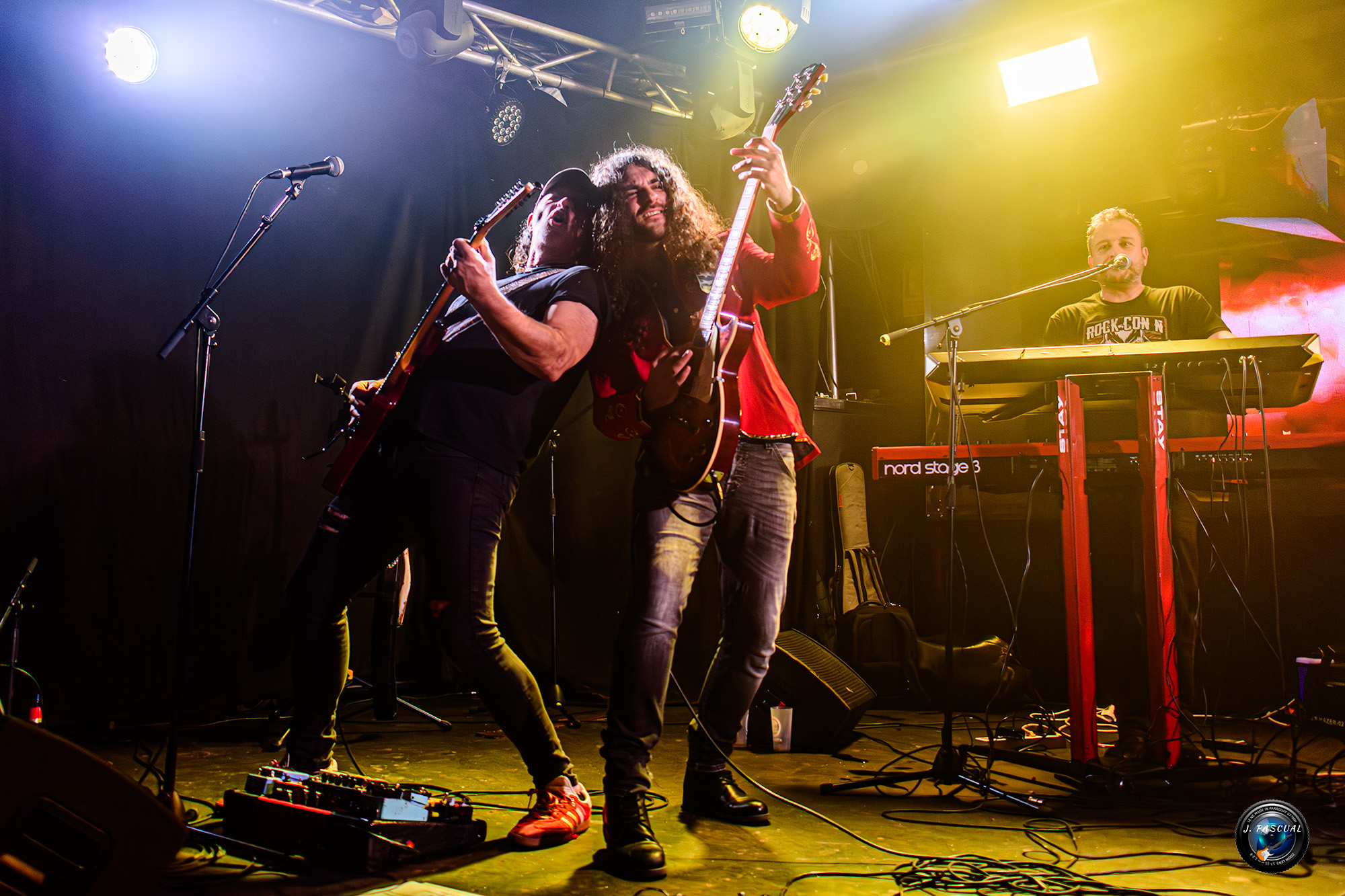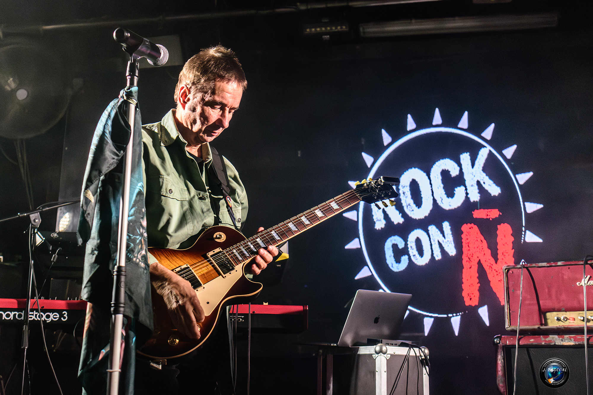 Se acercaba la recta final, no sin antes recibir a un nuevo, guitarra de lujo sobre el escenario Alberto Marín (Def con Dos, Ankhara) y otro tema imprescindible el «No Hay Tregua» de Barricada, «Sábado en la Noche» el tema de Moris que forma parte del repertorio de la Ñ, prácticamente desde sus inicios. Con la banda aún sobre el escenario, pero respetando las tradiciones para no perder el tiempo entre gritos de otra, otra y el oe oe oe llegaba el terceto final con «Reina de la Noche» de Salvador Domínguez, con Pinilla nuevamente sobre el escenario, llegaba otro momento que particularmente me dejo una imagen para el recuerdo, cuando Johan, pedía que apagarán las luces de la sala y todo el mundo encendiera la linterna de sus teléfonos, en ese momento yo volvía mi cámara, hacia el público y al volver de nuevo mi vista sobre el escenario vi a la banda sin ninguna luz en la sala pero perfectamente iluminada, por esas linternas mientras sonaba otro tema inolvidable «Rocinante». El punto final definitivo lo pondría otro tema clásico de los Burning «Jin Dinamita, un tanto deslucido por algunos problemas de sonido, pese a los cuales la banda supo estar a la altura de las circunstancias y dejarnos un grato recuerdo de una nueva noche llena de Rock escrito con Ñ mayúscula.