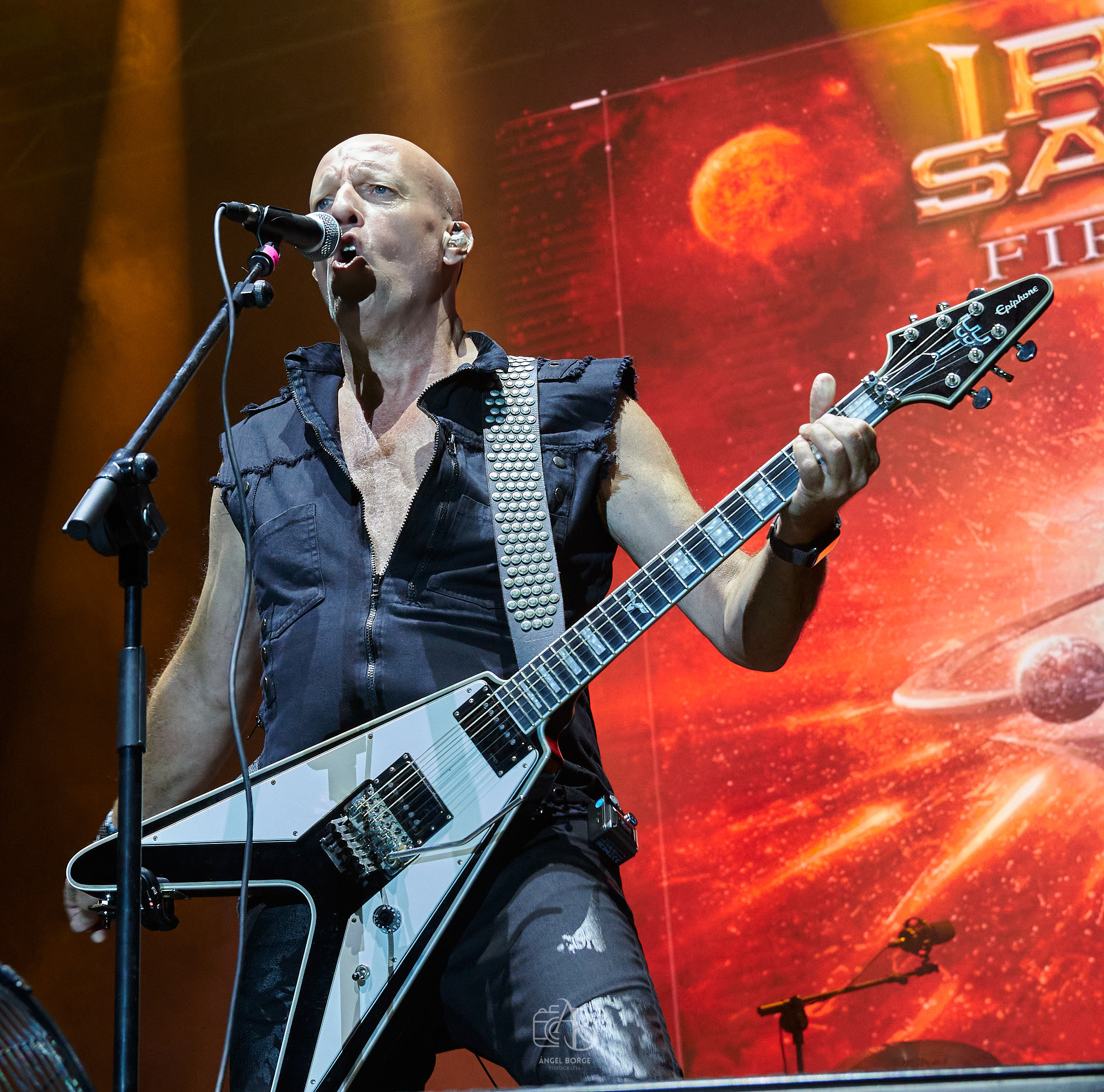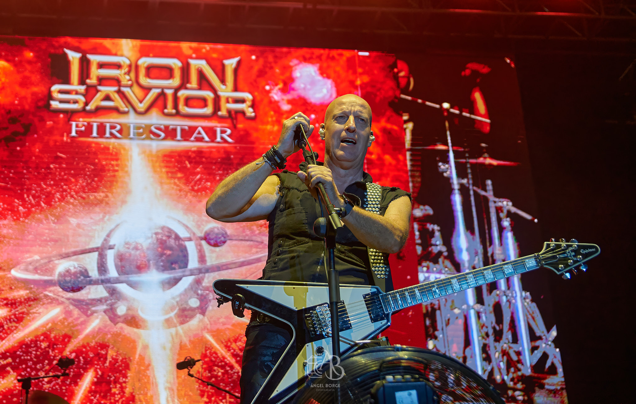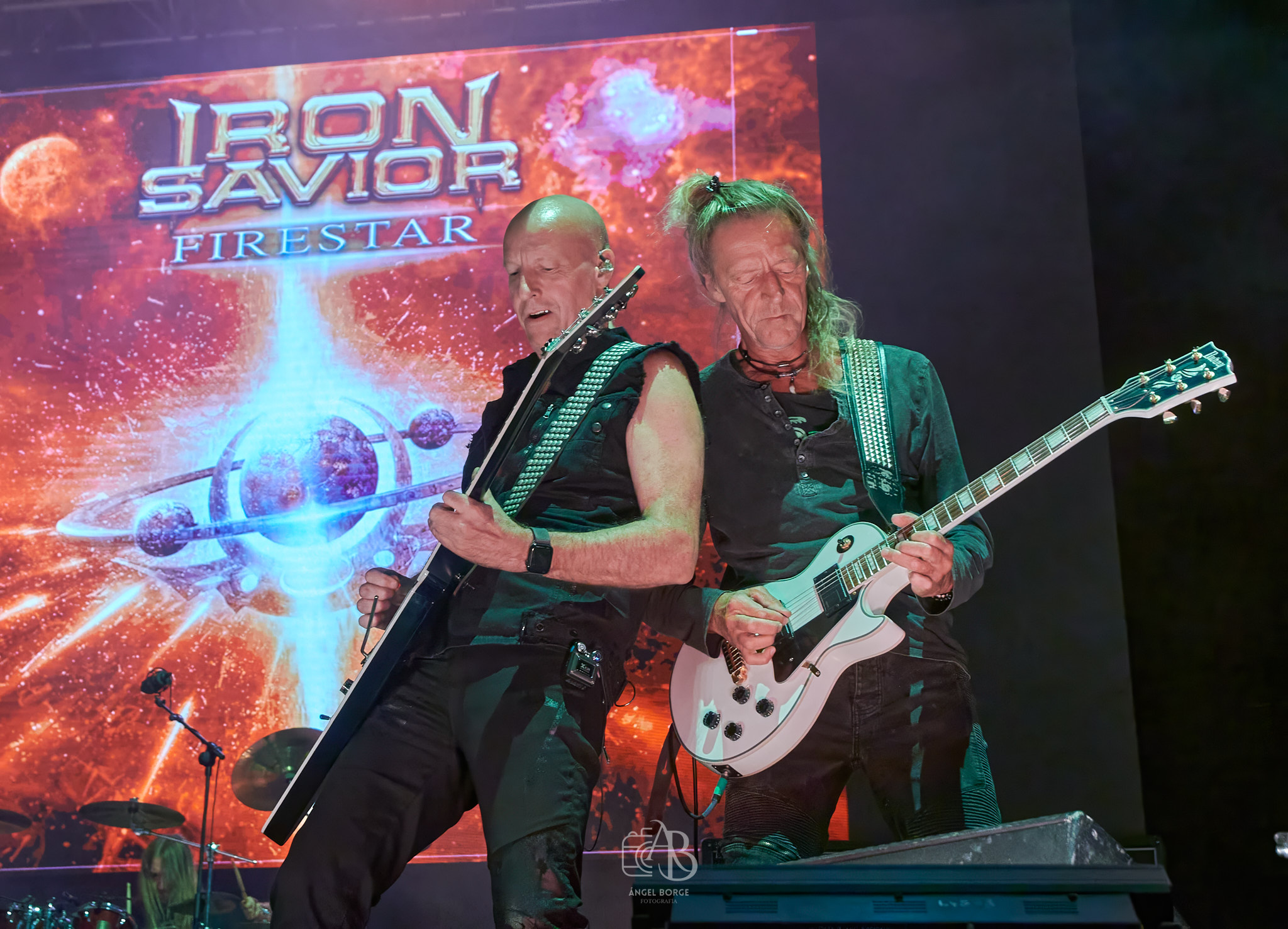 El grupo que cerraba el festival IRON SAVIOR continuando con la línea de puntualidad del evento salto al escenario a la hora fijada 01:15. Gran parte del publico había abandonado el recinto Joaquín Sabina puesto que si sumamos que era jueves y que los alemanes no son una formación que tenga una gran legión de seguidores, la hora les penalizo.