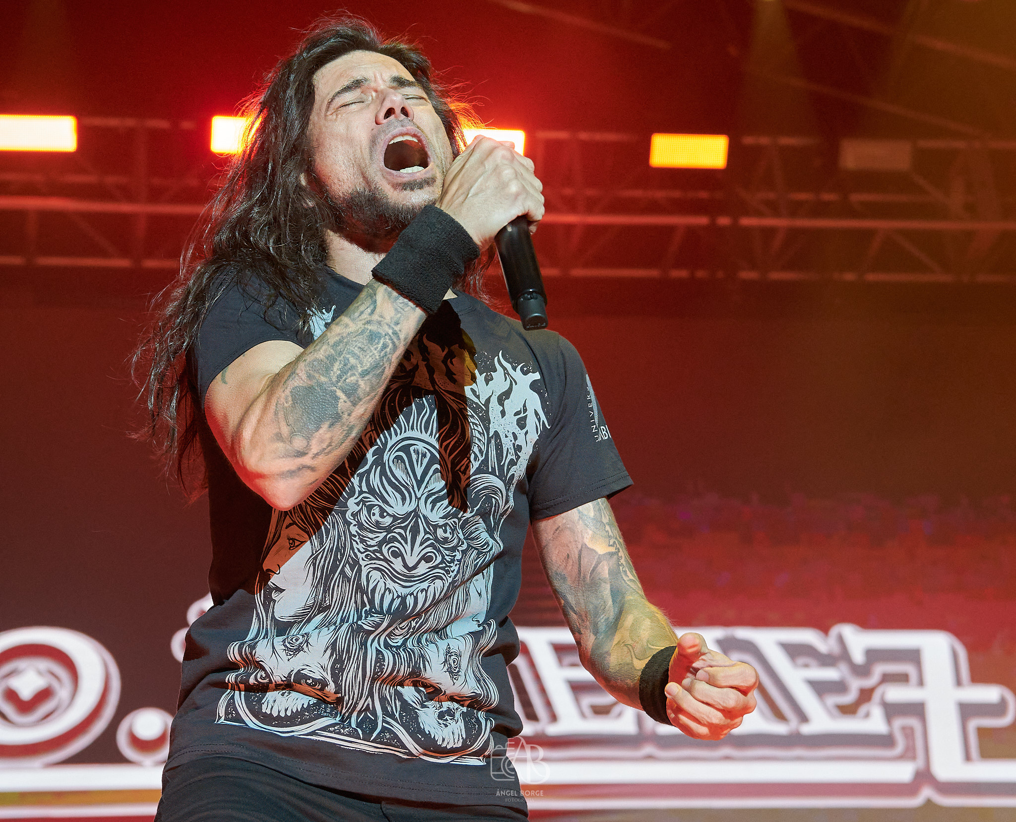 El grupo formado por Peter “Peavy” Wagner al bajo y voces, el batería Vasilios “Lucky” Maniatopoulus y el guitarrista Jean Bormann estuvieron enormes, en un gran escenario como fue el preparado para la ocasión Jean corría una y otra vez de un lado a otro, animando al publico que coreaba cada uno de los solos y riffs interpretados.
