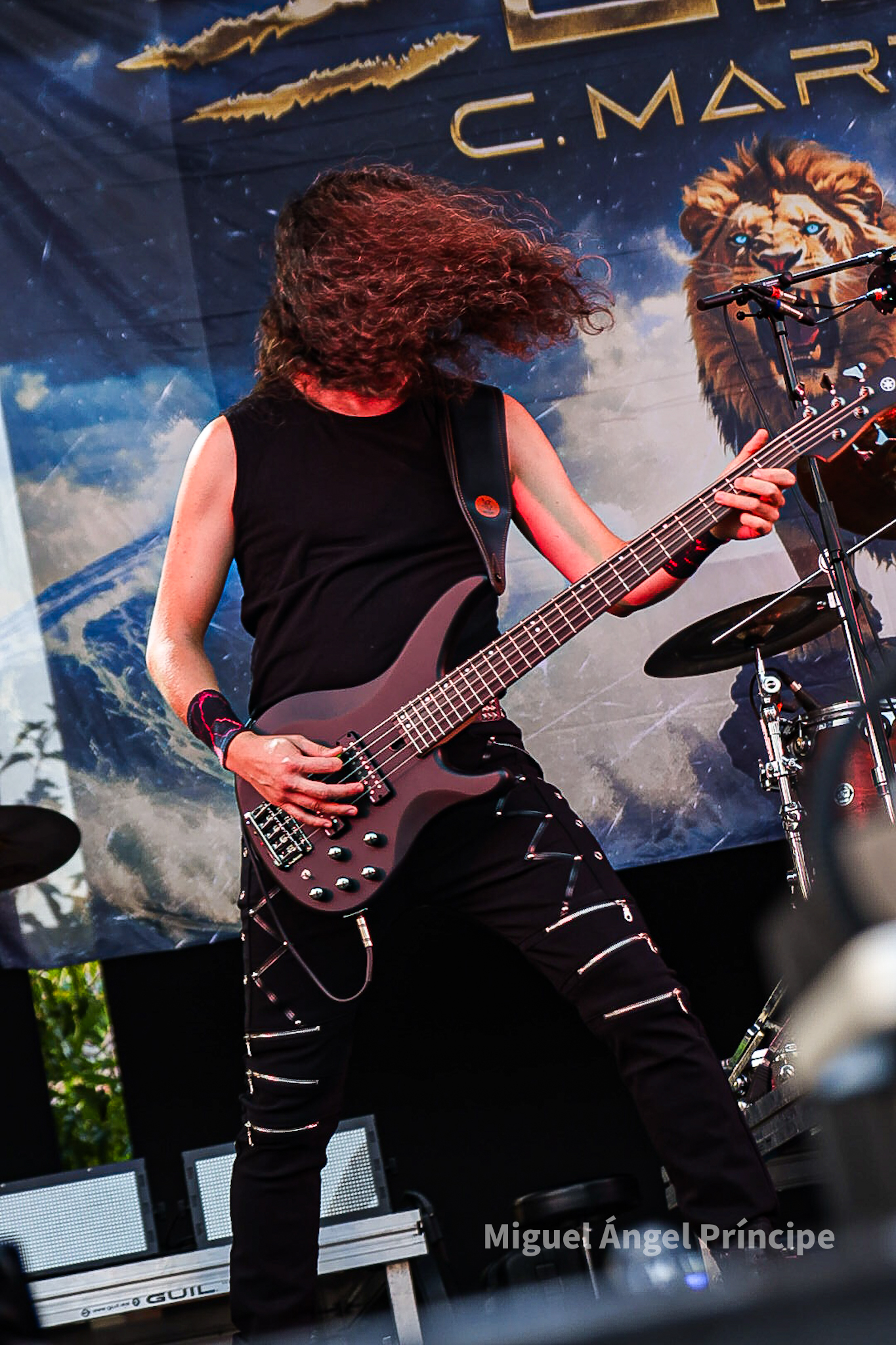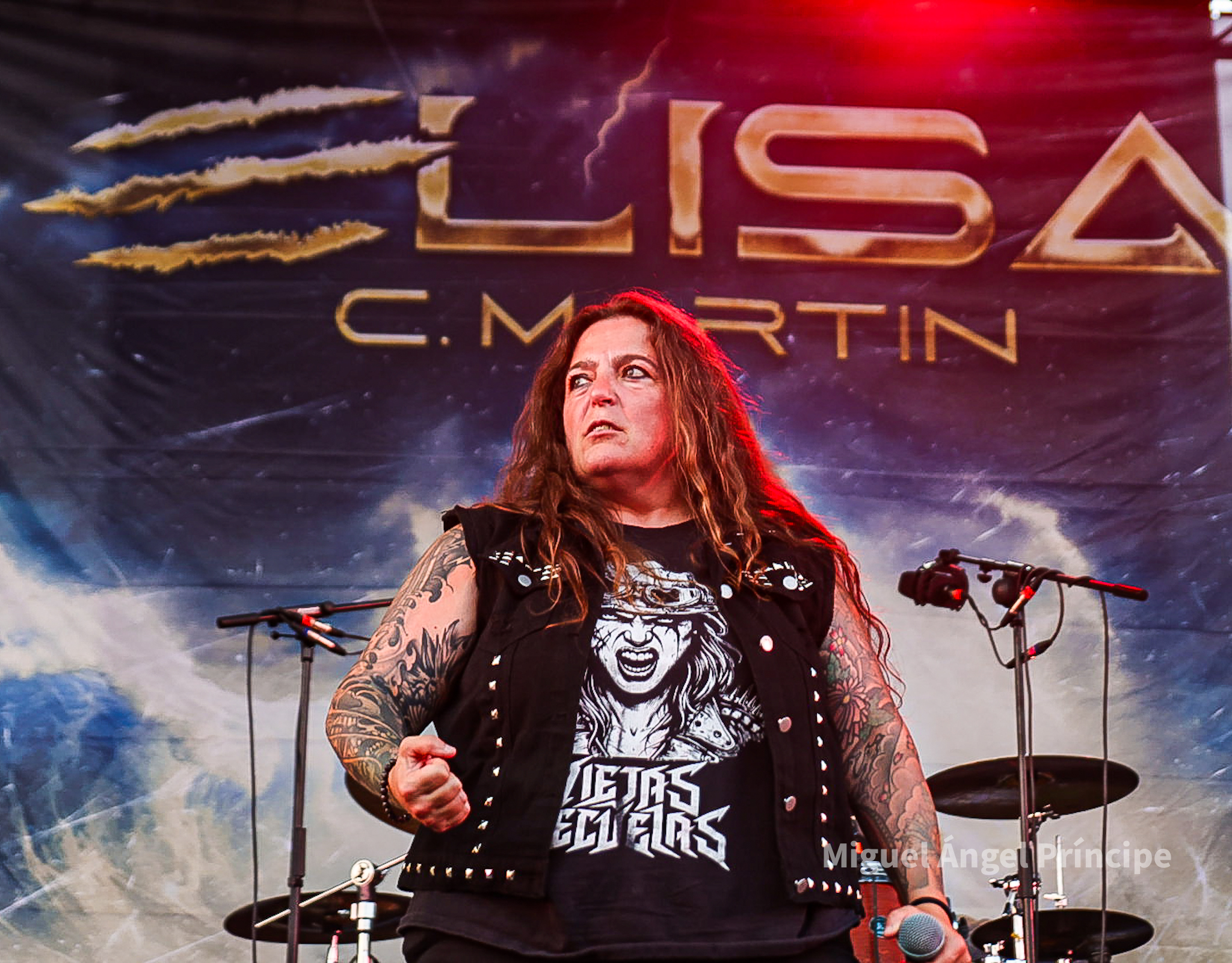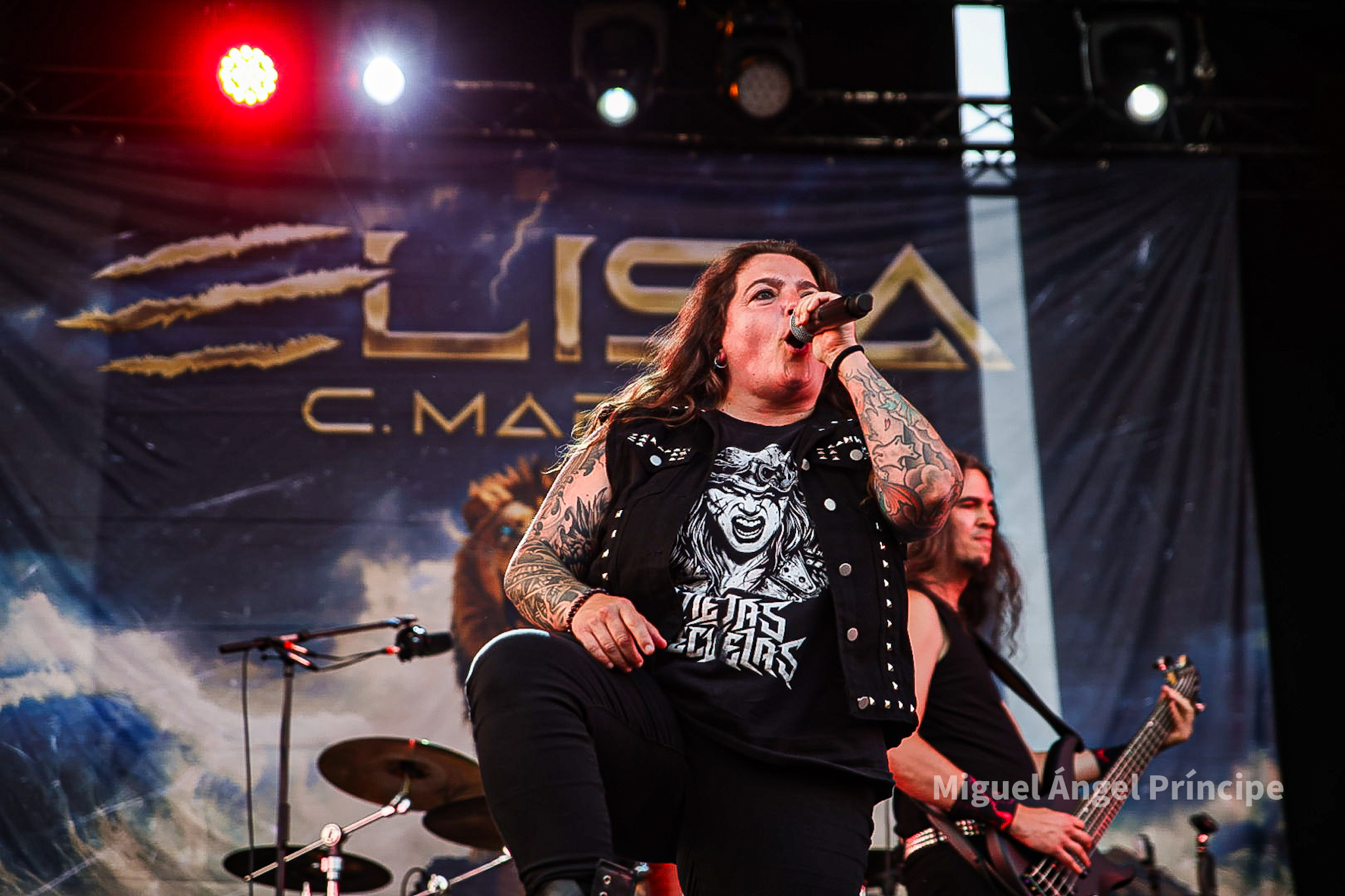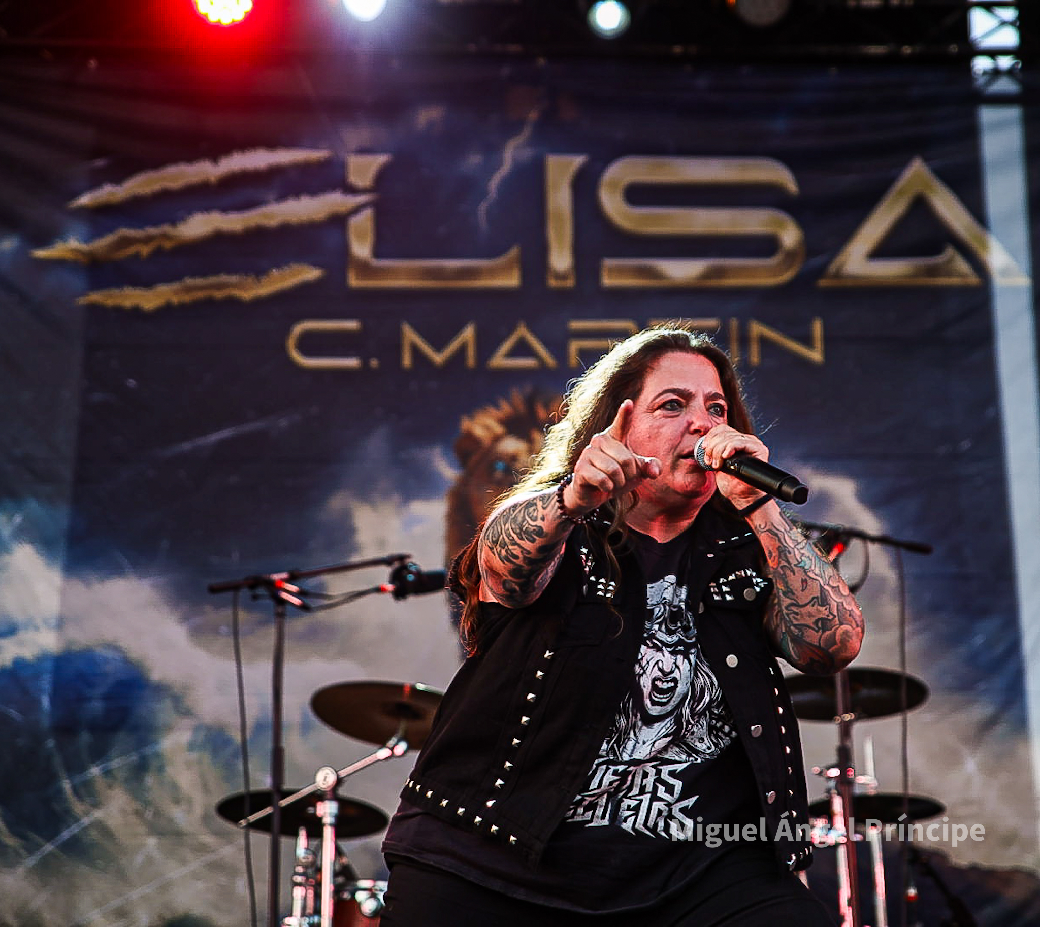 ELISA C. MARTÍN arrolladora sobre el escenario y demostrando como siempre su raza metalera, tomó las riendas al inicio del Festival con una formación renovada de la cual destacamos al virtuoso guitarrista Carles Salse por ser precisamente ese día su onomástica merecidamente celebrada con un repertorio encabezado por «No More», «The End» o «Anam Cara» todas ellas de gran pegada y potente fiereza vocal desplegada por la poderosa garganta de esta admirada cantante que puso en marcha a todos los allí presentes gracias a la sucesión de temas cargados de potencia, ritmos pegadizos y calidad interpretativa fruto de la propia vertiente compositiva de una Elisa orgullosa de defender con garra e incuestionable poder su extraordinario trabajo en solitario llamado Nothing Without Pain.
