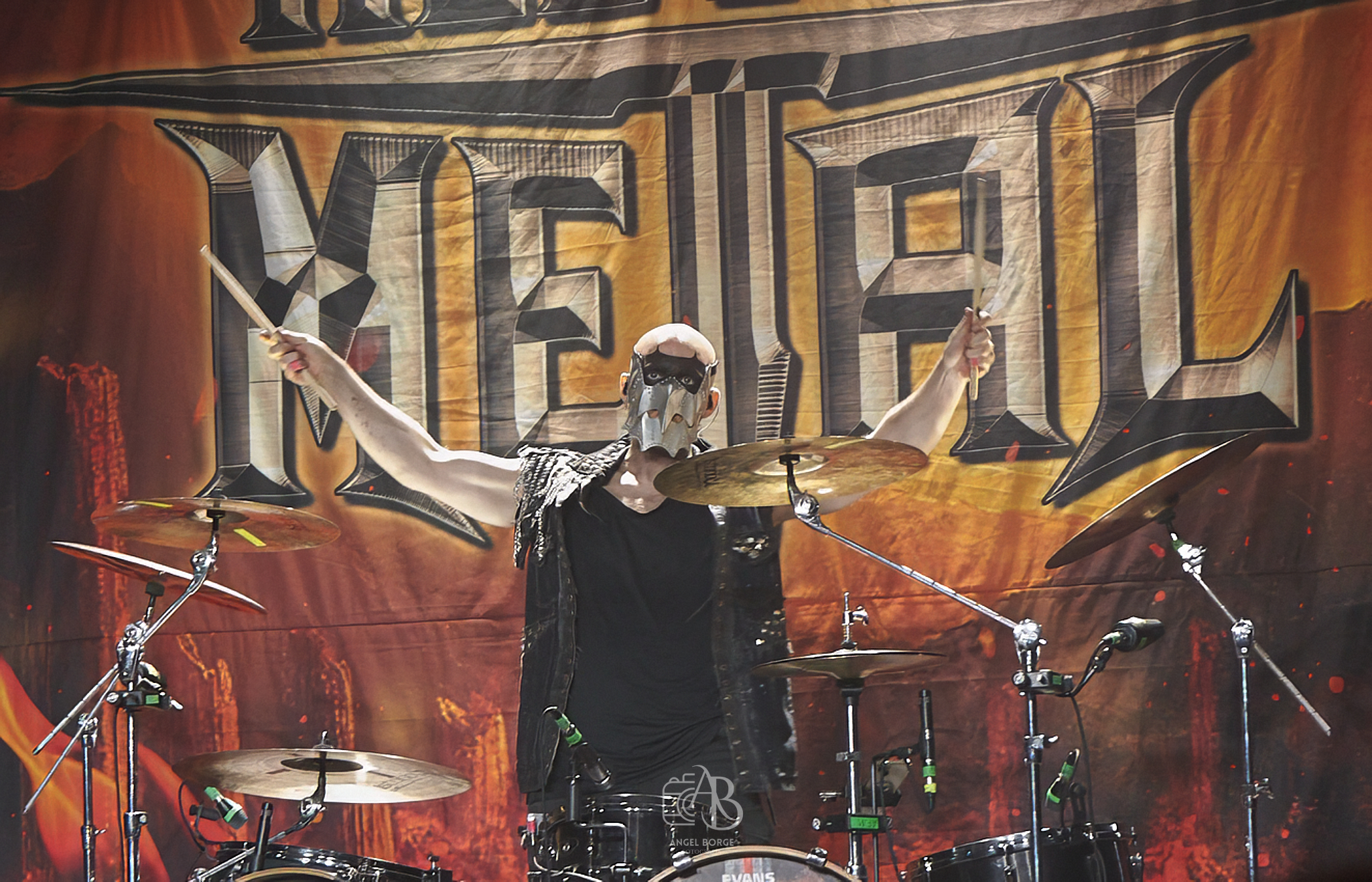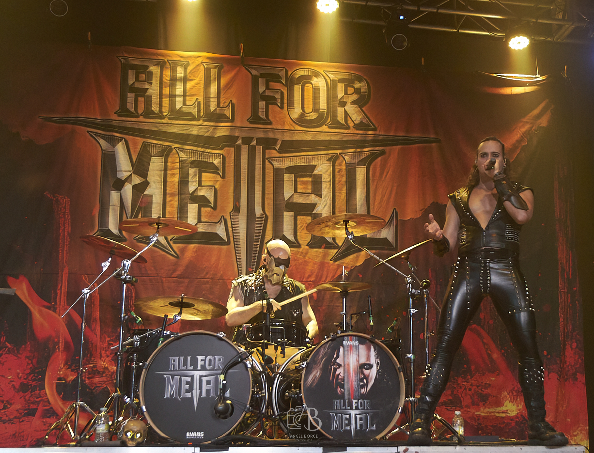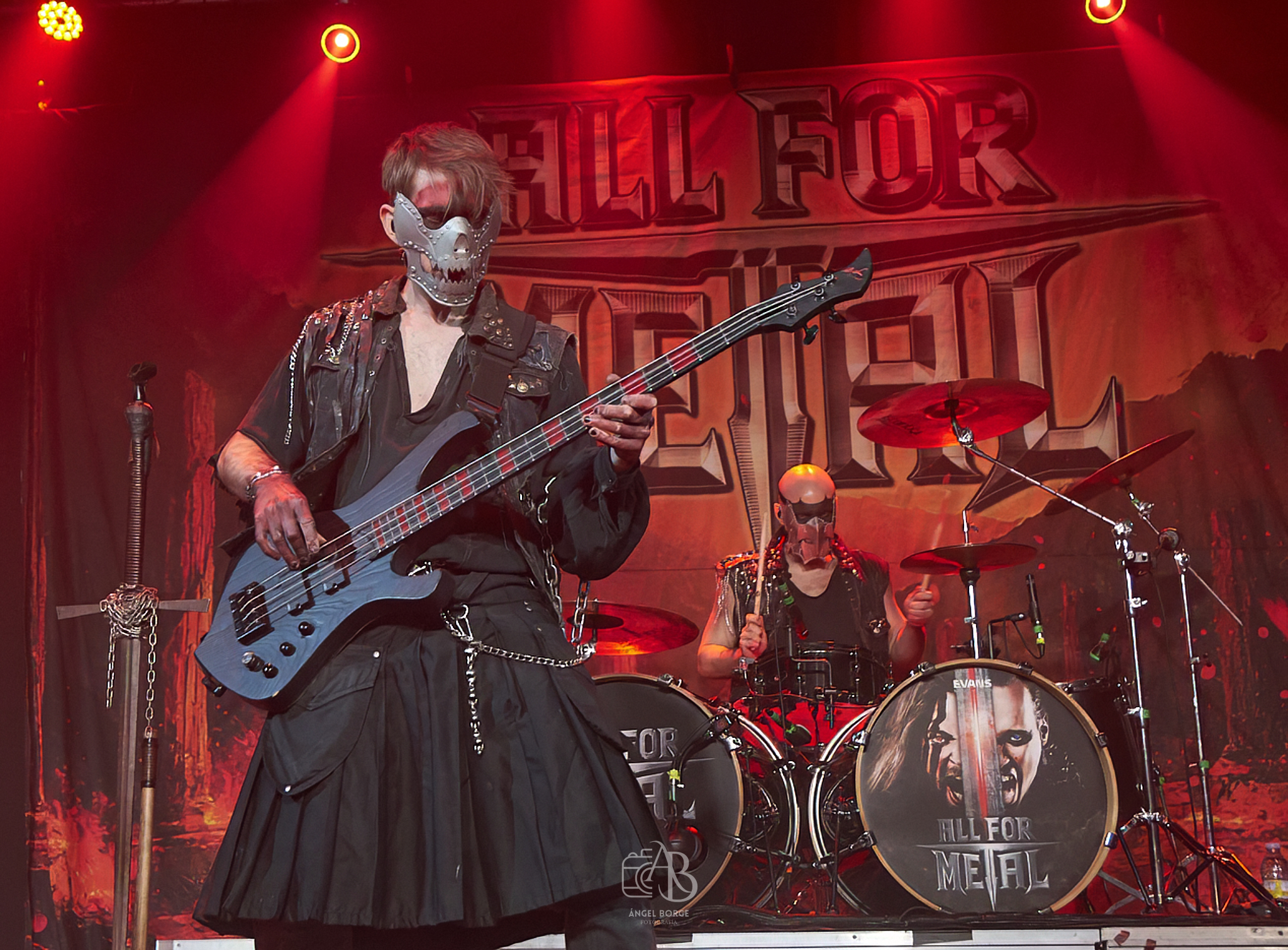 Una vez realizado el cambio de backline, afilar y sacar brillo a las espadas, preparar el martillo y demás armas se presentan ante nosotros ALL OF METAL, el sexteto alemán no deja a nadie indiferente musicalmente hablando podemos encuadrarlos en el Power Metal de nuevo cuño influenciados por la energía que transmite MANOWAR con la particularidad de esa mezcolanza entre las voces de sus cantantes, con sonidos mas graves en el caso de Tim «Teztel» Schmidt y mas melódicos en la voz de Antonio Calanna. Estéticamente hablando o bien los odias o los amas, son muchos tanto los detractores como amantes de las bandas de nueva hornada, donde el atrezzo es su base fundamental siendo este atractivo para festivales o para ganar adeptos entre el publico mas joven, mezclando misticismo, épica y demás adjetivos que encontramos también en el mundo de los videojuegos y películas. En el caso de ALL OF METAL conjugan todo lo anteriormente citado sumando ademas unos potentes riffs de guitarra, un gran sonido con personalidad en el bajo que hicieron que para mi fueran una sorpresa y muy positiva.