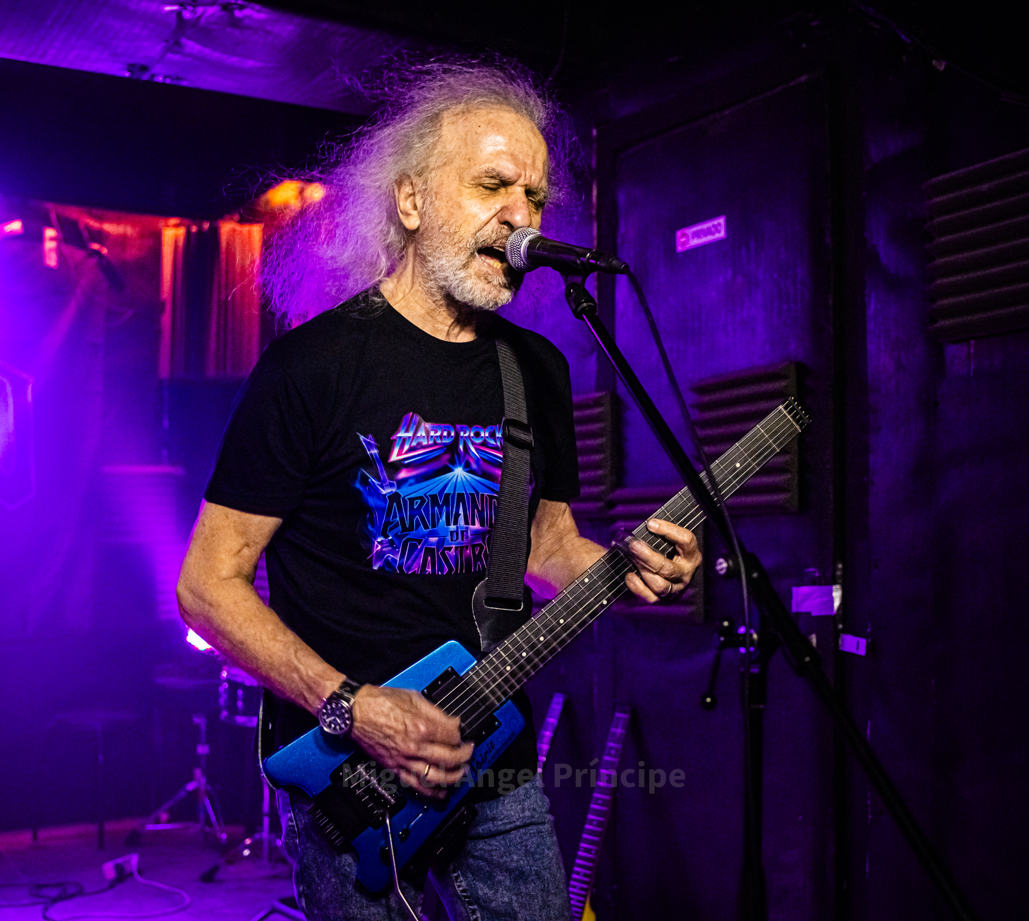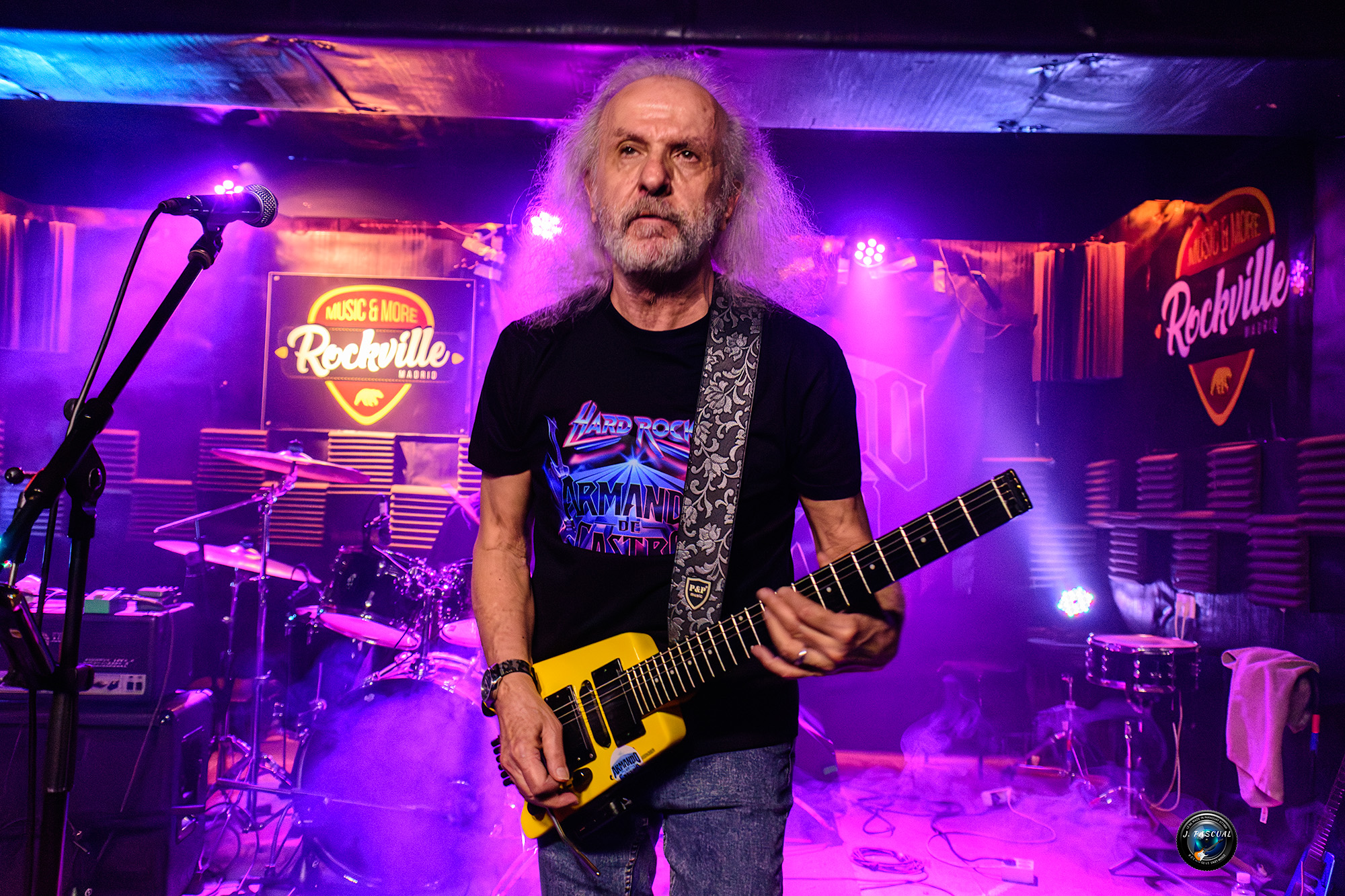 Nos acercamos a la madrileña Sala Rockville, para asistir a la presentación en directo de “Hard Rock” el último trabajo de Armando de Castro, con la seguridad de enfrentarnos como suele ser habitual en sus descargas, a una buena sesión de rock y guitarreo donde se pierde la noción del tiempo, con un Armando que se ve que disfruta de cada momento sobre el escenario y con el aliciente adicional de la presencia de tres invitados de lujo como el guitarrista de OBÚS Paco Laguna, Leonor Marchesi y José María Guzmán, sin olvidarnos de los otros dos componentes de la banda el bajista David Pérez, que además se encargaría de llevar el peso vocal principal y Rafa Díaz a la batería, sustituyendo a David Gigo.