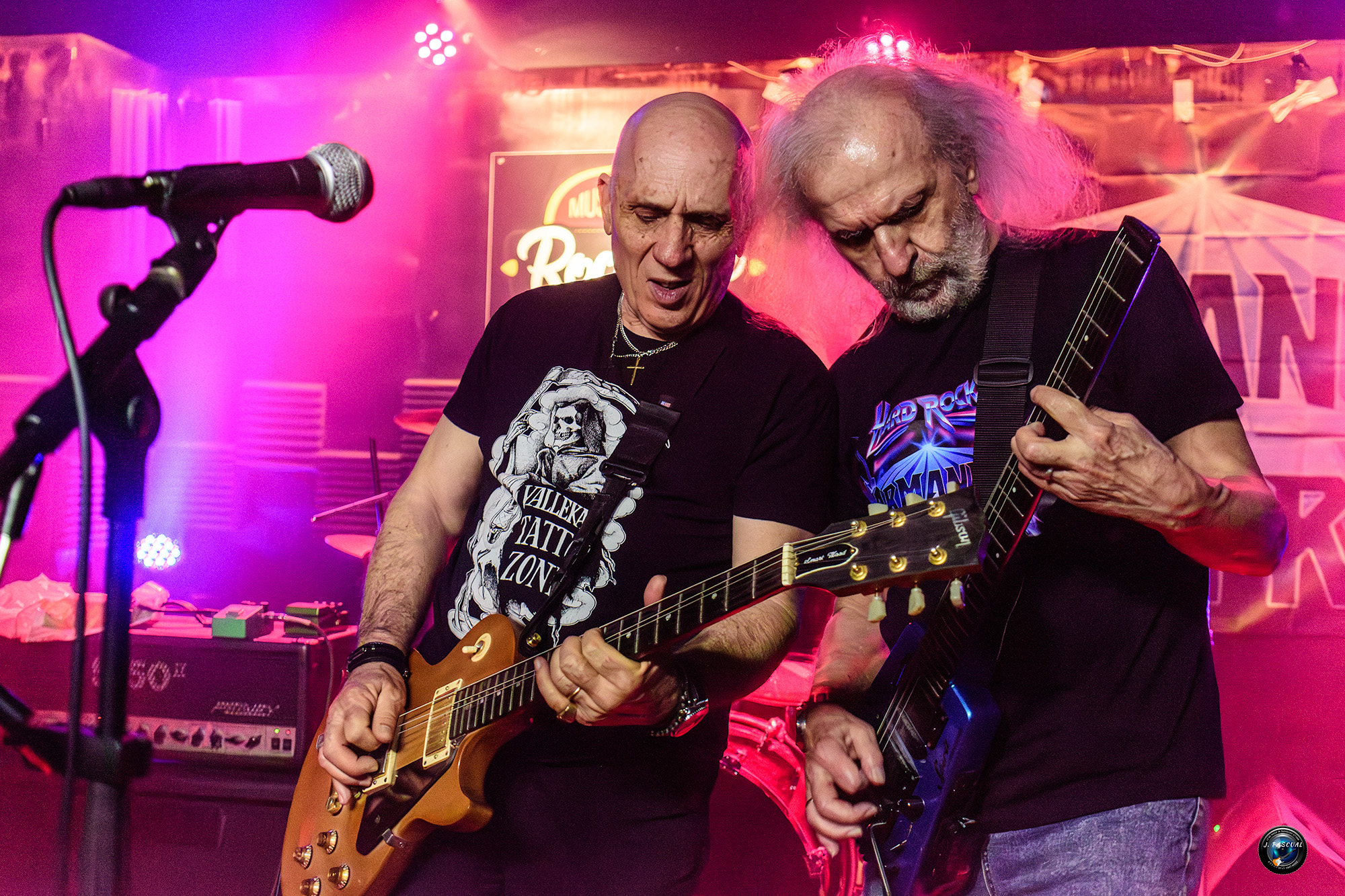Armando llamaba al escenario a Paco Laguna para junto protagonizar uno de los momentos más esperados de la noche, no siempre se tiene el privilegio de tener junto sobre el mismo escenario a dos guitarristas que han marcado con sus respectivas bandas Barón Rojo y Obús, la historia del Heavy en nuestro país «Survive» tema en el que colabora también en el disco era el tema en cuestión que Armando aprovecho para dedicar a su mujer Lara, a la que estoy seguro de que le hubiera encantado poder esta allí en esos momentos, Hard Rock en estado puro con grandes riff y punteos, un tema carne de directo que desato la euforia en la sala, al igual que «No more» para la que Armando solicitaba la colaboración vocal de todos los presentes.