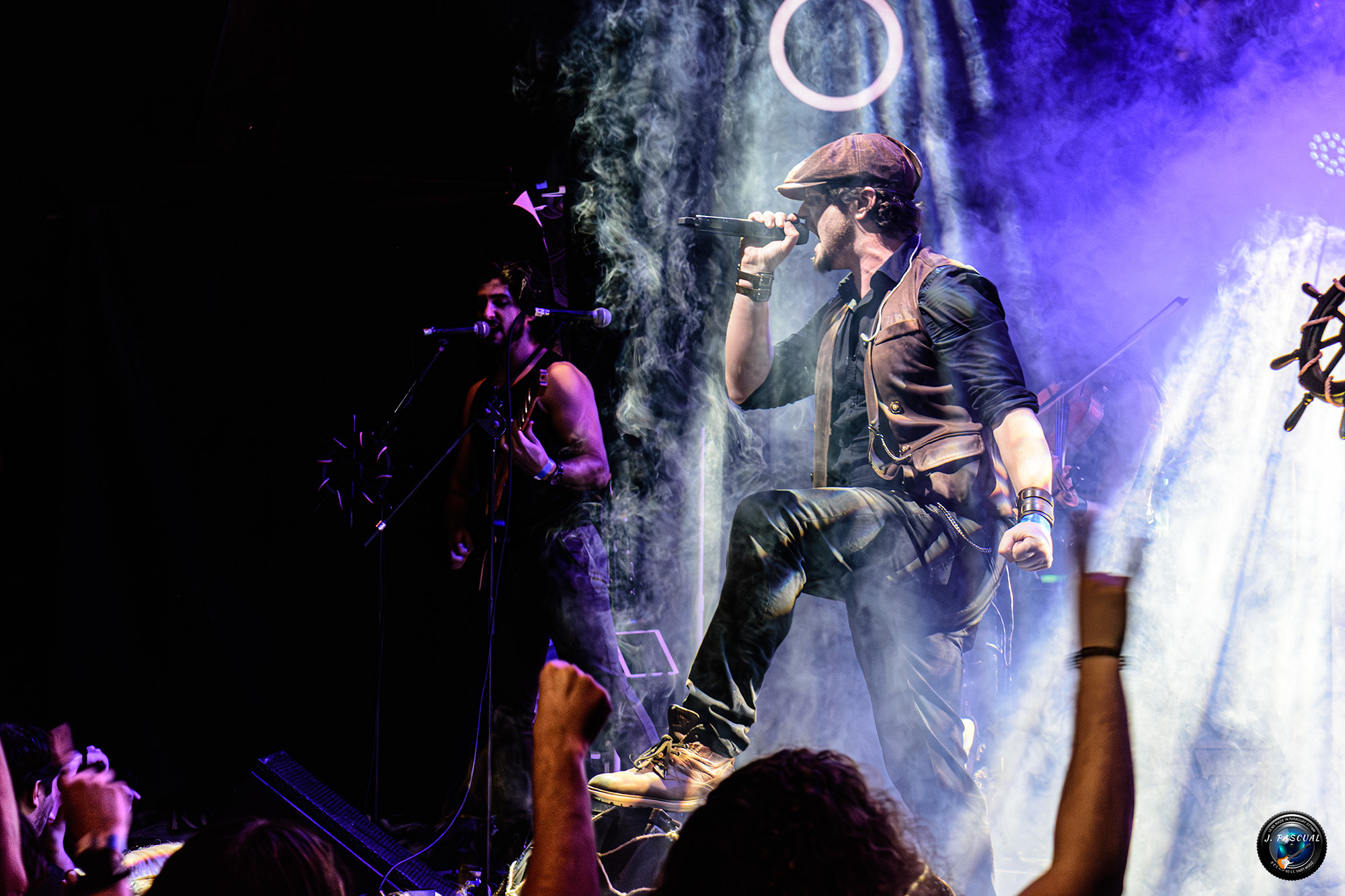 Temas como «Düllahan» o «El vagabundo» no hacian más que confirmar las buenas sensaciones, con Pablo manjeándose perfectamente en el binomio cantante & Frontman y dejandonos atrapar por los sonidos de la banda destacando esa mandolina de Toni que aportaba junto al violín de Sara, ese justo sonido a Folk irlandés. No faltaron tampoco las sorpresas en este caso en forma de invitado con la presencia de Dani Nogués (LEPOKA) que se subiría al escenario para interpretar junto a ellos «Voluntad de fuego», tras el cual pudimos conocer las dotes vocales de Sara en el tema tradicional irlandés «Black and tans» y meternos ya en la recta final con «El bribón de Bobby Brown» y despedirse con el animado «Finnway is the fine way»