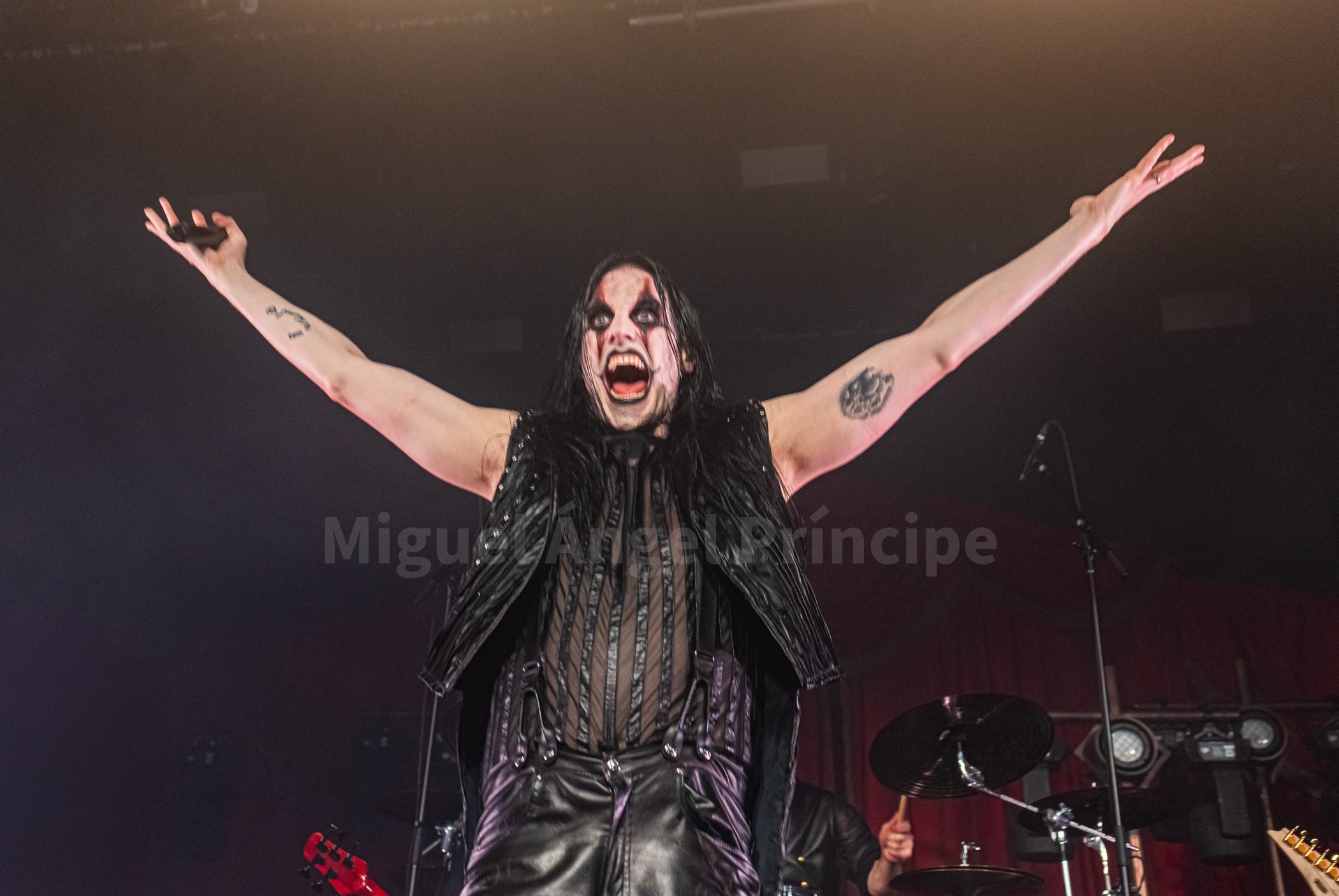 El primer contacto del showman con los espectadores fue para decir lo especiales y guapos que éramos siendo para él todo un placer poder vernos dando paso acto seguido al tema «In The Airwaves», una canción para la cual Johannes portó sus ya clásicos bastón y sombrero con un gran telón rojo de fondo iluminado por unos impresionantes juegos de luces rojas y amarillas convirtiéndose el escenario en todo un cabaret mientras el Death Metal Melódico de AVATAR se mimetizaba con el espléndido decorado que enjaezaba la tarima para ofrecer todo ello como paradoja un perfecto contraste. Con «Bloody Angel» la feligresía cantó incesantemente para llegado «Death And Glitz» comenzar en toda la sala los movimientos de brazos a izquierda y a derecha animados estos nuevamente por Johannes antes de la cañera e intensa «Blod» y de cambiarse el registro totalmente con «The Dirt I’m Buried In», apoyándose con este gran hit la banda en un sonido mucho más Groove e Industrial quedando así patente como estos chicos pueden adaptarse a todo.
