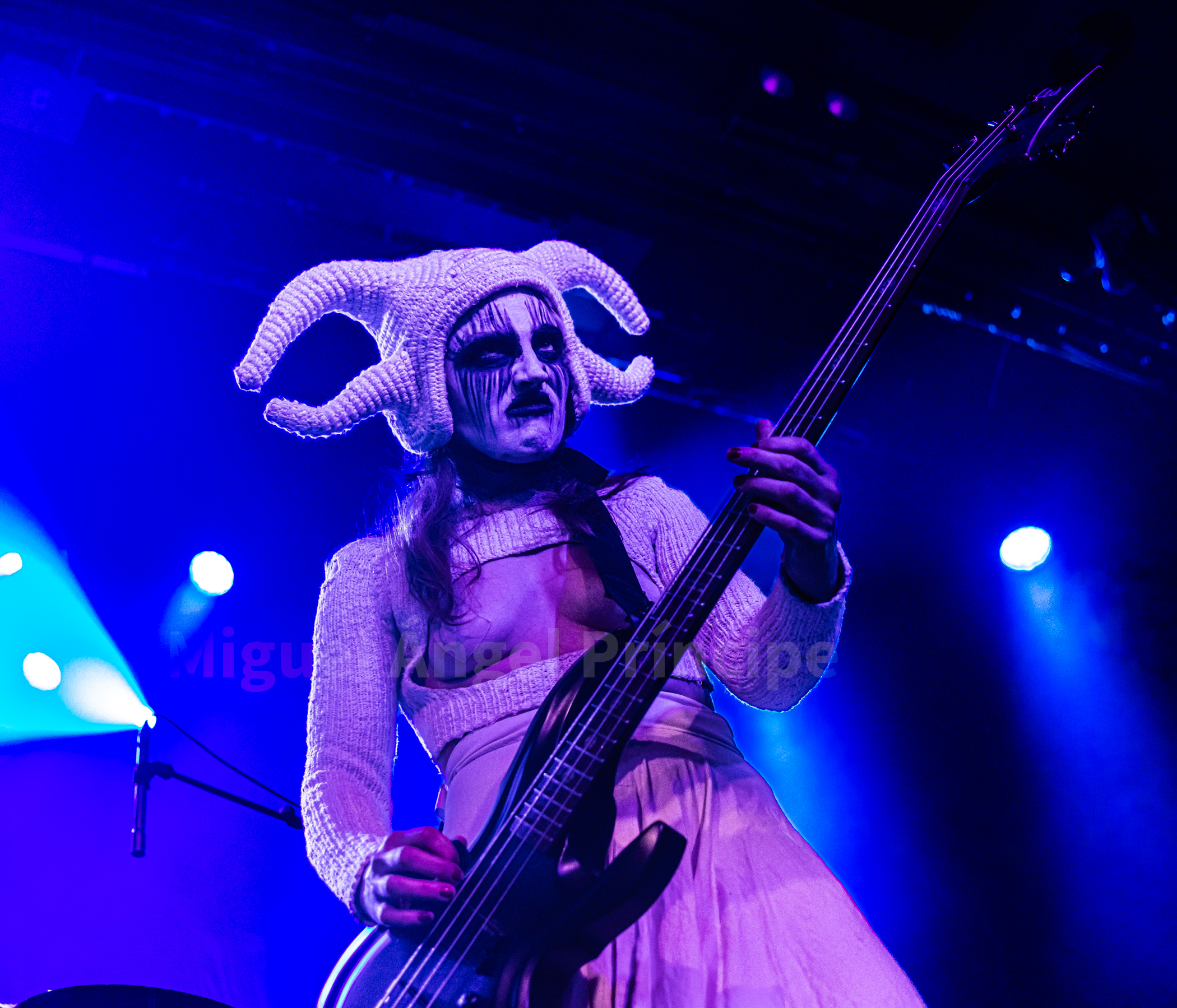 Después del desfile y con posiciones ya tomadas encima de la tarima comenzó a sonar una Intro con tambores, jadeos y voces satánicas iniciándose el tema «Fresh Blood, Fresh Pussy» donde las integrantes de la banda fueron alternando la letra con gritos sumados a los sonidos potentes tanto de la guitarra como del bajo, creándose así un ambiente infernal gracias también a la performance gestionándose a continuación «Salvation» y deleitándonos en ella la bajista al tocar su instrumento con un arco como si fuera un violonchelo mientras la batería abandonaba los parches saliendo al centro de la tarima junto a sus compañeras para tararear cual canto gregoriano satánico, un especie de salmo o rezo abandonando las tres el escenario al finalizar la canción.