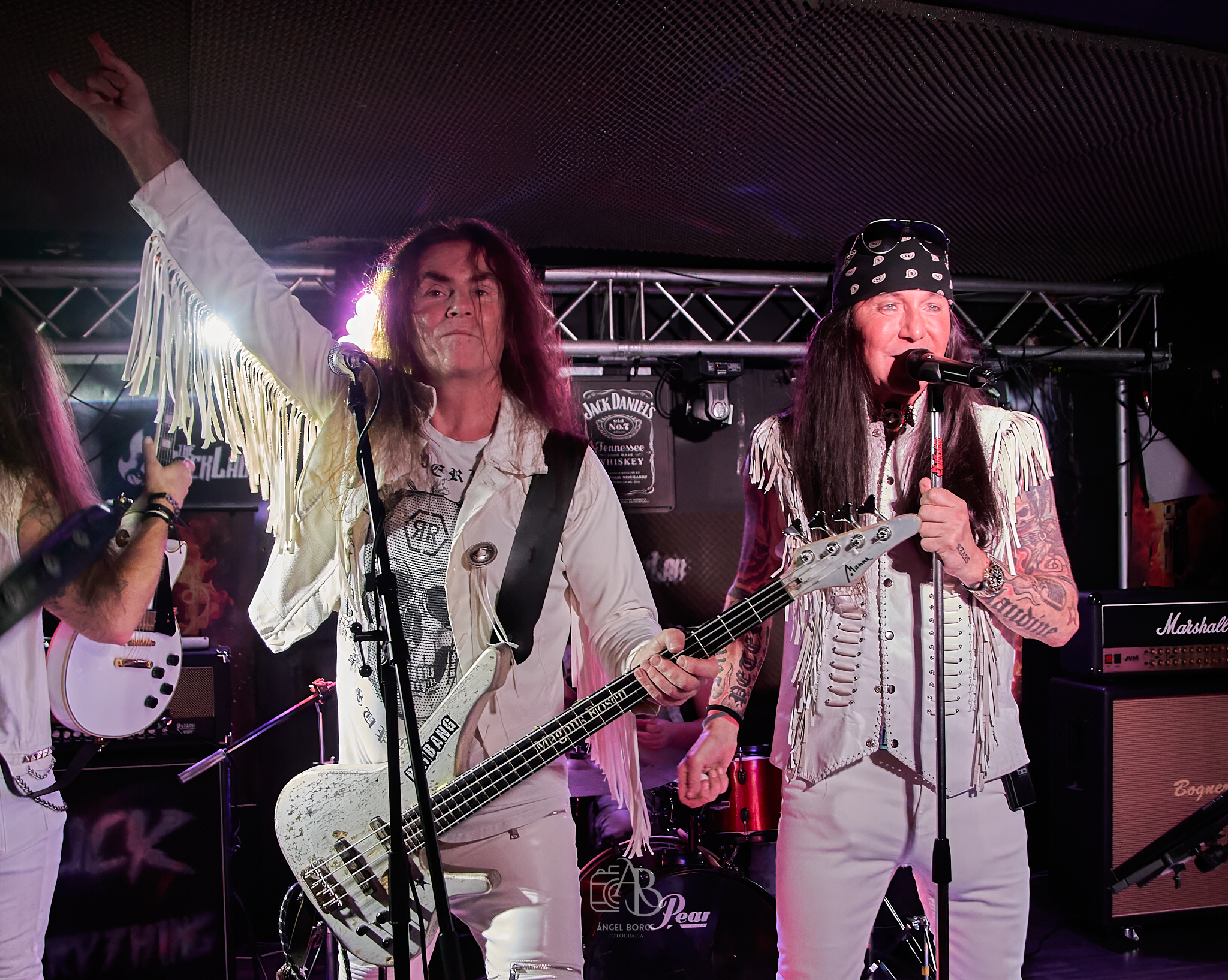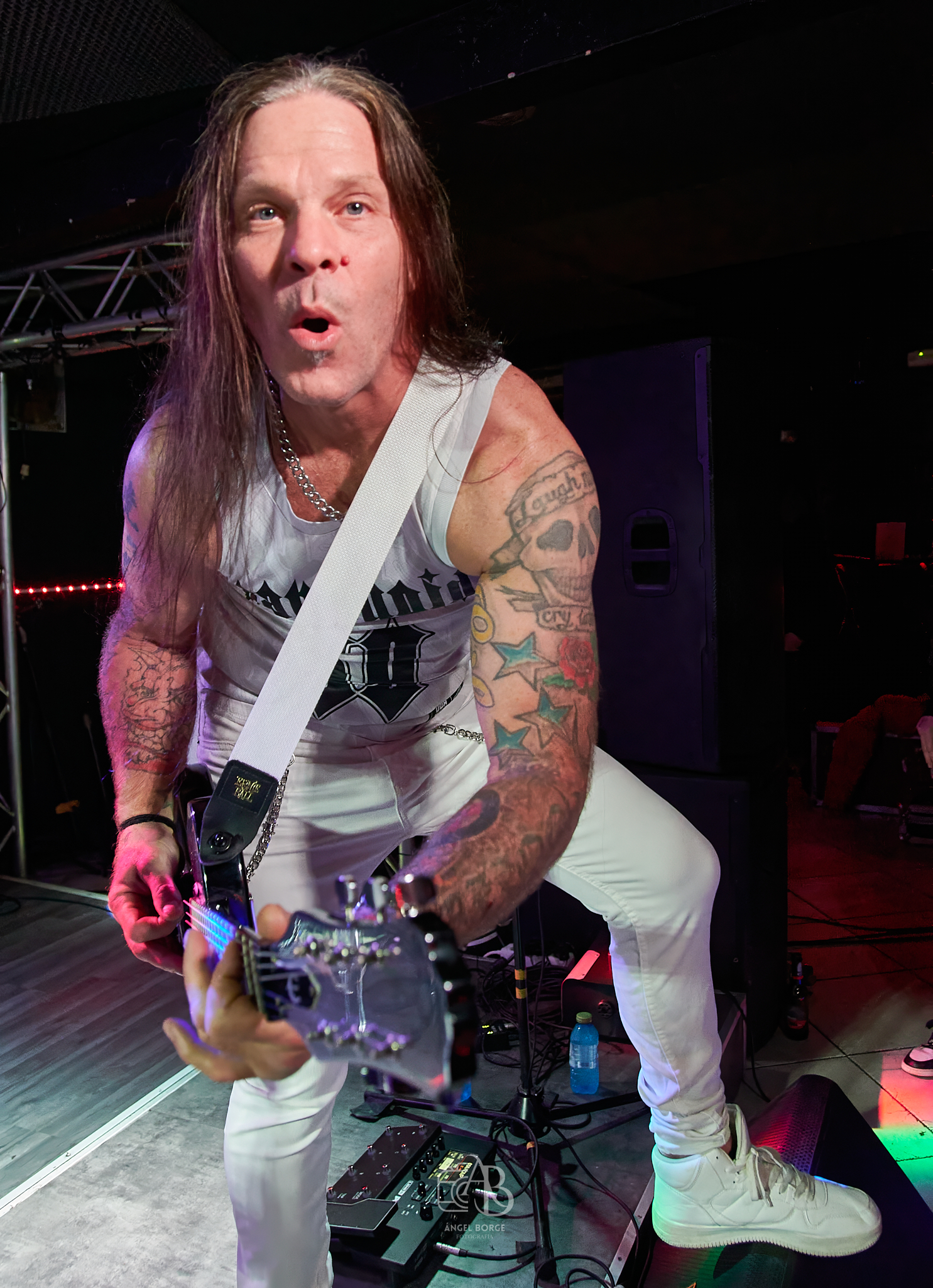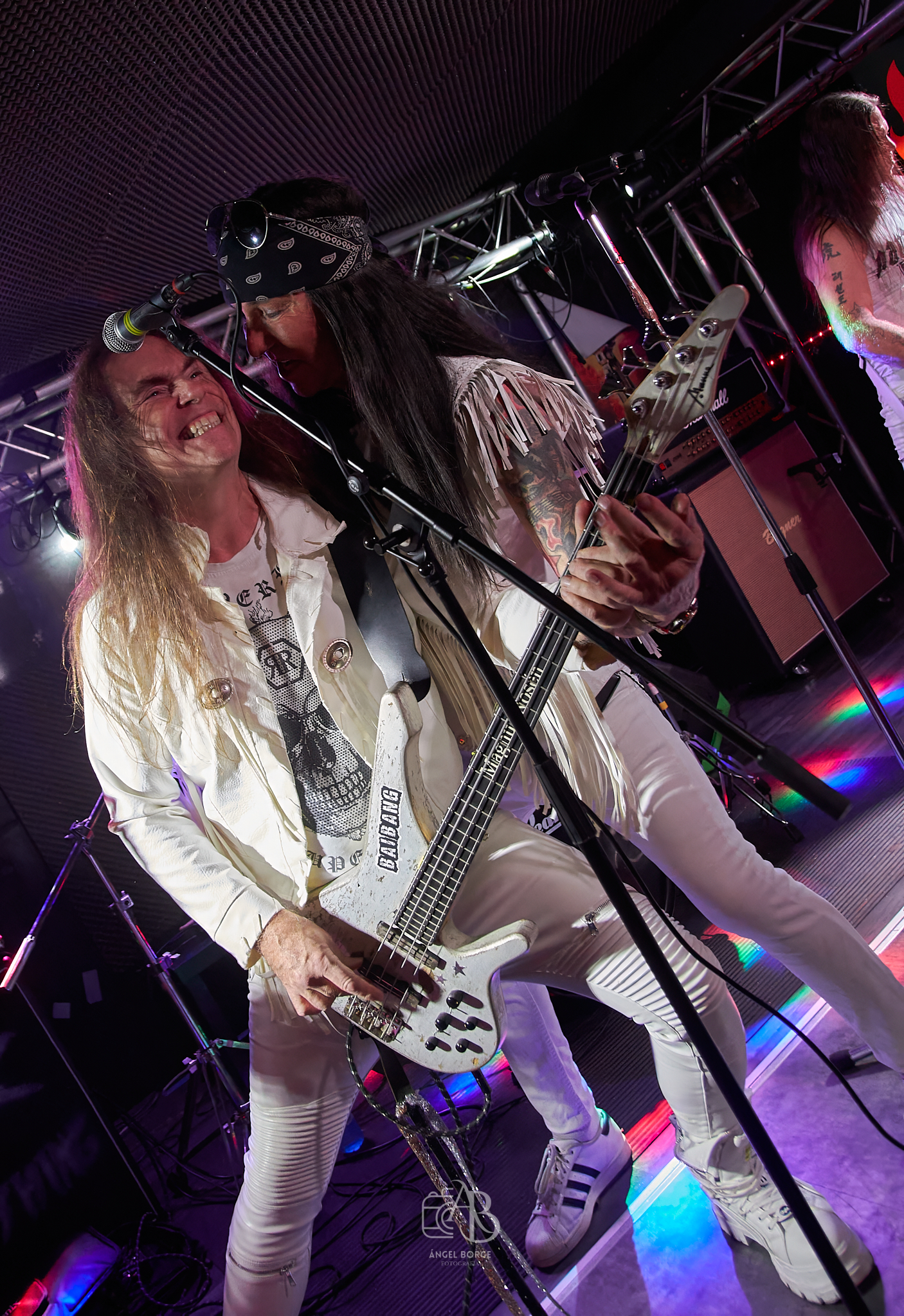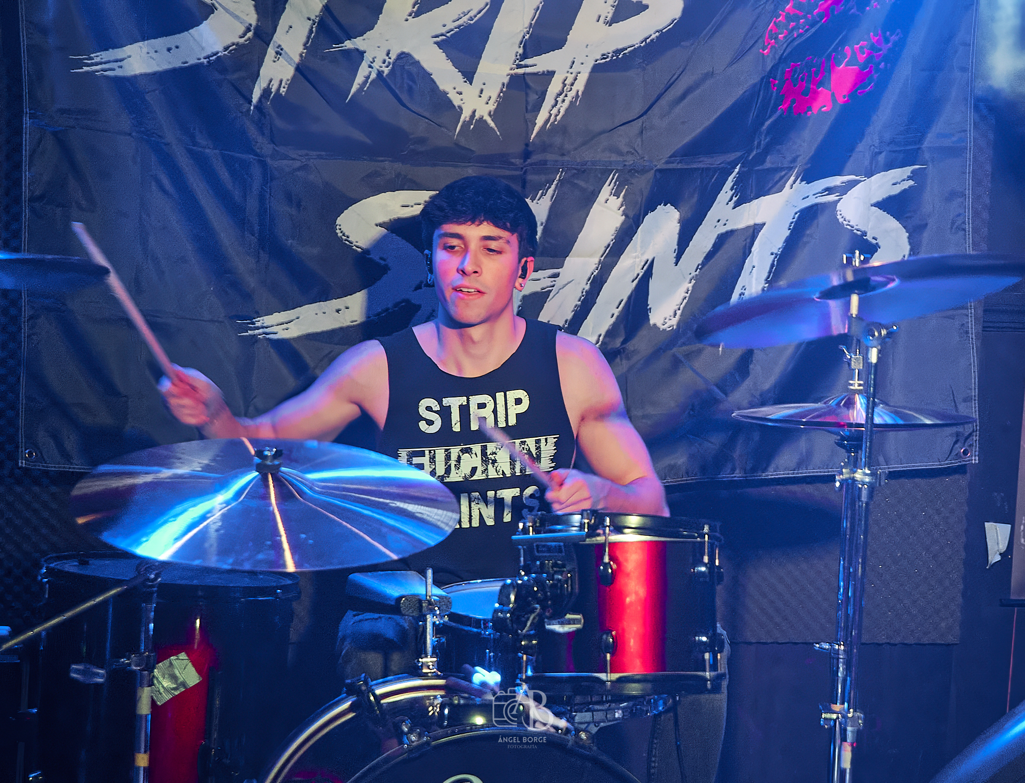 Una vez llegada la hora anunciada sobre las 22:30, se subieron al escenario los chicos de STRIP SAINTS formado el cuarteto por Adri Rodríguez a la batería, Jorge Teclarra al bajo, Tommy Guns y Rikky Lizz tanto a las guitarras como a las voces (siendo la voz principal del combo Rikky) conformándose así un grupo tremendamente joven pero con amplia experiencia, ya que lleva unos cuantos años ofreciendo un Hard Rock & Sleazy Metal con gran influencia de bandas de los ochenta contando STRIP SAINTS con un EP llamado Wild N’ Free, el cual contiene cuatro canciones y que vio la luz en el 2019 lanzando el grupo posteriormente singles el último de ellos este mismo año.