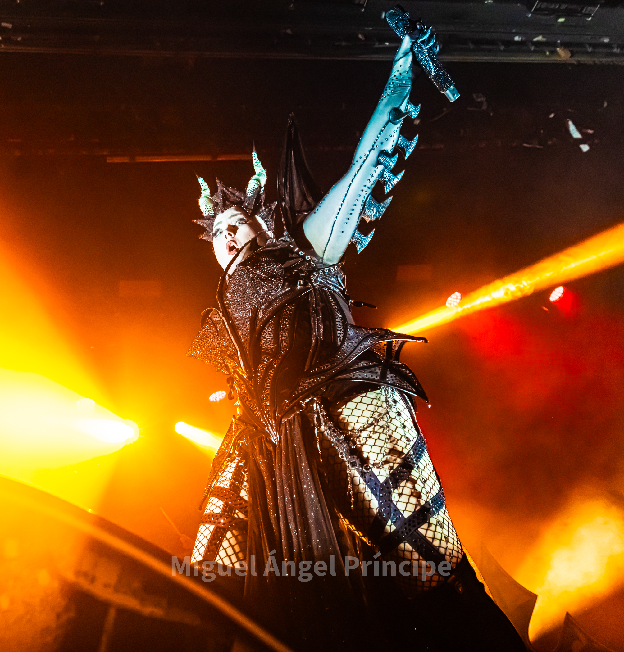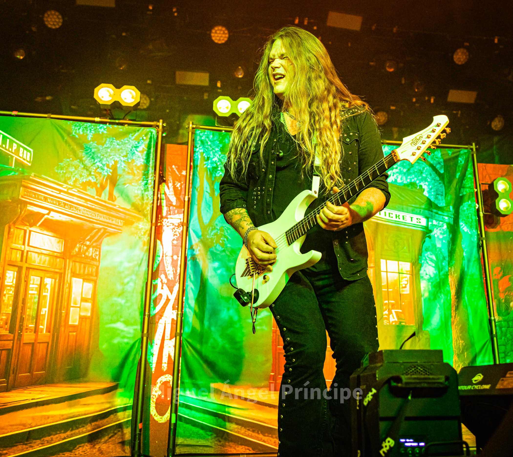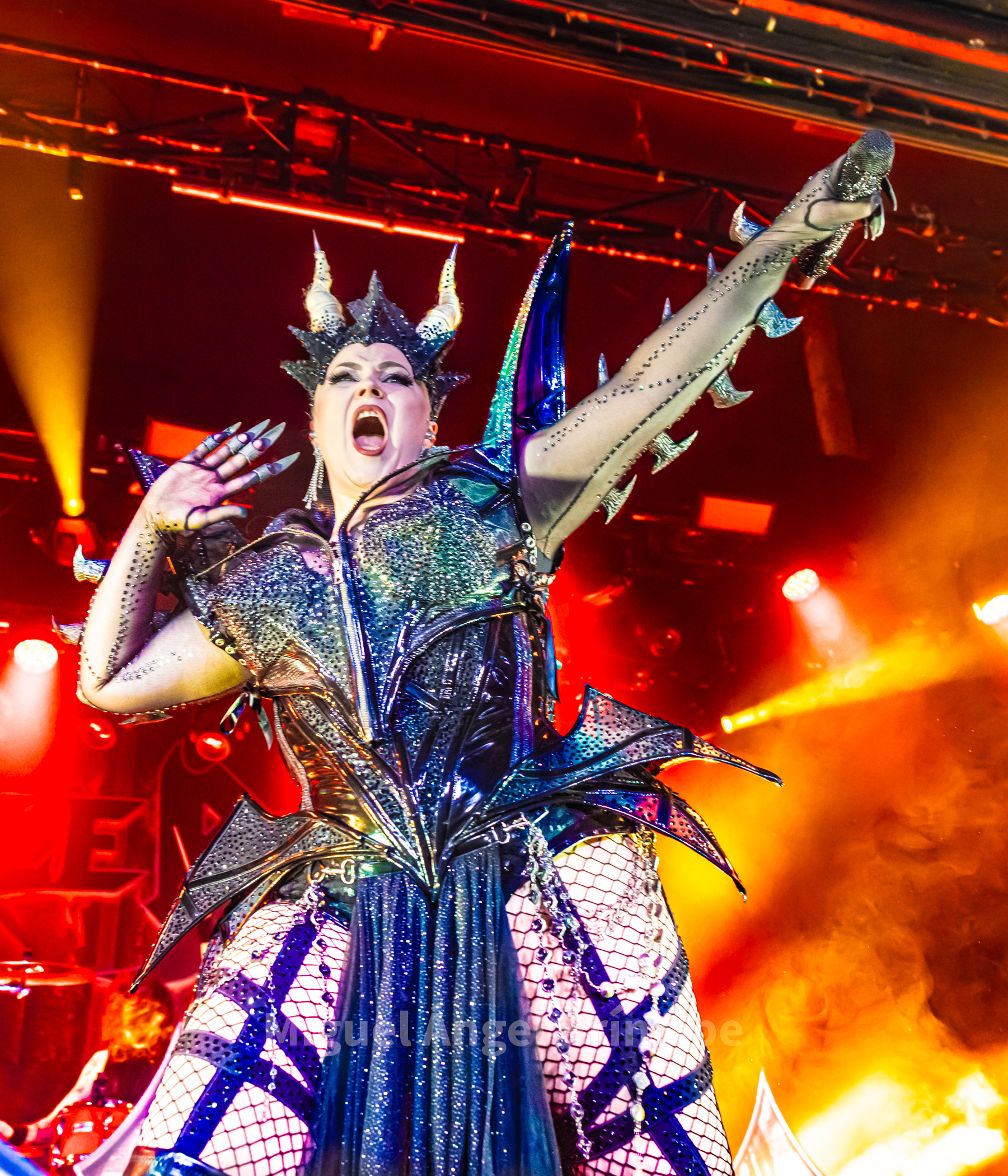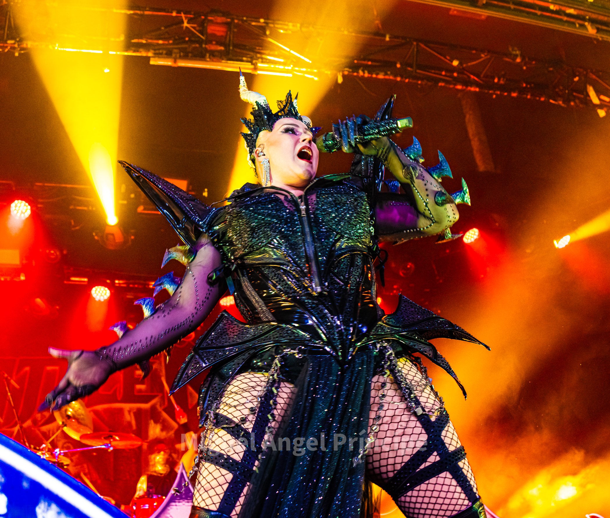 Llegó la hora tras el cambio de backline y la extensión del telón como fondo para los finlandeses BATTLE BEAST ante una expectante feligresía ávida de Heavy & Power, un Metal generoso en este caso desde el 2008 pues la prolífica producción de esta banda con siete discos en su haber no sólo ha sido abundante sino también fructífera consolidando poco a poco y definitivamente a este grupo que cuenta con seis miembros en sus filas liderados por la magistral en todo Noora Louhimo muy bien flanqueada por Pyry Vikki a la batería, Janne Björkroth a los teclados, Joona Björkroth a la guitarra, Eero Sipilä al bajo y Juuso Soinio a la guitarra rítmica.