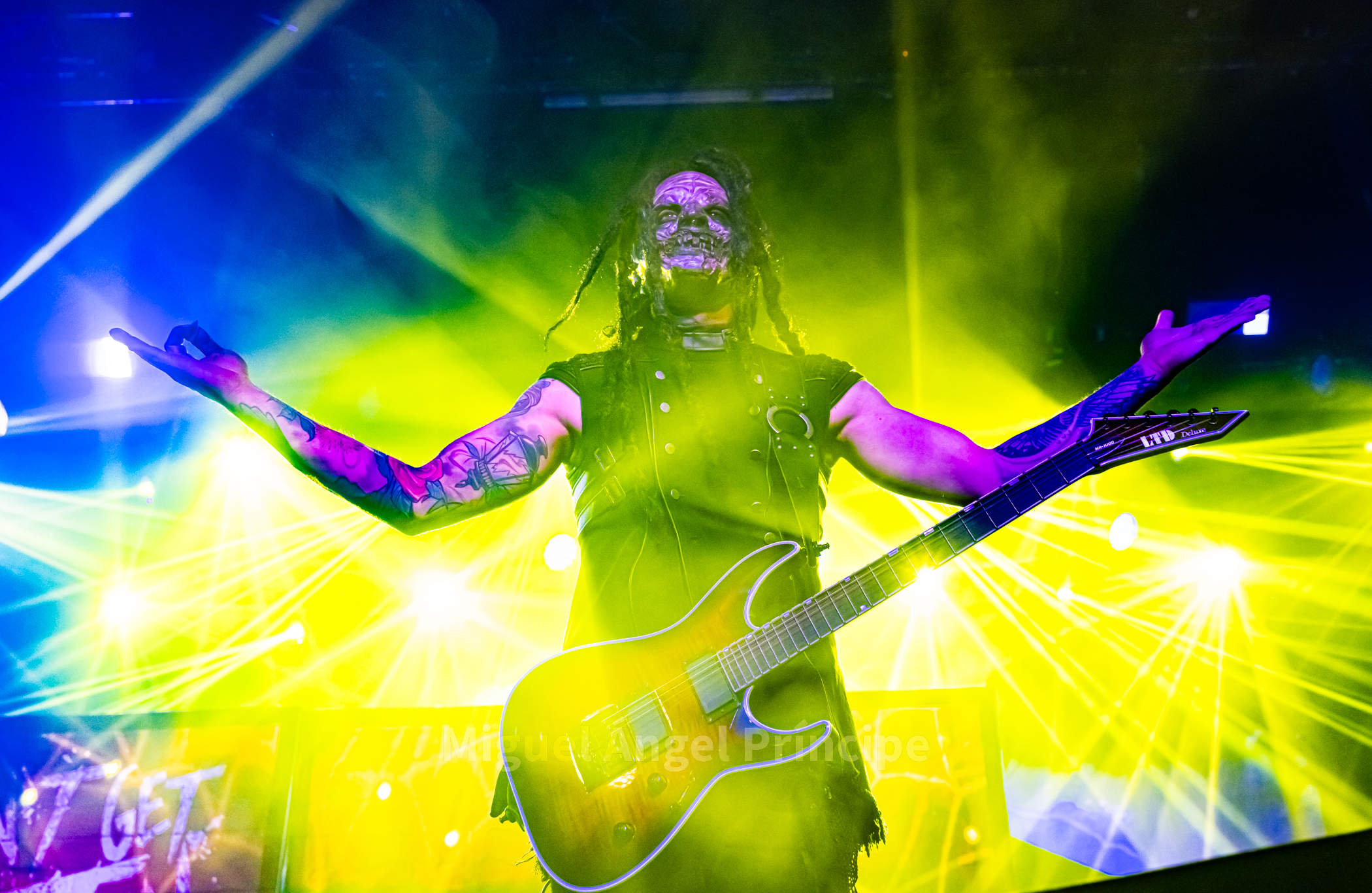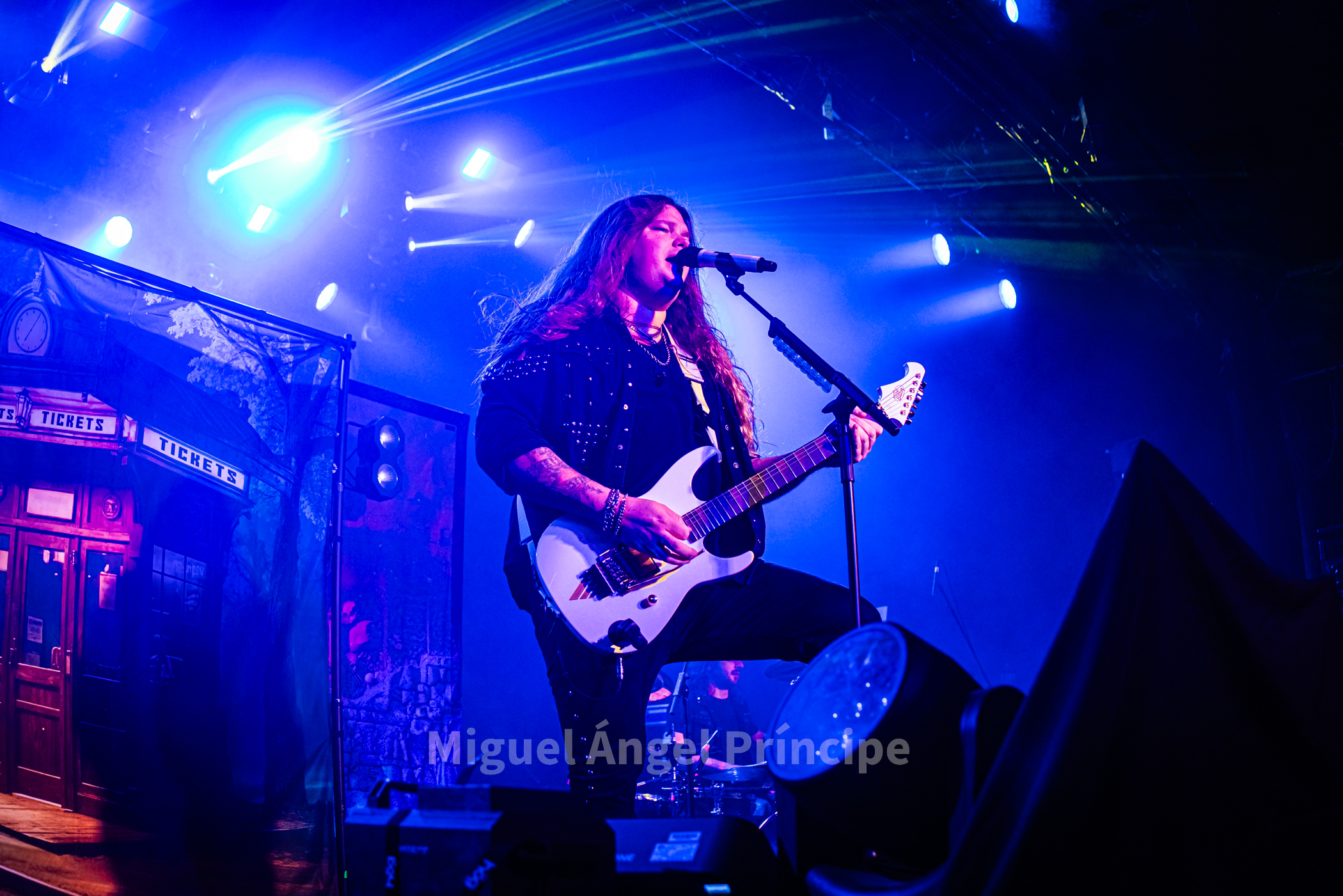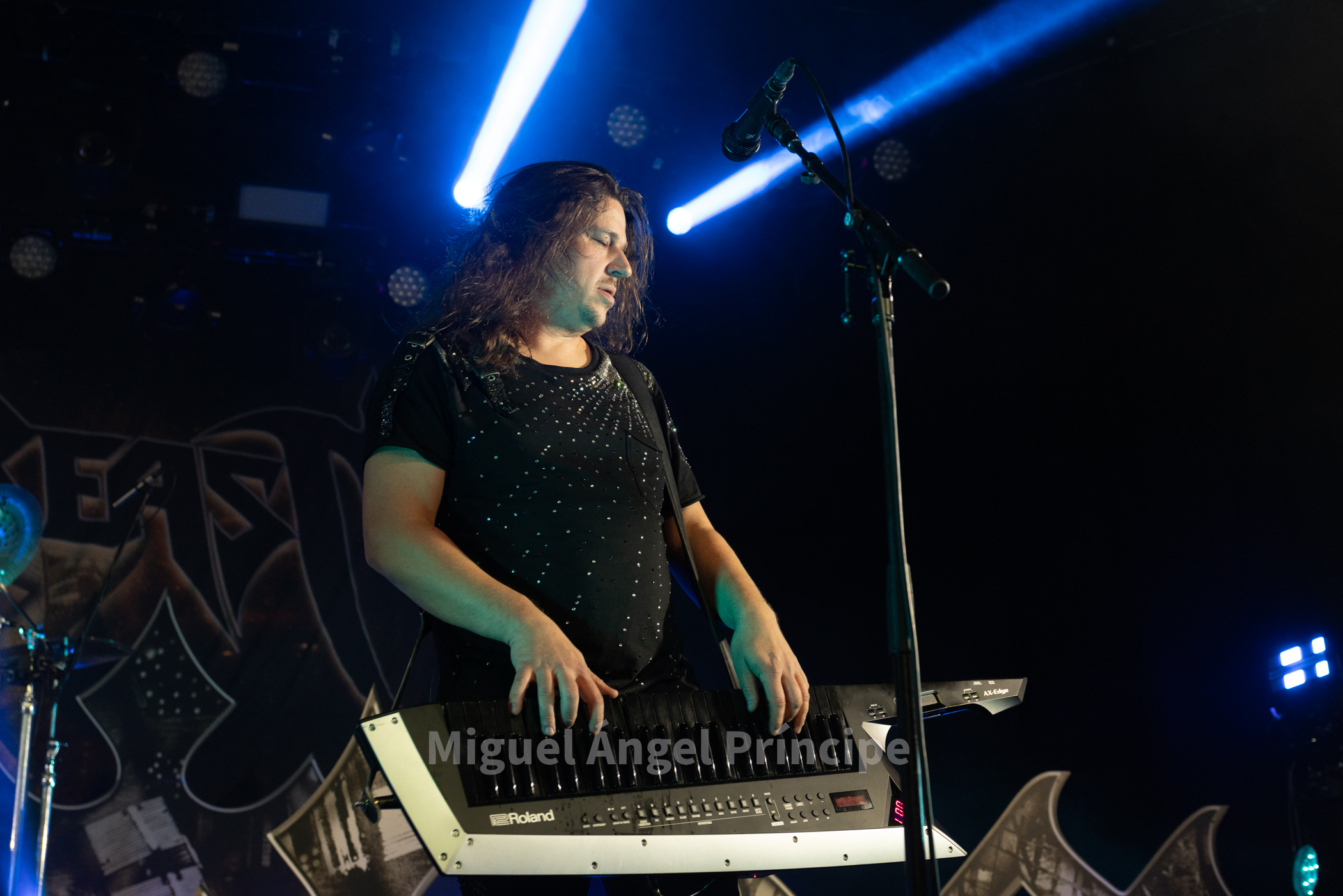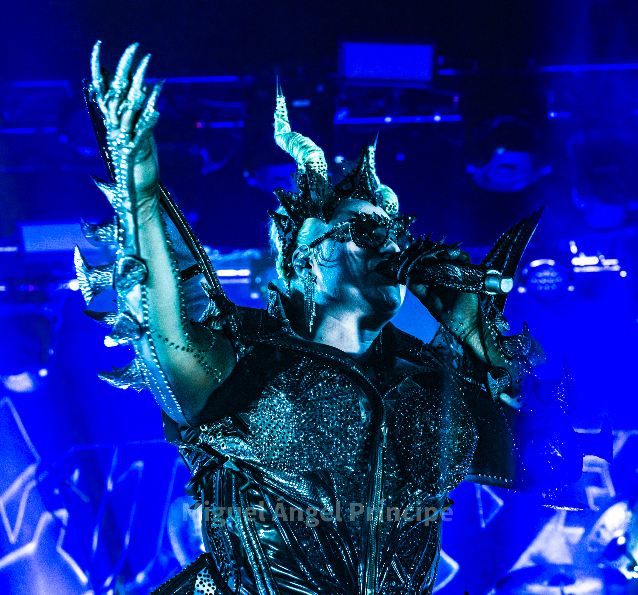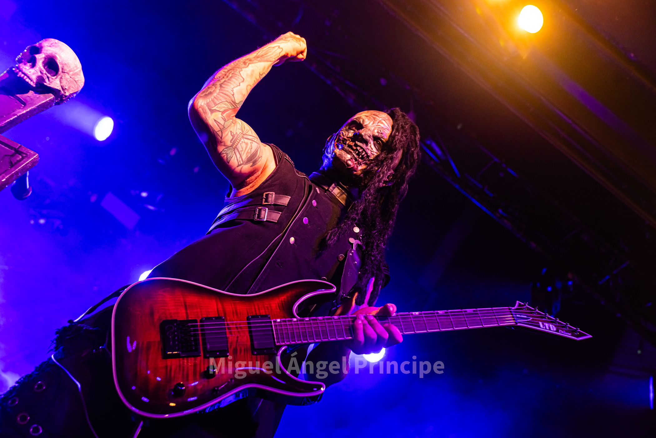 19:45 horas y DOMINUM sobre la tarima precedido por la oscuridad, las sombras e intensificada su aparición por haces de luz roja en una teatralidad zombie propia de esta joven formación creada en el 2022 encabezada por Felix Heldt que desde Alemania y acompañado por Patient Zero al bajo, Tommy Kemp a la guitarra junto con Victor Hiltop a la batería defendió como cuarteto no sólo una imagen arrolladora sino un directo cargado de ritualismo dirigido por la magnética voz de Heldt en su papel de creíble científico loco Dr. Dead, imprimiendo éste intensidad a los temas con unos constantes brazos abiertos a modo de invocación.