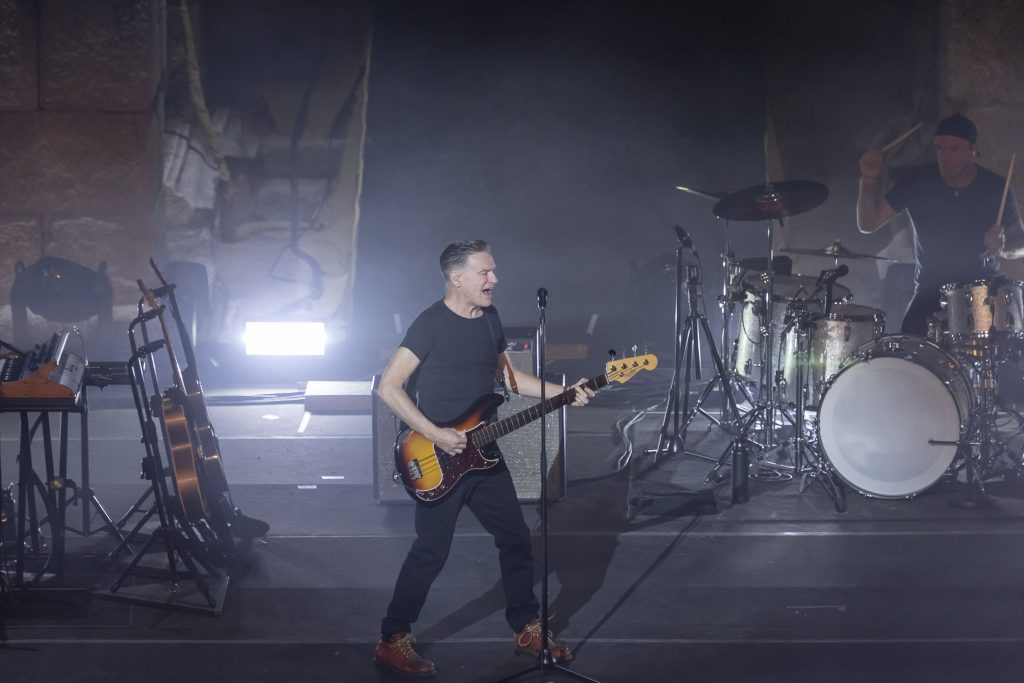 Bryan jugaba con la imagen de Julio César bajando y levantando el pulgar para testar entre el público lo adecuado de seguir adelante con la actuación en estas condiciones, pero el karaoke general que el inmortal estribillo de «Heaven» desató, debió de convencer al artista de seguir con esta íntima y especial forma de desgranar el setlist, acompañando ahora con otra guitarra sin amplificar Keith Scott al líder en otra de las que han pasado la prueba del tiempo como es «It´s Only Love». Creo que todos los presentes nos debatíamos en pensamientos entre lo adecuado o no de seguir en estas condiciones la actuación y lo privilegiados que estábamos resultando de presenciar tal derroche y amor por la música por parte del canadiense, pero tras una nueva muestra a capela con «Make Up Your Mind», el artista y su equipo decidieron que lo mejor sería un parón.