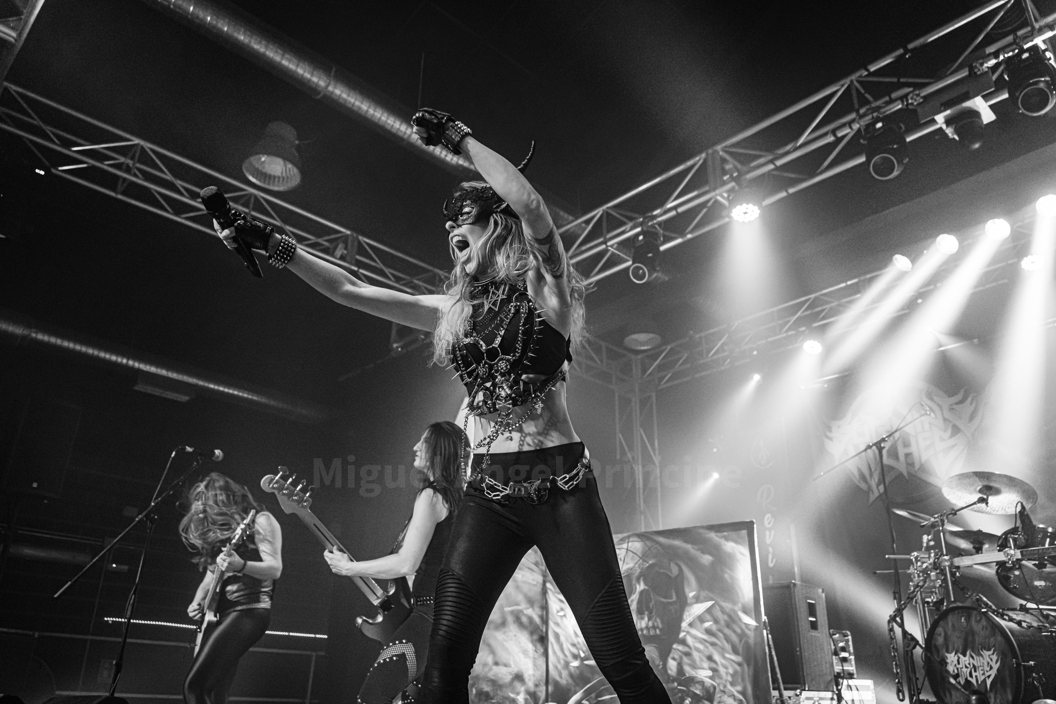 Desde el primer momento el sonido estuvo a la altura de una banda totalmente entregada con las dos guitarristas intercambiando posiciones encima de la tarima, incesantes movimientos de Jeanine con un headbanging perfectamente sincronizado al ritmo del sonido de su bajo en cada uno de los temas que estaban sonando y una Laura enorme que no paró de saltar a lo largo de todo show mientras el combo seguía adelante con «Maiden Of Steel», «The Dark Tower» o «Sea Of Lies» con un público cada vez más embrujado y rendido ante el espectáculo.