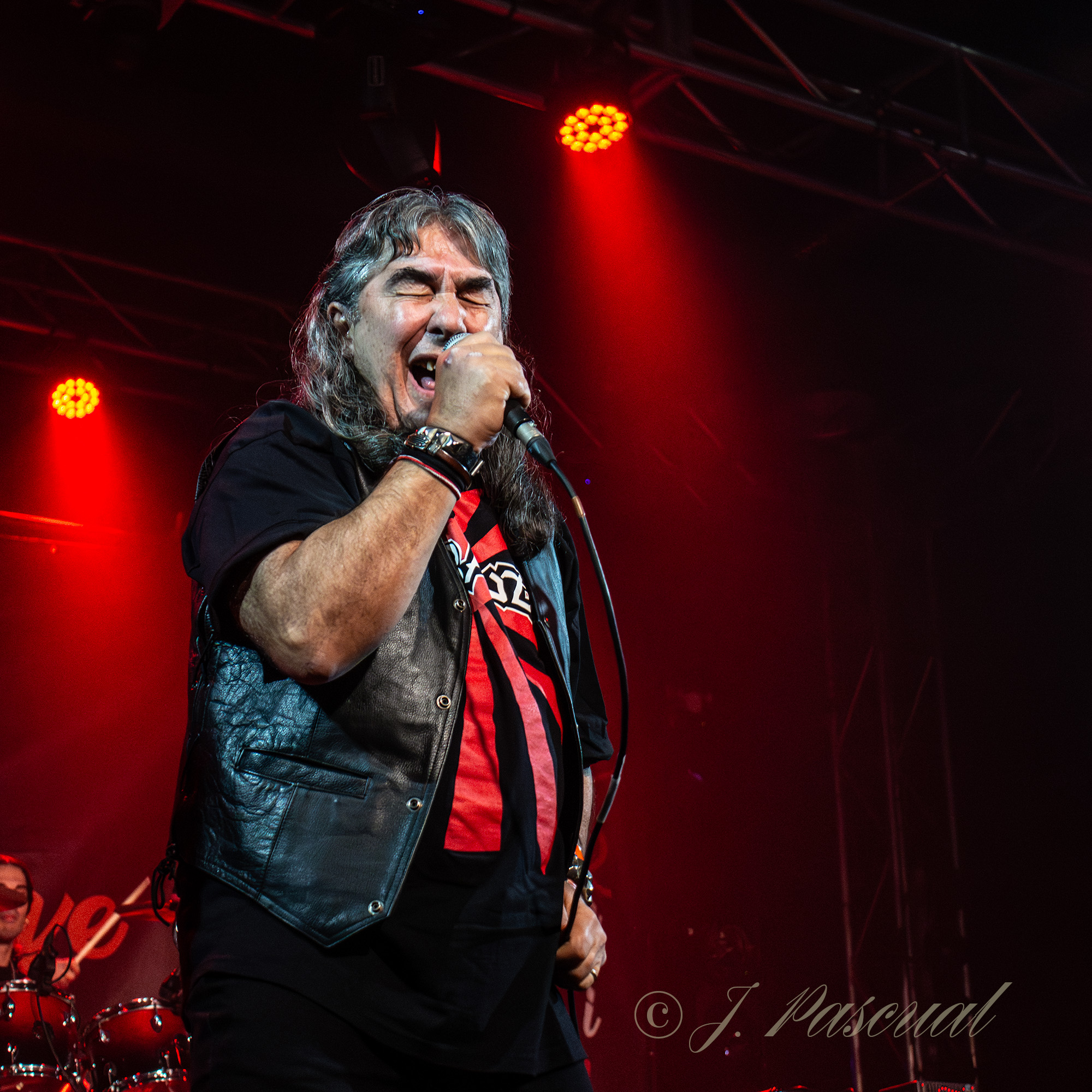 El punto intermedio de tranquilidad arrancaría con «Balas de Hierro» para llegar a su punto álgido con esa bella oda a la amistad que es «Amigo» dedicada a todos los valencianos recordando que »No hay que olvidar que las flores nacen en el fango», envolviéndonos a todos en una atmosfera nostálgica, de la que pronto nos sacaría «Héroes» para subirnos de nuevo las pulsaciones al ritmo de sus riff, pulsaciones que ya no bajarían hasta el final de la noche gracias a temas como «Rock Duro». La noche parecía consumirse a la misma velocidad que su «Coche Rápido» que nos conducía hasta el inexorable final que llegaría con ese grito de guerra que en su día fue el responsable en cierta manera del nacimiento de la banda que es «Banzai» y que ponía el punto final a la noche, dejando como siempre un cúmulo de buenas sensaciones con un Valentín comunicativo y en forma y una banda inmensa a su alrededor.