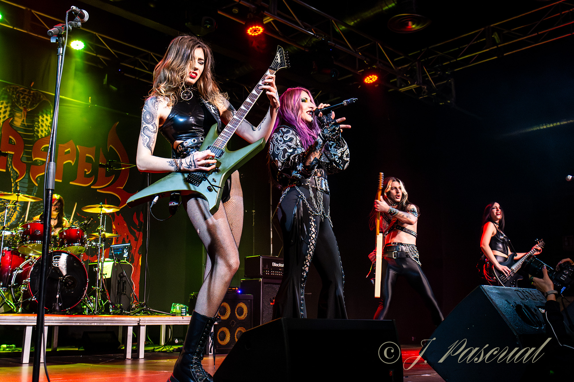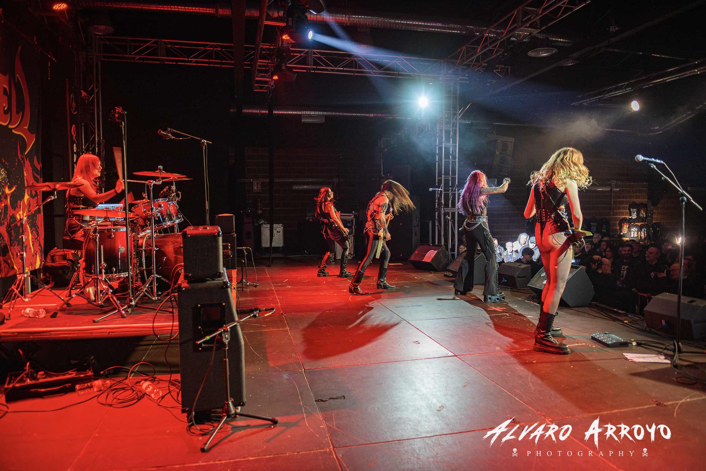 Haciendo un paréntesis en sus actuaciones con THUNDERMOTHER para dejar de nuevo su impronta en los escenarios españoles, con una gira de 11 fechas seguidas durante este mes de marzo. Calendario apretado para la banda, que según pudimos presenciar en la cita madrileña, no han hecho perder al quinteto ni un ápice de su dinámica propuesta sobre las tablas, siendo palpable el crecimiento de la banda tanto a nivel musical como en el desarrollo escénico.