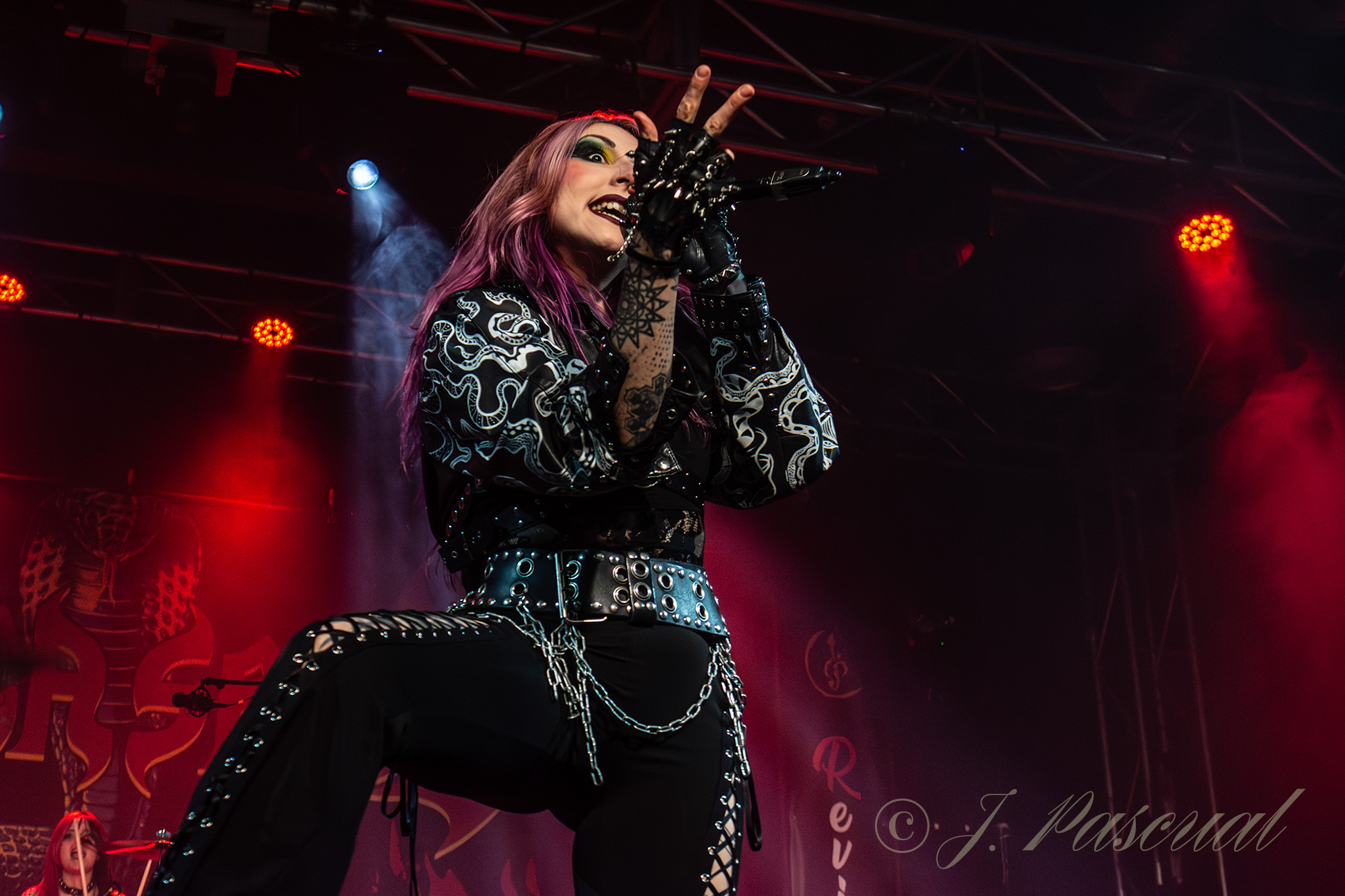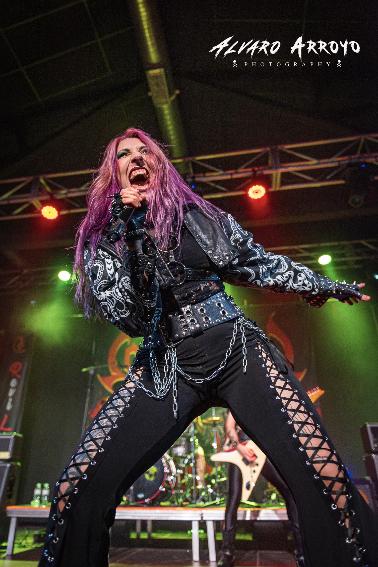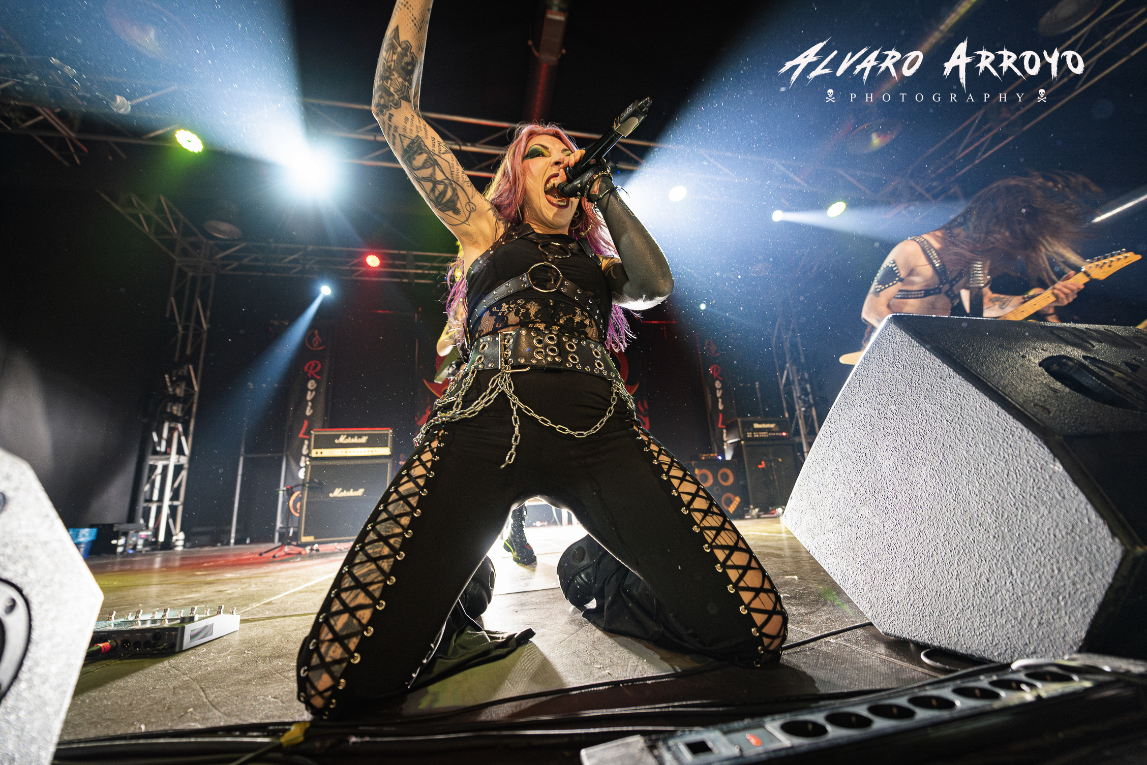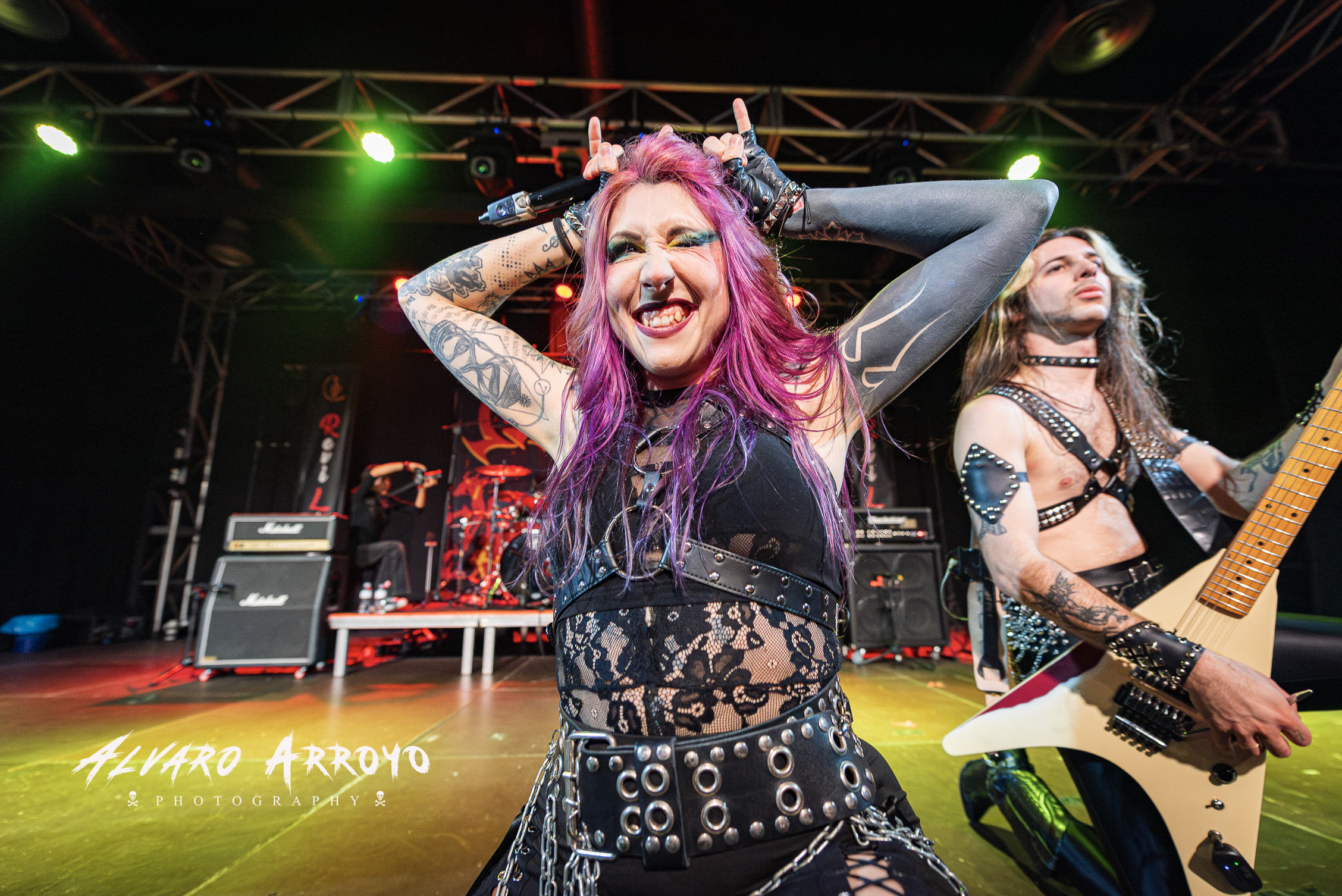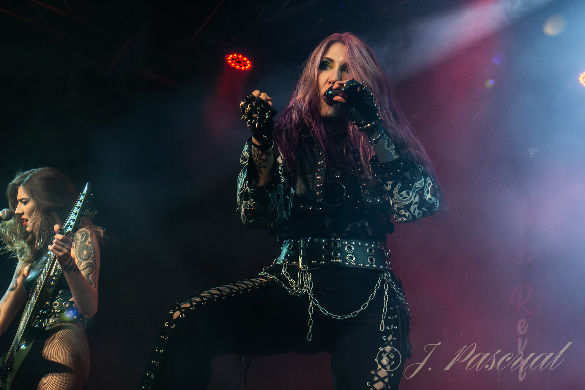 La frontwoman Kris Vega conduce a su antojo los espacios entre canciones, derrochando simpatía y carisma a partes iguales, aprovechando ahora para presentar a sus compañeros de banda y solicitando a continuación al público presente que nos arrodillemos para recibir a la “Warrior from Hell”, antes de rasgar de forma brutal sus cuerdas vocales invocando a esta guerrera, desarrollando la banda un nuevo tema conducido por el robusto traquetear del bajo, para desembocar en un nuevo estribillo de inmenso gancho, y rematando en todo lo alto Sonia y Adri con un electrizante solo compartido, dejando a las claras la complicidad del tándem fuera y dentro del escenario.