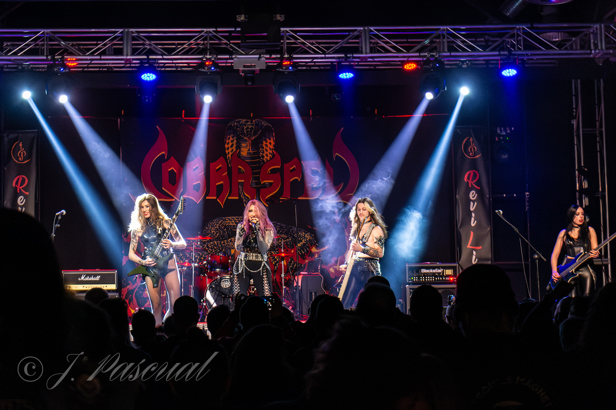 A falta de máquina del tiempo, gracias a la interacción de la promotora Kivents y el Festival Luarca Metal Days, pudimos disfrutar una vez más de un bolazo a cargo de COBRA SPELL, rememorando con su propuesta musical y puesta en escena los tiempos en los que las grandes bandas de Hard Rock dominaban la Tierra. El quinteto de origen holandés, hoy afincado en Barcelona, siempre liderada por la joven guitar-hero Sonia Anubis, sobrepasó una vez más las expectativas de los en torno a 200 seguidores que hoy nos daríamos cita en la madrileña Sala Revi Live.