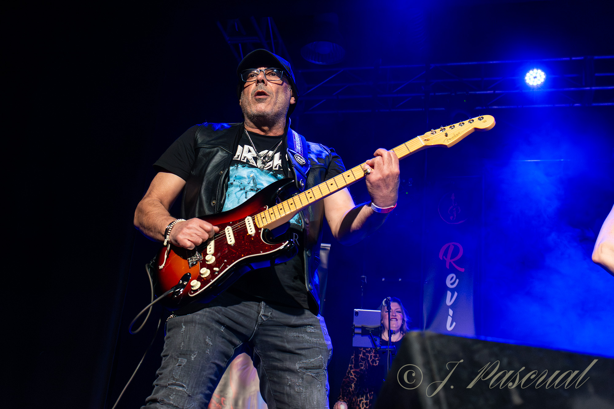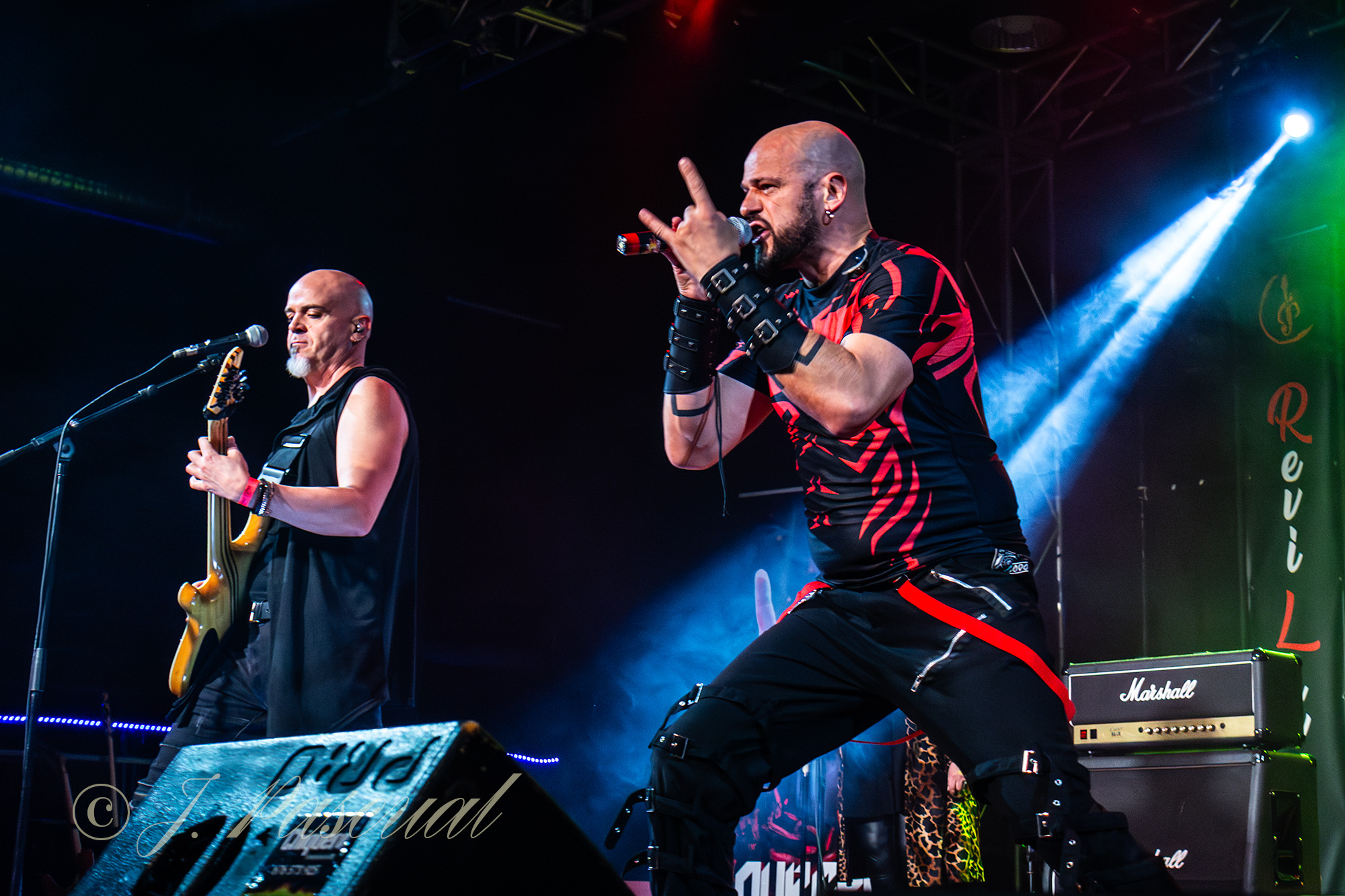 Arrancaban con “Destino, Yo Te Busco» el tema que di nombre a su anterior trabajo, al que seguiría “Contra Viento y Sol” también incluido en ese mismo álbum, con el triunvirato al mando de las seis cuerdas formado por Ángel Gutiérrez, Manu Acilu, Juanjo Alcaraz a pleno rendimiento. Bajo la atenta mirada de Peri y su omnipresente bajo, la banda se adentraba con “Siete Brujas” y “Salto al Vacío” en el territorio de Renacer, con un público que llegaba con la lección bien aprendida, que coreaba cada una de las estrofas de los temas, la Hard Rockera “Megalomanía” con una potente batería comandada por Jasón y un inmenso Kike Fuentes a la voz que nos dejó a lo largo de la noche una buena muestra de su versatilidad vocal y su efectividad como frontman siempre apoyada a los coros por Natalia Martín.