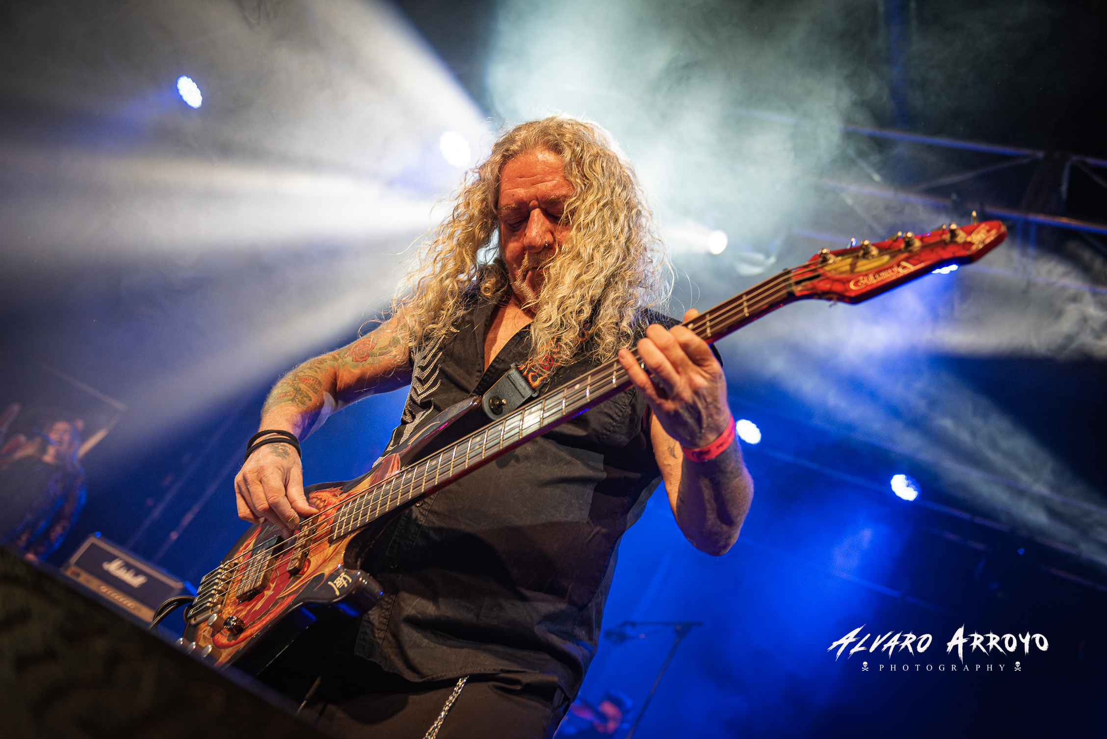 Tras los perceptivos cambios en el equipo llegaba el turno de NURCRY. Cuando vi a la banda por primera vez en directo, en octubre del 2023 salí encantado por lo que me encontré sobre el escenario y he de decir que lo que se presagiaba entonces, tras el rodaje de propio de los conciertos y convivencia, ha subido aún un escalón más, algo totalmente esperado dado el nivel de sus componentes y que ya habíamos podido comprobar escuchando su último trabajo Renacer, donde cada uno ha ido aportando su granito de arena a la labor compositiva del siempre creativo Ángel Gutiérrez, alma mater del proyecto, pero siempre queda la prueba de fuego del directo y esa pese a los problemas técnicos con el sonido que sufrió la banda en esta ocasión, quedo superada ampliamente, encontrándonos un grupo mucho más acoplado en el directo en la que se ve que el buen rollo y la complicidad son la nota predominante, algo que siempre acaba contagiándose al público.
