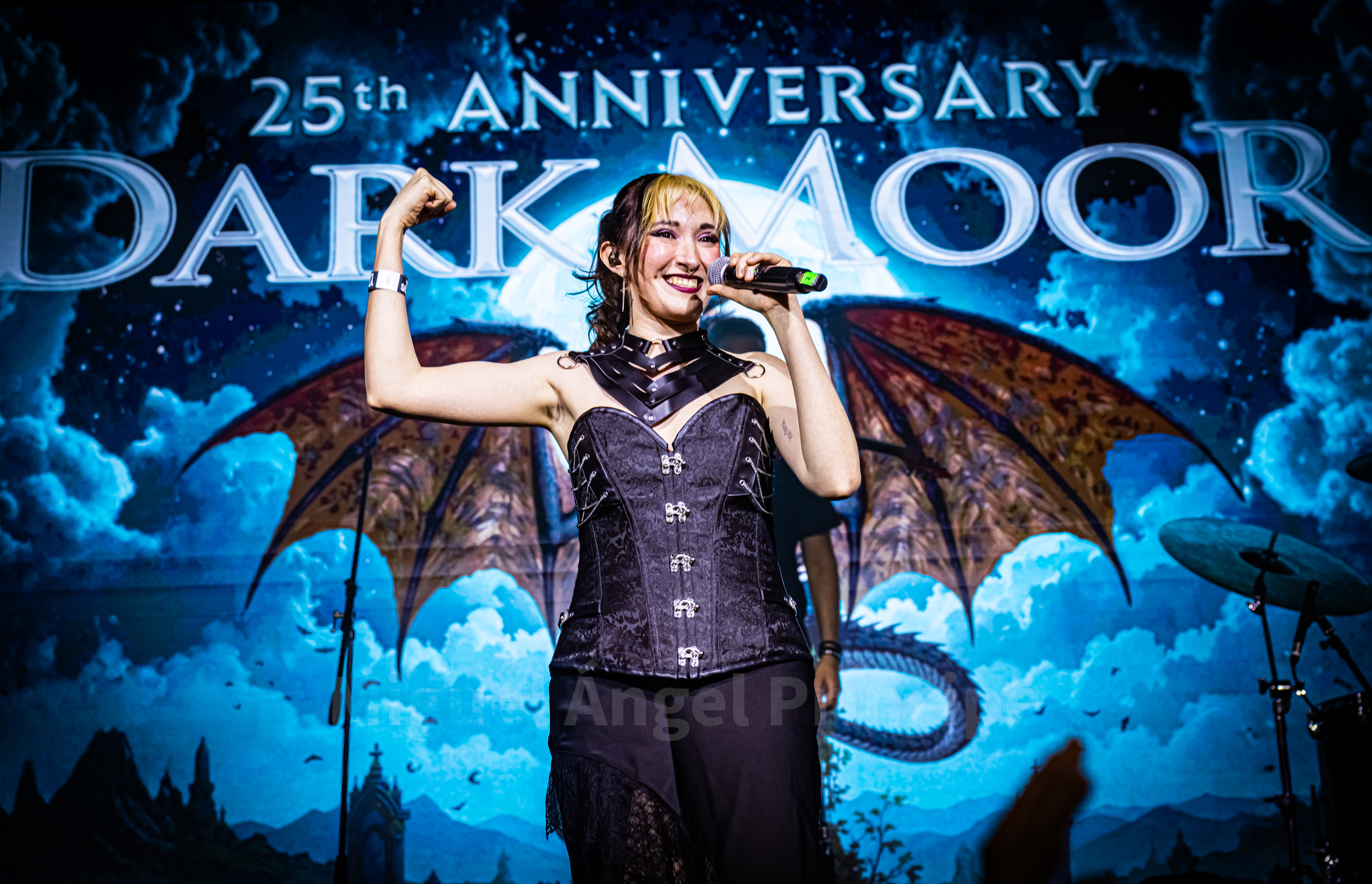 A las 21:00 saltaba a la tarima el cuarteto madrileño pero dado lo especial del concierto acompañado por tres invitados de lujo que no hicieron colaboración puntual, sino que formaron parte del grupo convirtiendo a DARK MOOR en un gran septeto compuesto por el fundador de la banda Enrik Garcia a la guitarra y a las voces, Alfred Romero a la voz, Carlos Delgado a la batería y Dani Fernández al bajo como miembros oficiales a los que se sumaron Javi Díez a los teclados, Óscar Calvo al violín y la gran aportación de la soprano Mariana Otero que dio un toque tremendamente especial en sus intervenciones.