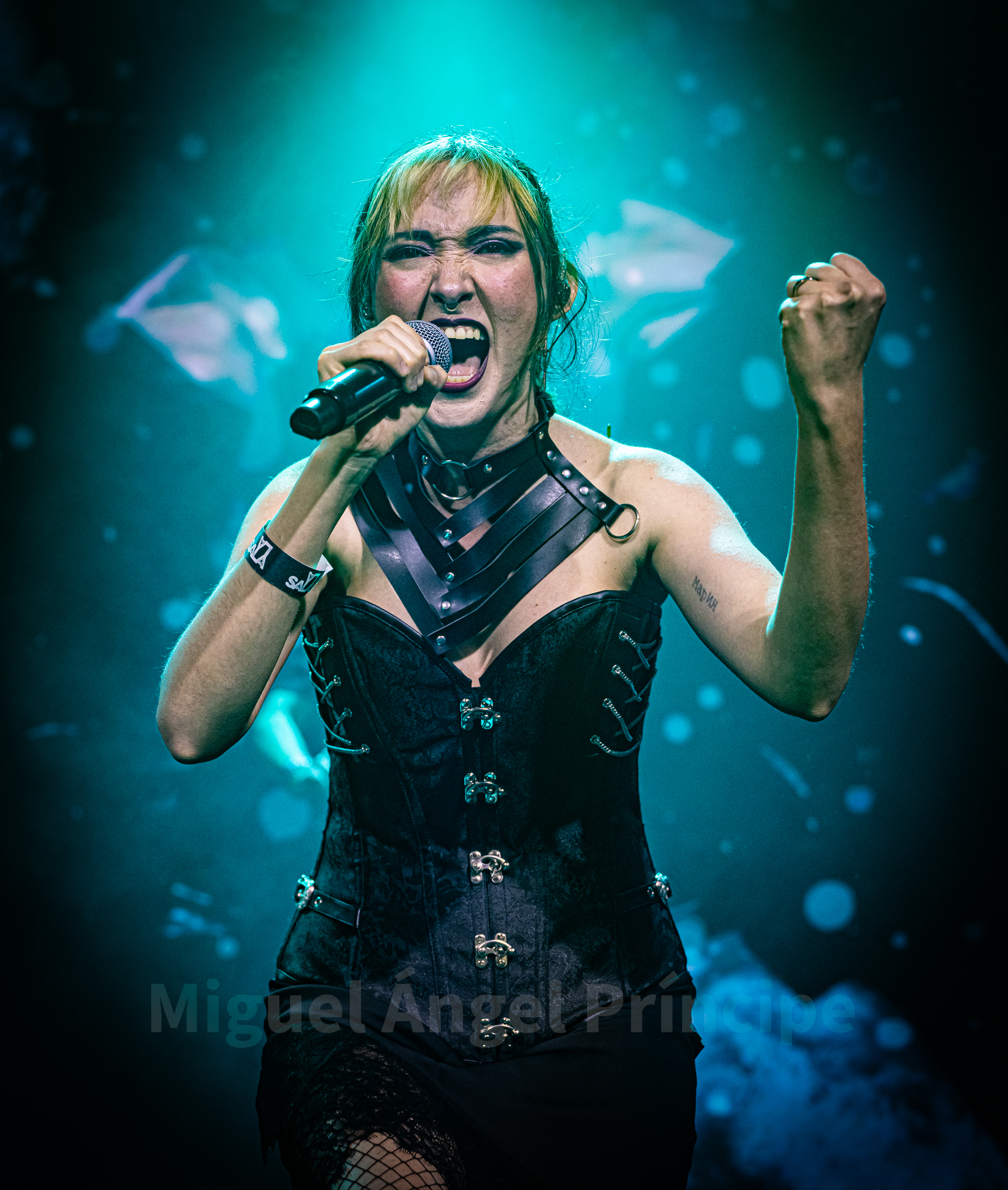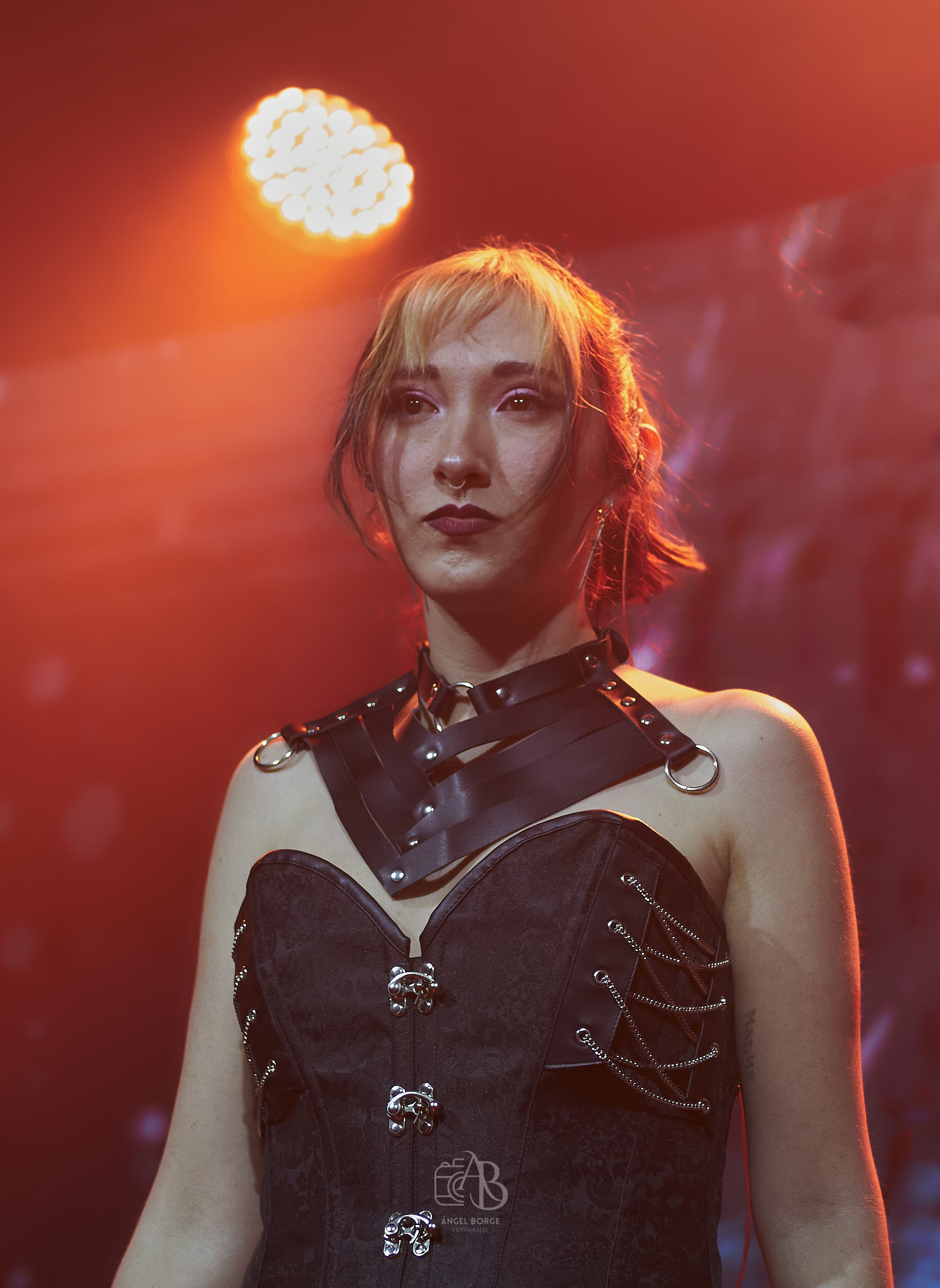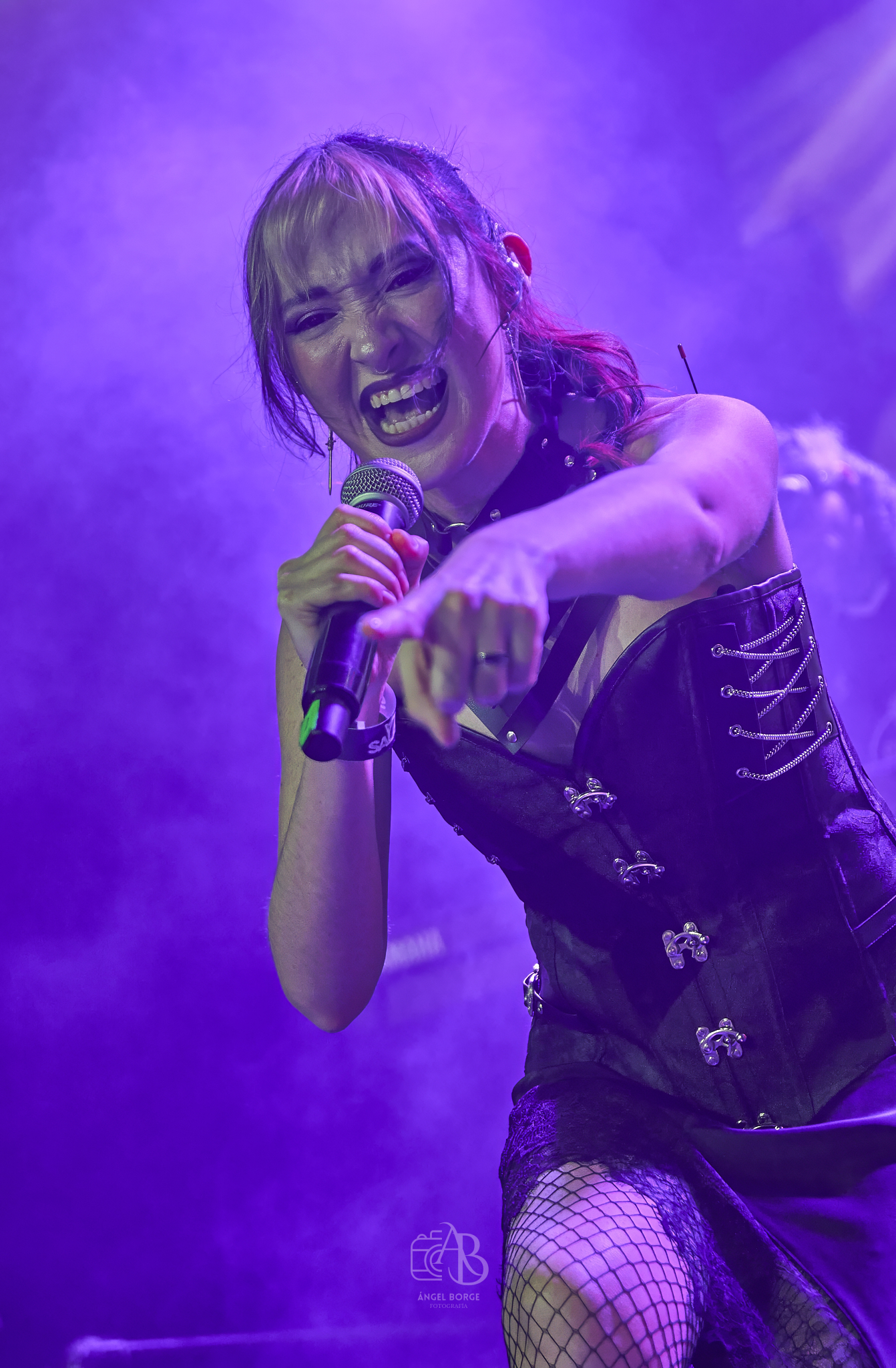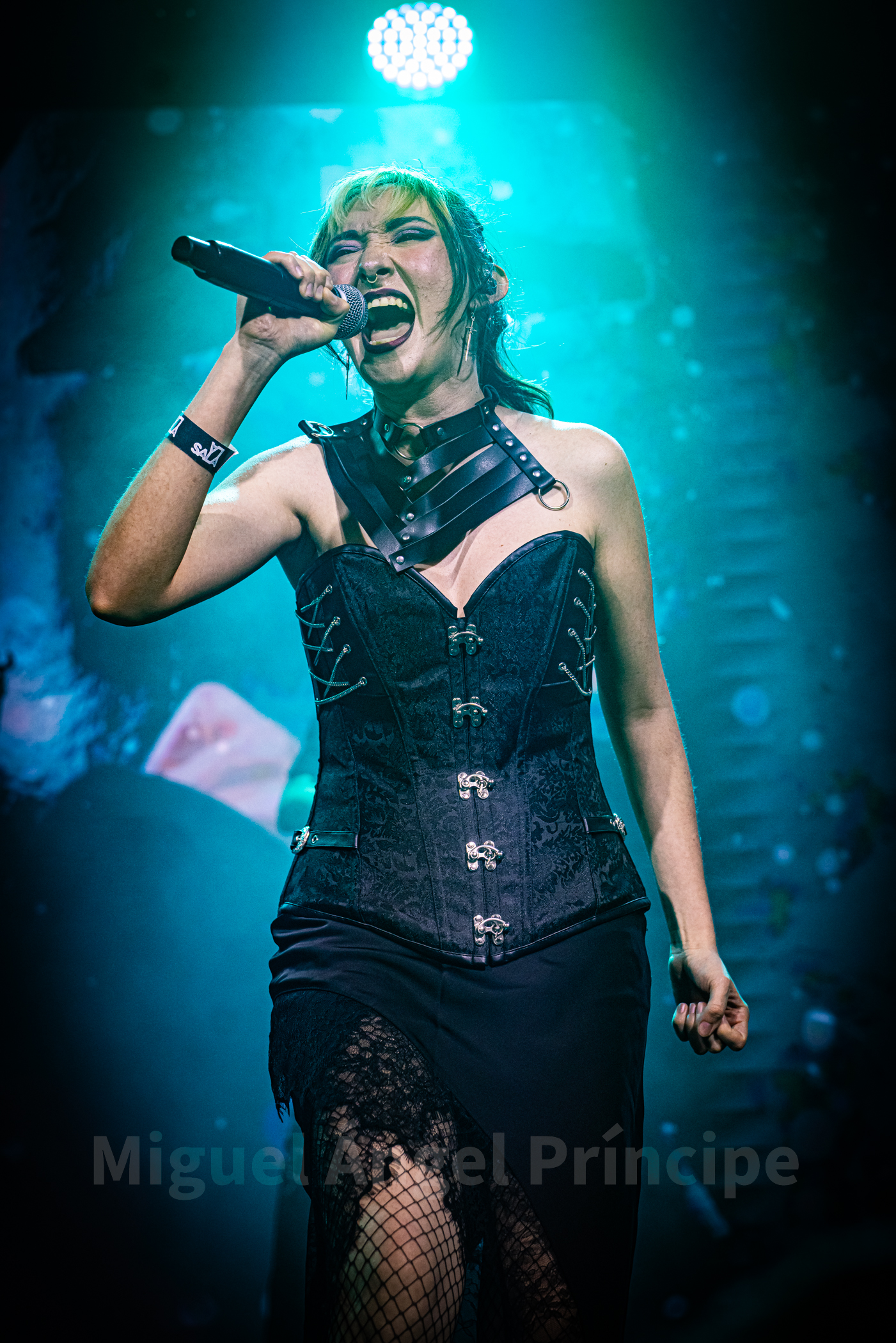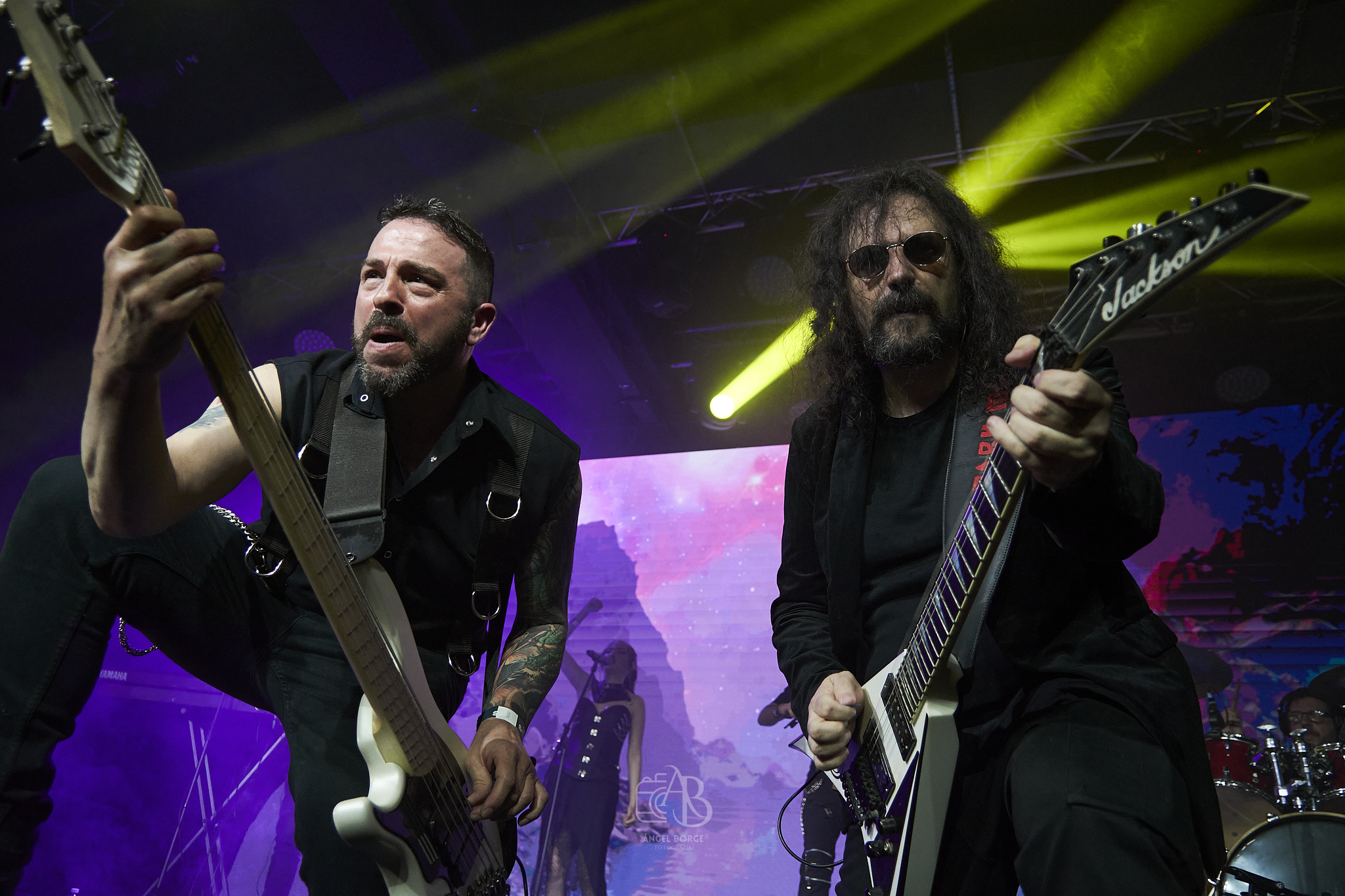 Nuevamente volvimos a escuchar los maravillosos agudos de Mariana combinados con la gran voz de Alfred en «Swan Lake» llegado aquí el momento por nuestra parte de felicitar a DARK MOOR por la inclusión de la soprano en este concierto, ya que esto se sumó a la vistosidad de la pantalla que fue tematizando cuantas pistas iban sonando al tiempo que nos trasladaba a otros mundos épicos que es de lo que suelen los madrileños hablarnos en sus letras. De su último lanzamiento Origins nos presentaron «Birth Of The Sun» con sus toques ancestrales y celtas antes de que llegase un momento de descanso para Alfred dejando éste que Mariana nos alucinara con «Maid Of Orleans», una composición que la canaria interpretó en solitario con la fuerza que este tema tiene y que ella supo aportar.