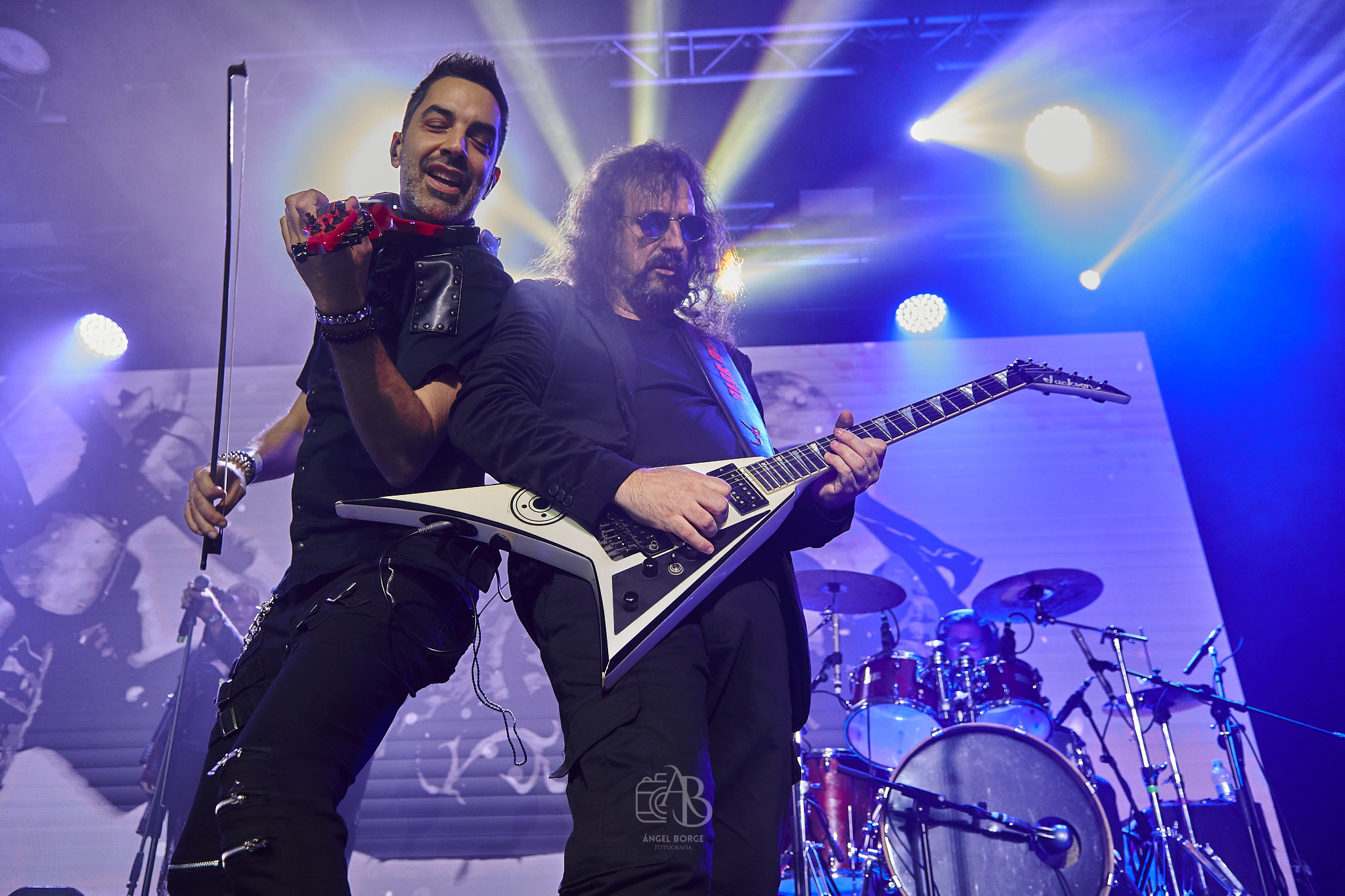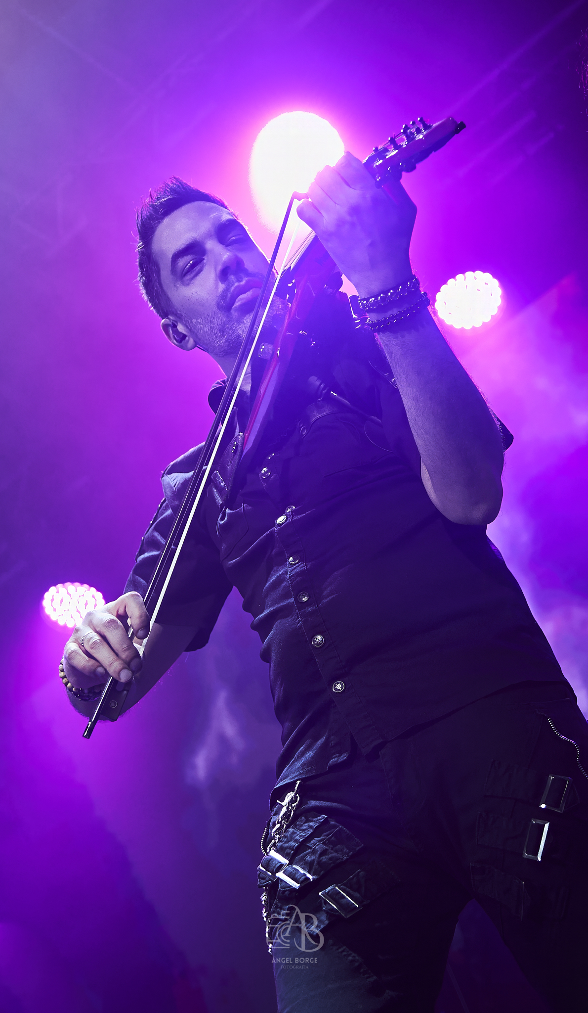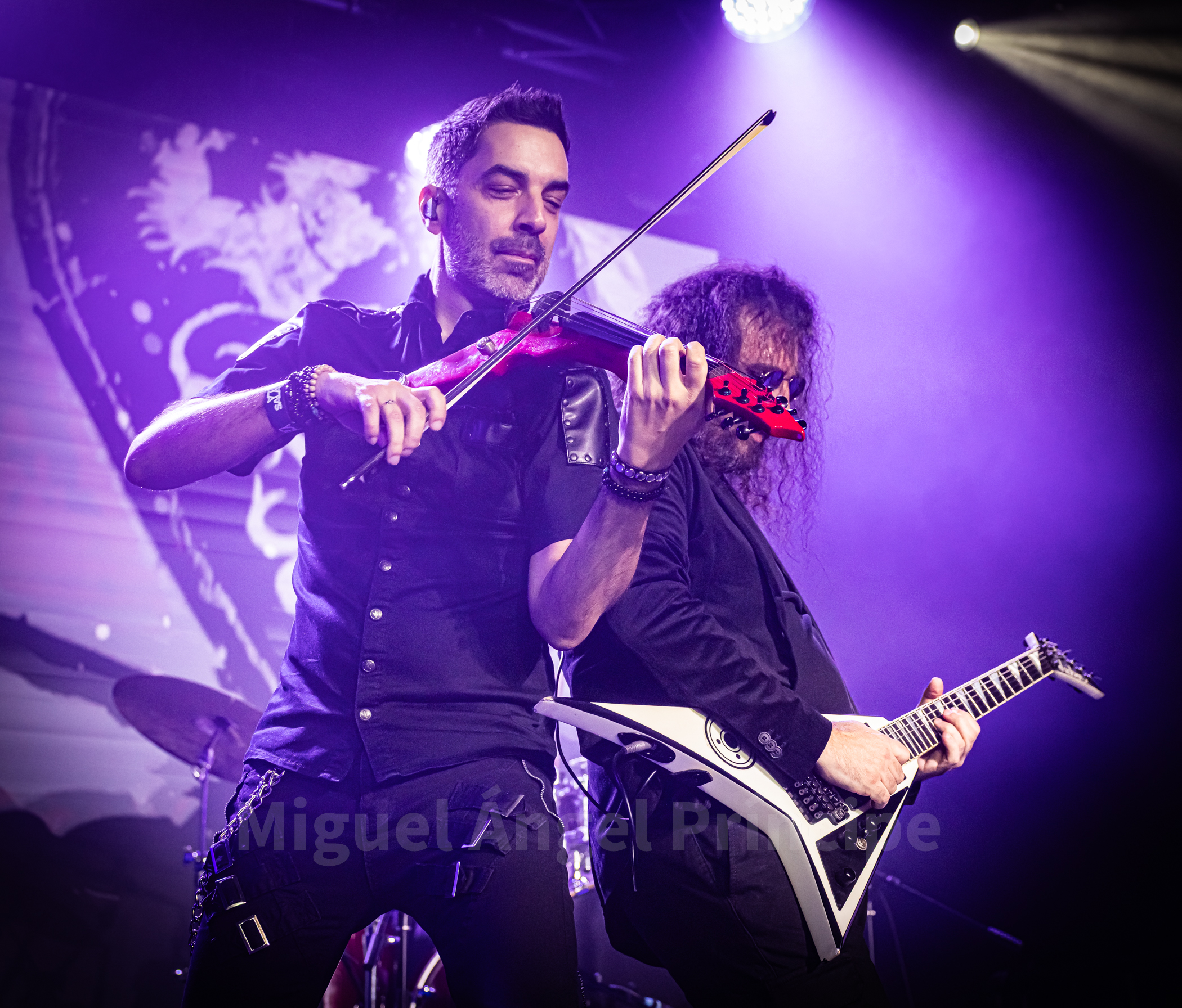 El combo abrió con el tema homónimo al nombre de la formación dejando claro ya desde el comienzo que la noche sería intensa pues para romper el hielo, el grupo despegó con este corte largo donde ya de entrada pudimos apreciar la mezcla entre las voces y los coros unido esto a una creciente euforia de todos los miembros de la banda enlazando directamente con uno de sus clásicos como es «Before The Duel», pieza donde destacó sobremanera el sonido de las seis cuerdas de la guitarra de Enrik invadiendo cada rincón de la sala dando paso tanto a «The Emperor» como a «Mio Cid», momento en el cual el violín de Óscar brilló con luz propia en una interpretación bilingüe que arrancó en inglés y culminó en castellano.