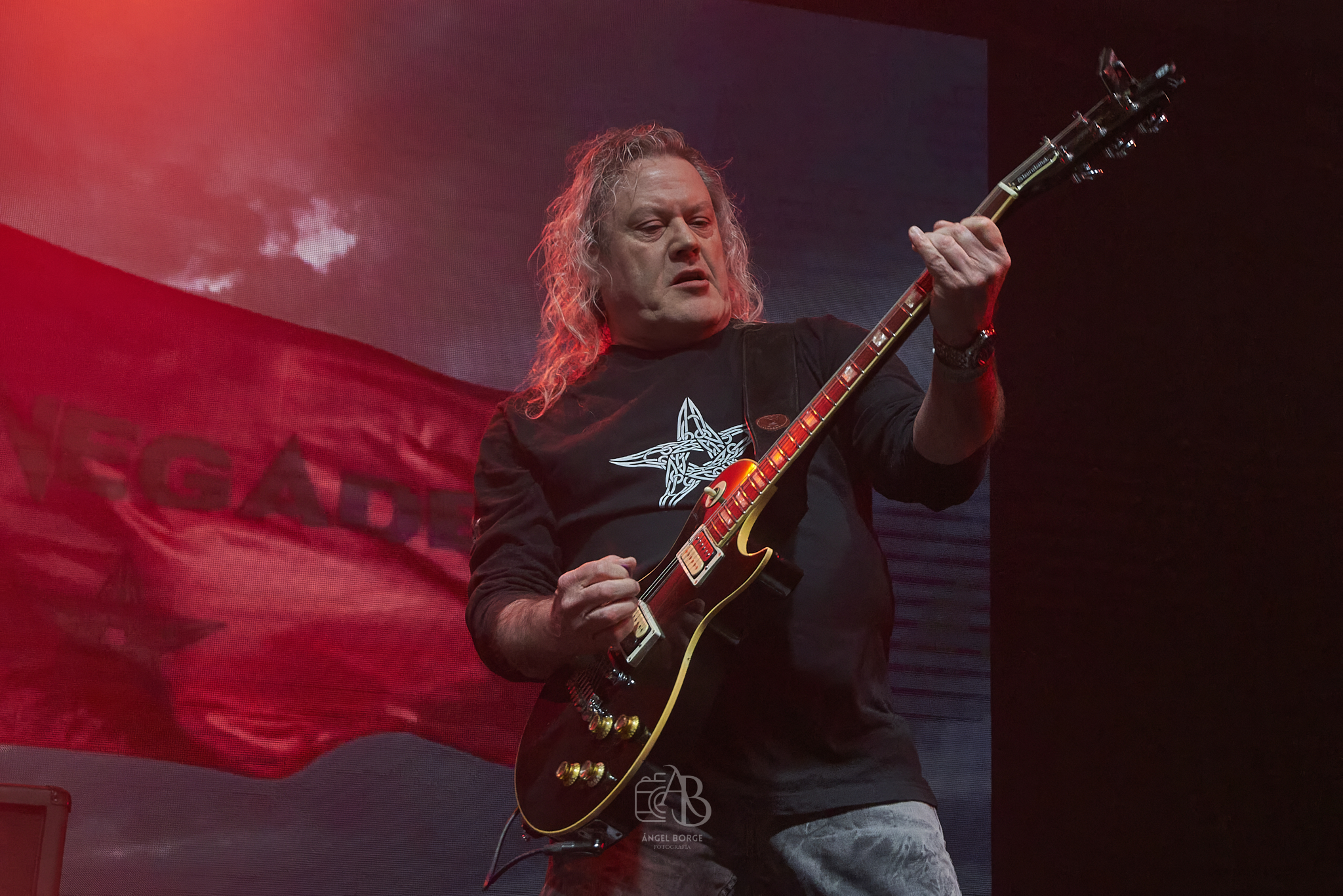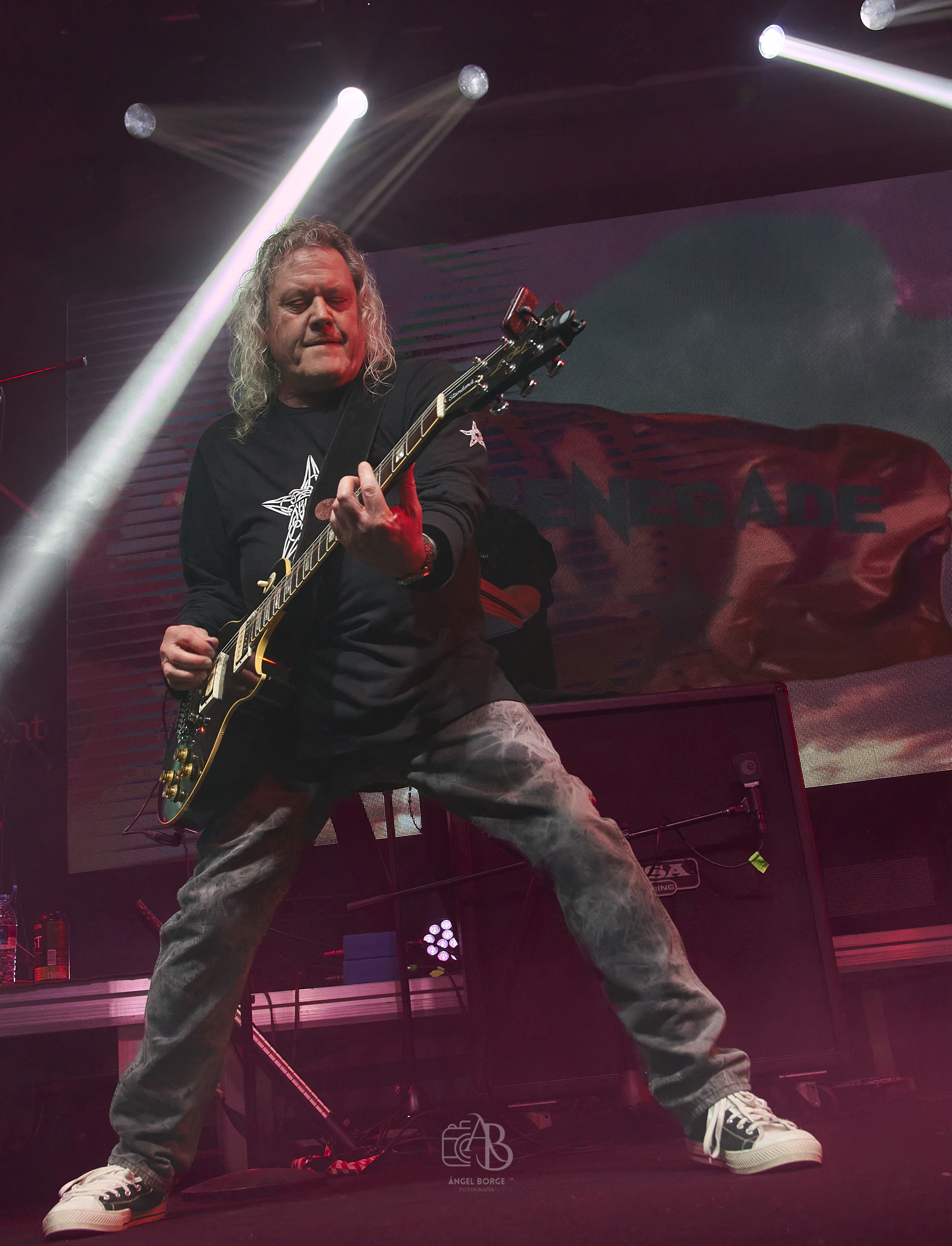 Precisamente con un teclado de mano que portaba Darren interpretaron «Angel of Death» dando inicio así a una histeria colectiva tanto por parte los músicos como por parte de un publico que disfruto segundo a segundo con una intensidad máxima, nunca pude ver un concierto de la banda de PHIL LYNOTT pero el espectáculo ofrecido por RENEGADE fue sublime, cada pista que sonaba era un hit y así pudimos escuchar «Jailbreak», «Are You Ready», «Don’t Believe A Word», «Emerald», «Chinatown» son tantos los himnos con los que cuenta THIN LIZZY que incluirlos todos hubiera hecho un setlist enorme, pero los elegidos fueron perfectos, sólo hay que considerar las que vinieron después «Killer On The Loose» y «Cold Sweat» y el momento en que bajaron el ritmo con la balada «Still In Love».