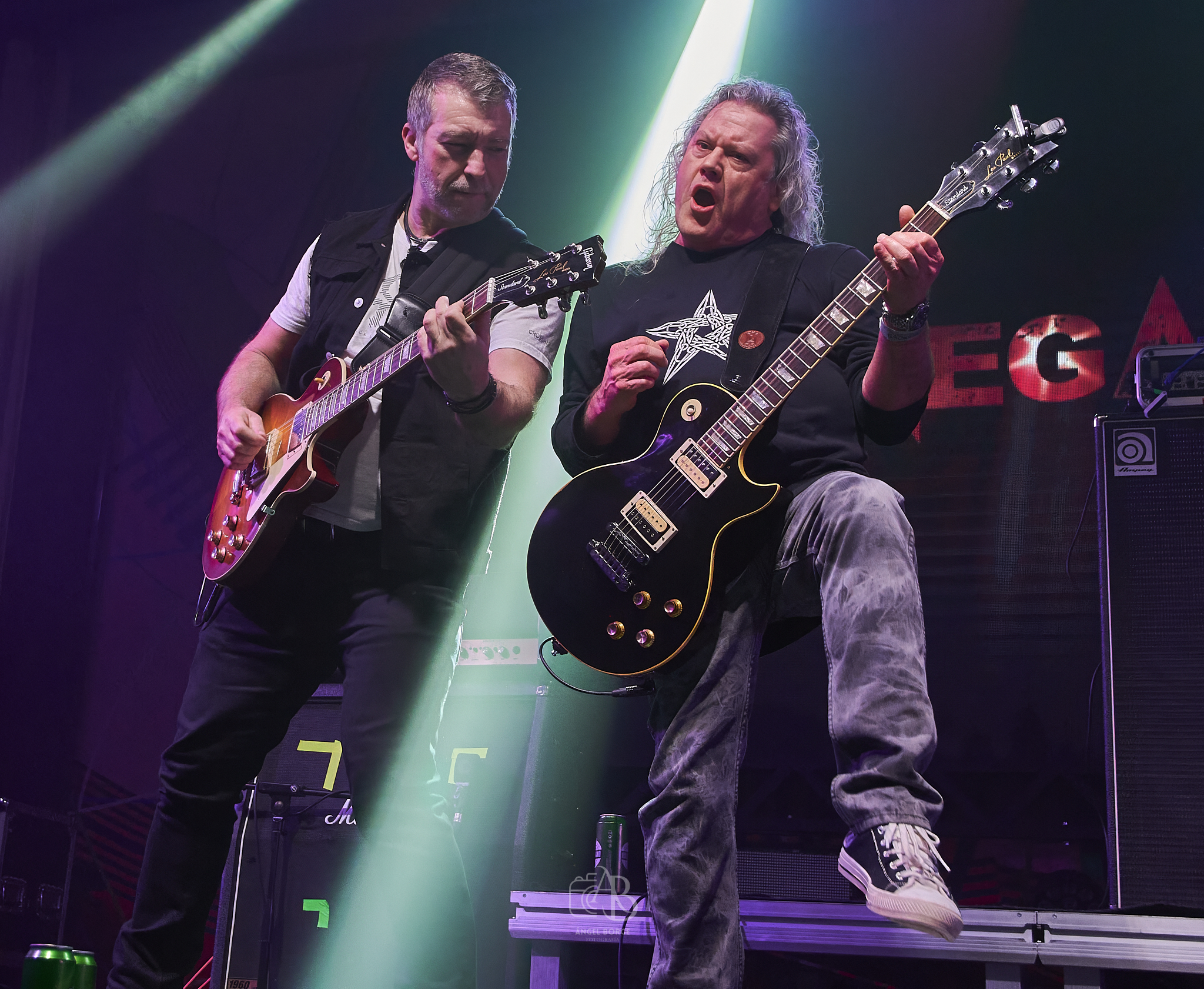 No podía RENEGADE permitir que el publico se viniera abajo tras el cambio de ritmo y nada como interpretar «Waiting For An Albi», «Massacre», «Suicide» y «Cowboy Song» para volver a saltar y a gritar en los estribillos. El espectáculo estaba llegando a su fin pero faltaban algunos de los temas mas conocidos siendo uno de ellos el siguiente en sonar «The Boys Are Back In Town». Momento de recuerdo al desaparecido Gary Moore con «Black Rose» ya que el virtuoso irlandés participo en la grabación del álbum allá por 1979 reemplazando a Brian Robertson, y nos quedaban dos «Rosalie» y el gran cierre con «Whisky In The Jar».