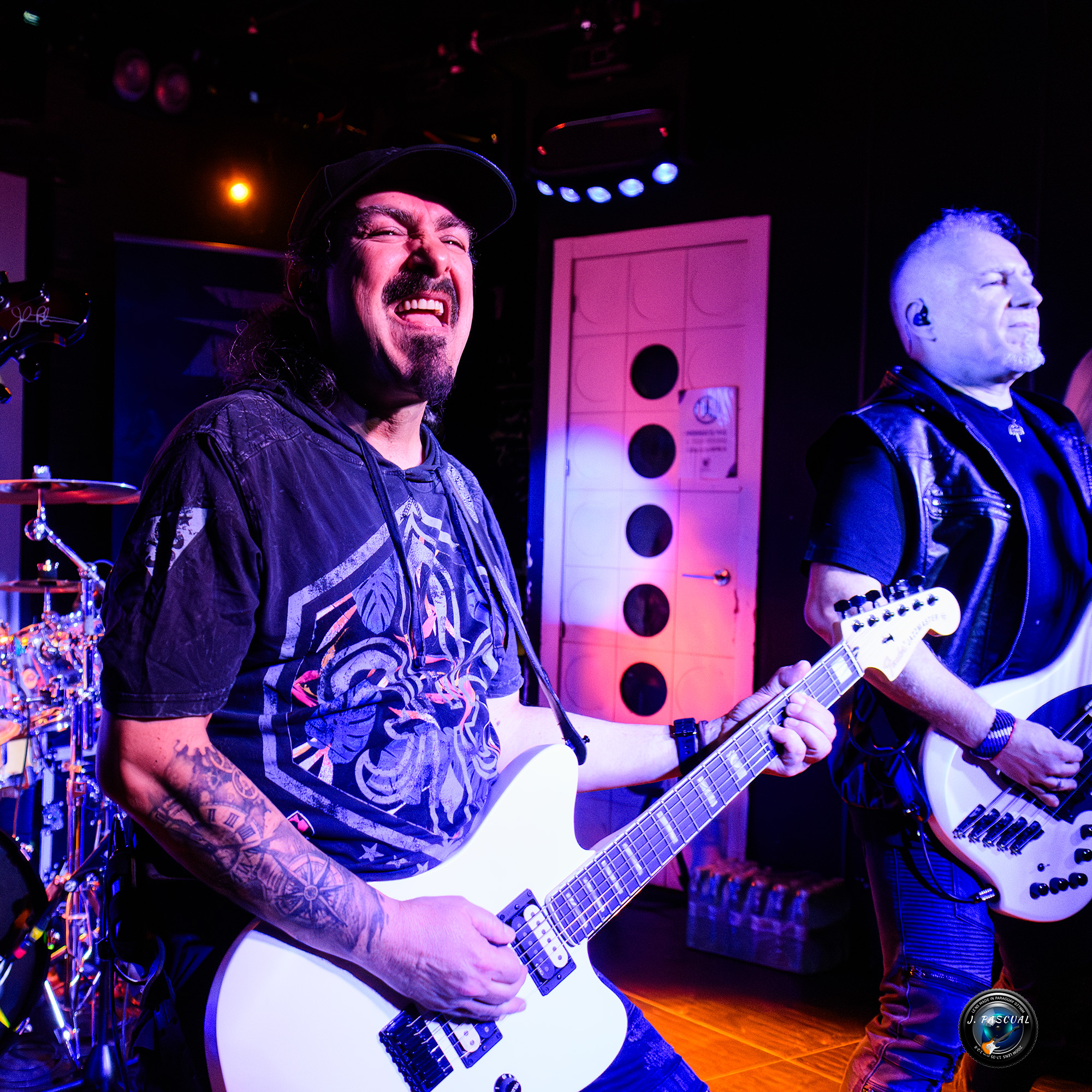 Los temas continuaban fluyendo ante una sala plenamente entregada y en sintonía con la banda con temas como «Tiempo» o «Seven» y una brutal «Babylon the great» en la que en el fragor de la batalla, Javi rompía una de sus cuerdas, teniendo que retirarse del escenario para cambiarla, mientras entre bromas y risas José a la par que reclamaba una cerveza, acabaría improvisando un pequeño solo de batería, mientras Javi regresaba al escenario, entre bromas de sus compañeros por la tardanza en afinar debido a la diferencia de calibre de la nueva cuerda, sin duda la anécdota de la noche, circunstancias del directo, que con buen humor fueron solucionadas para retomar nuevamente el ritmo con «The deal» y «Evilution»