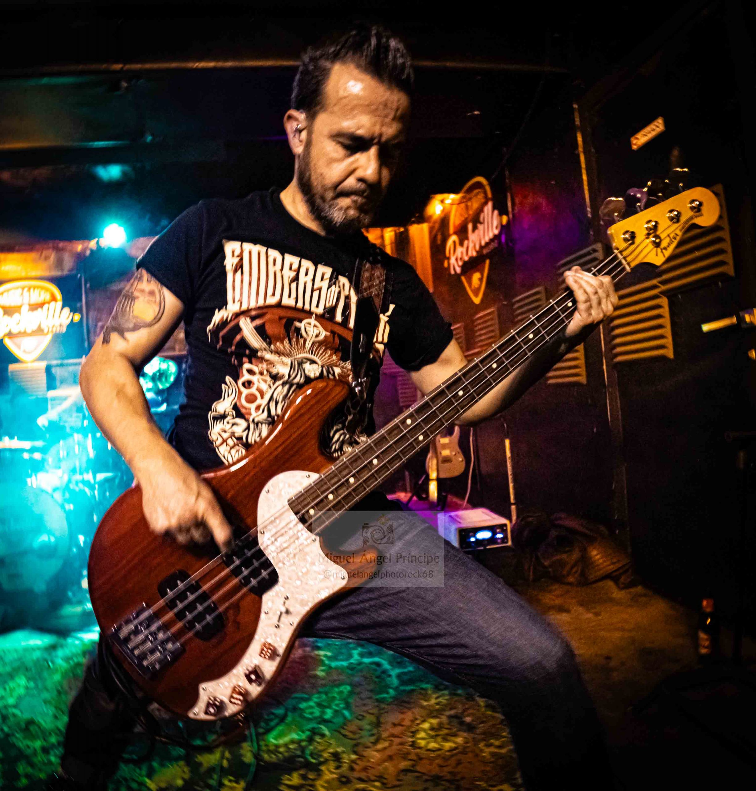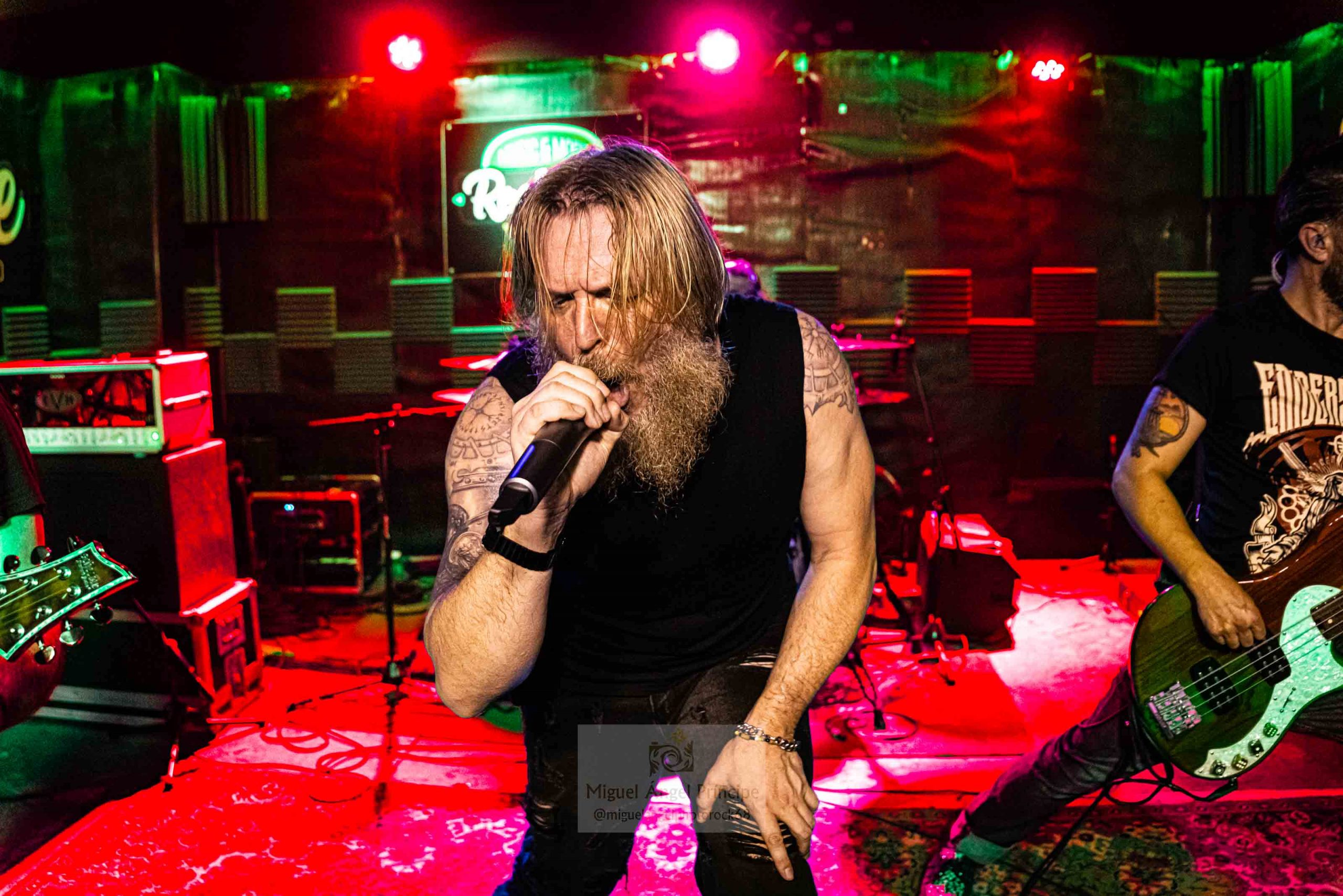 Alcanzándose ya el ecuador del directo y con una banda que se sintió en todo momento cómoda sobre el escenario, se ofreció una merecida mención a Sebas Arroyo quien recibió unos sentidos aplausos para dejar estos paso a otra andanada de tralla si cabe con más entrega de la mano de «Falso Hermano», un tema cargado de mensaje como suele ser costumbre en EMBERS OF PRIDE seguido por el incontestable clásico «To See Them Fall» donde la hermandad y unión de este grupo hizo acto de presencia, pues todos los instrumentos a una hicieron el juego nuevamente a Kiko quien demostró pulmón tanto en ésta como en la siguiente «Mi Medicación» antes de cerrar magistralmente un espectáculo in crescendo con la incontestable «Vida», inmersos los cuatro en ovaciones que Sebas compartió con ellos sobre la tarima.