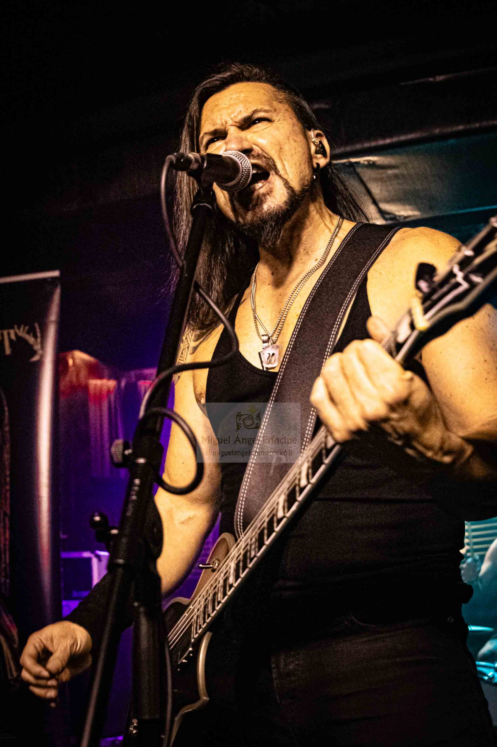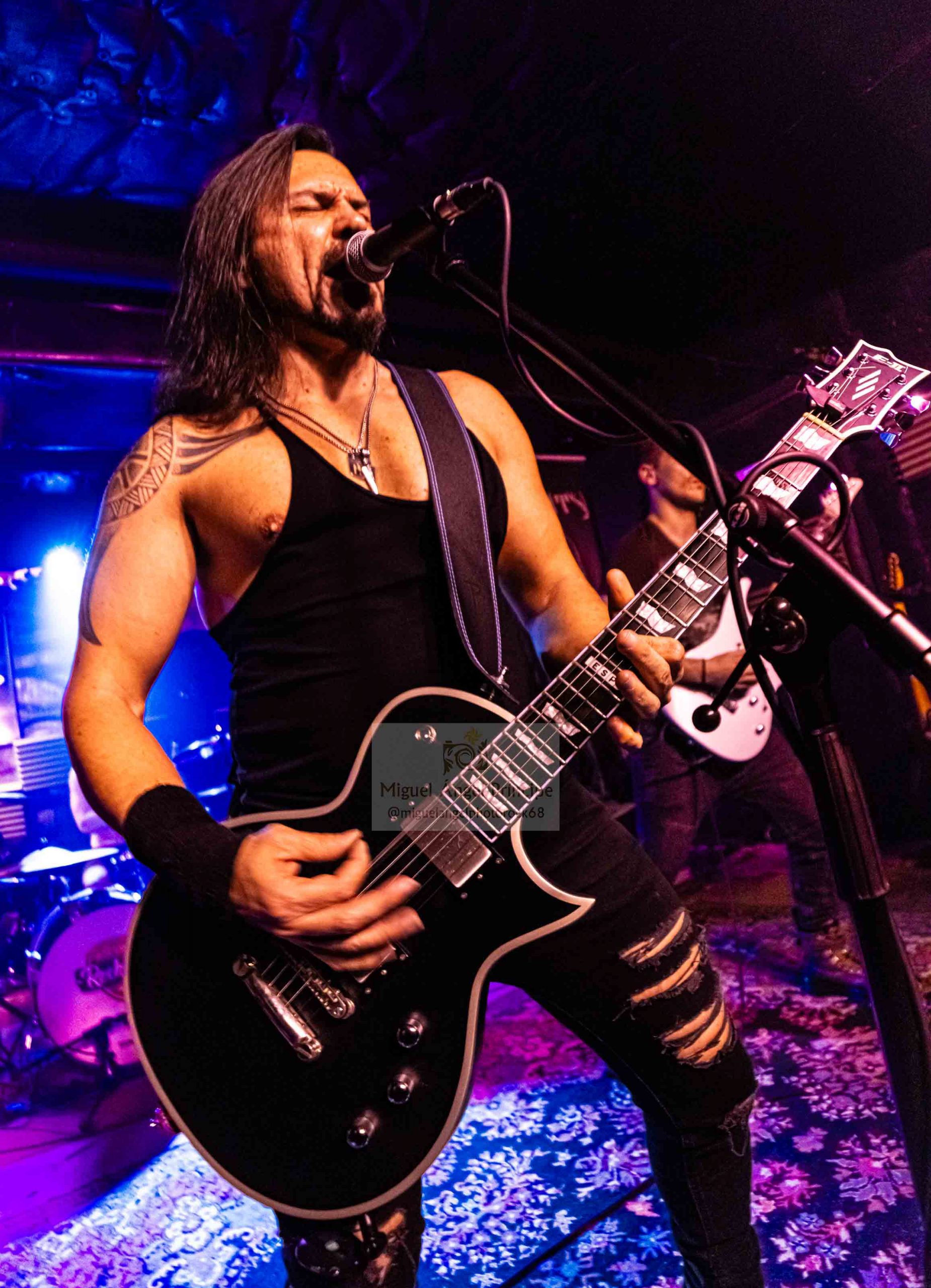 Sin preámbulos, el grupo siguió calentando la noche con «The Dream Is Over» en un remember a su primer redondo Disrupted Innocense (2021) y demostrando con ella que siempre ha sido adorador del sonido más internacional buscando en sus temas intensidad sonora muy propicia para los directos, ya que la brillantez de las seis cuerdas unida a la impoluta pegada a los parches en este caso por parte de Edu, se entrelazaron a la perfección con los geniales giros de un bajo totalmente fiel a la voz de Manu quien demostró gran soltura con registros poderosos e inalcanzables imprimiendo con su garganta una excepcional personalidad a las canciones y regalando un Revenge» tras un breve speech, que se desarrolló con una fuerza imparable y una tensión musical tan impresionante como certera.