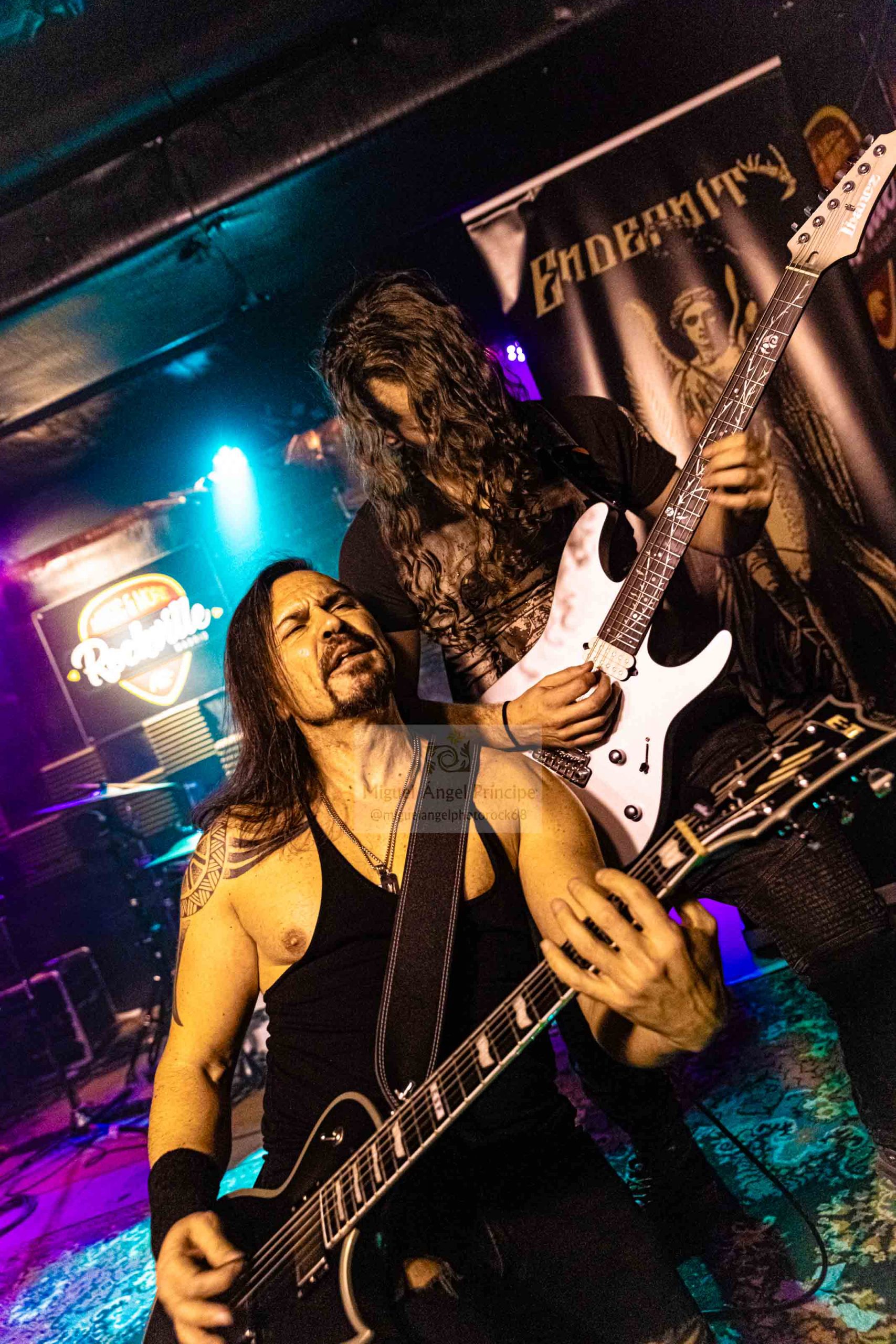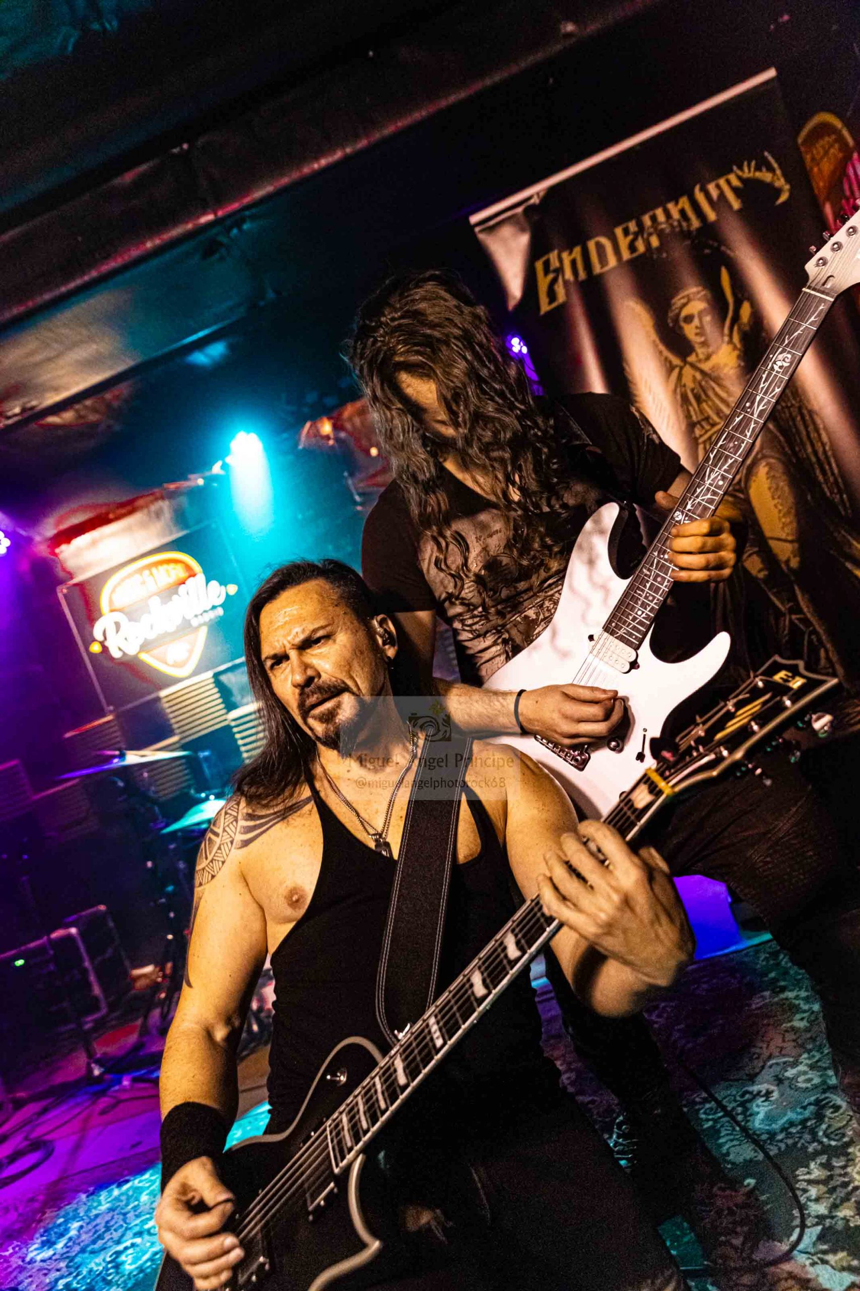 Si hay algo que especialmente sabe hacer bien ENDERNITY es mover a la gente, conseguir que los puños y los cuernos se pongan en alto e invitar a los siempre más entregados para que canten sus temas con poderosos «eh, eh, eh» entonando las composiciones que se despliegan como himnos siendo el caso de la tenebrosa a la par que pegadiza «Ignorance Celebration», arropada ésta por las excepcionales guitarras tanto en riffs como en rítmicos aderezadas por la versátil voz de Manu o la rápida «Infinite Hell» de imparable comienzo baquetero en binomio perfecto con ambas seis cuerdas dando una impresionante agilidad al directo con parada en seco cuando la voz irrumpe en el tema, una delicia en cuanto a cambio de tiempo que fue gestionada con crudeza y sin margen al descanso dando el grupo una lección de solidez y empaste instrumental arrastrado también éste a la salvaje «You Won’t Bring Me Down» o a la sobrecogedora «I Dream That I Can Fly», donde se pudo disfrutar de una desgarradora balada con caña metalera marca de la casa.