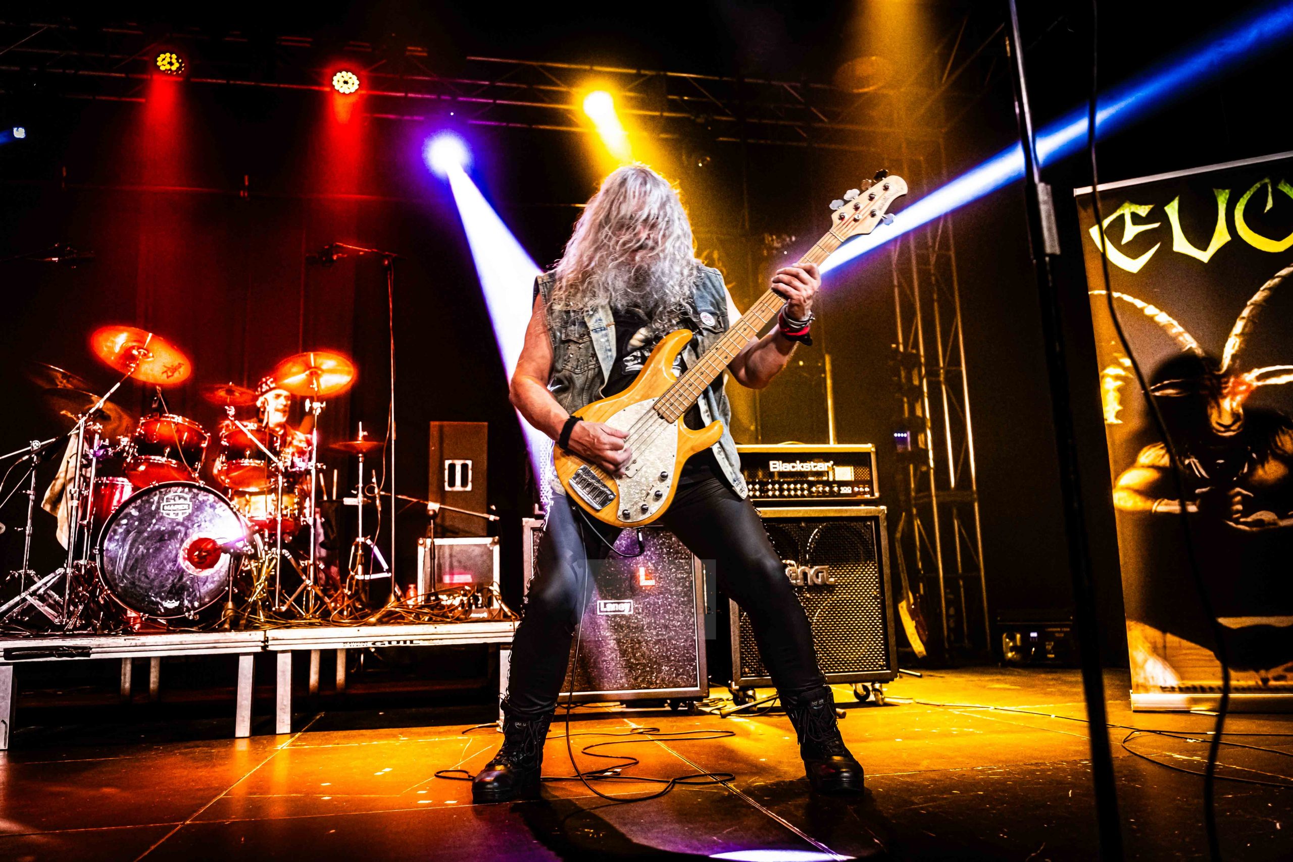 Tras un descanso entre grupo y grupo que siempre propicia un momento para intercambiar impresiones, saludos y afecto entre los asistentes quienes comentando la poderosa descarga que acabábamos de contemplar se preparaban para lo que estaba por llegar con tiempo incluso para conocer de cerca a los músicos de CARESS ya fuera del escenario, llegaba el momento viendo los rápidos y precisos cambios del backline que se estaban llevando a cabo sobre la tarima de la siguiente actuación a cargo de EVO la cual tras su anuncio, había despertado una gran y merecida expectación.
