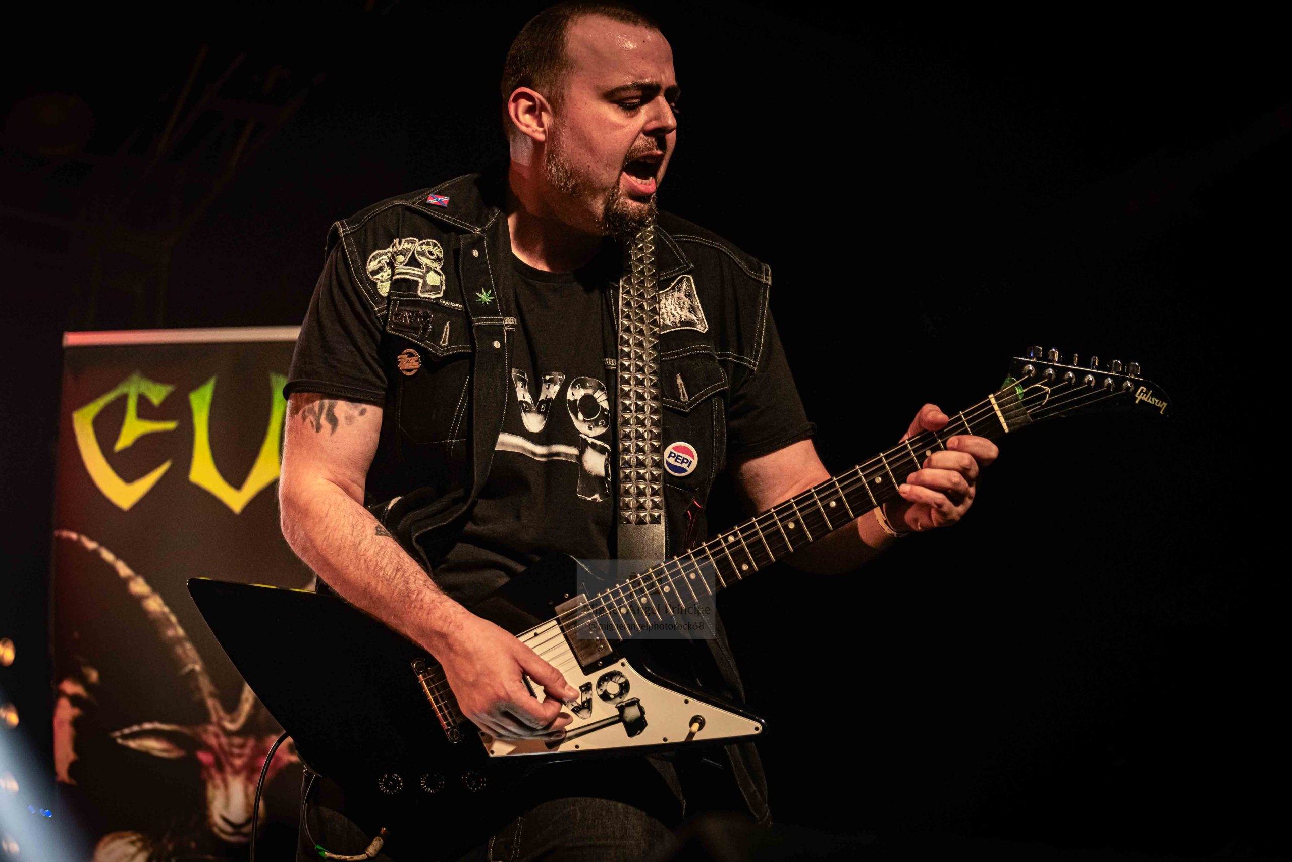 Unos EVO muy en forma con actitud, presencia, empaque y un brutal sonido pisaron fuerte la tarima con un amplísimo repertorio de nada más y nada menos que dieciocho temas donde tras la inicial post-intro seguida por «Chica Sexy», un aclamado «Rock And Roll Barcelona» puso sobre la mesa su identificable Speed Metal muy identitario de la época el cual aunque renovado mostró toda la esencia con la cual la canción fue concebida, desatando ésta una auténtica locura entre todos los allí presentes que la cantaron de principio a fin manos en alto manifestando el público la incondicionalidad con el grupo.