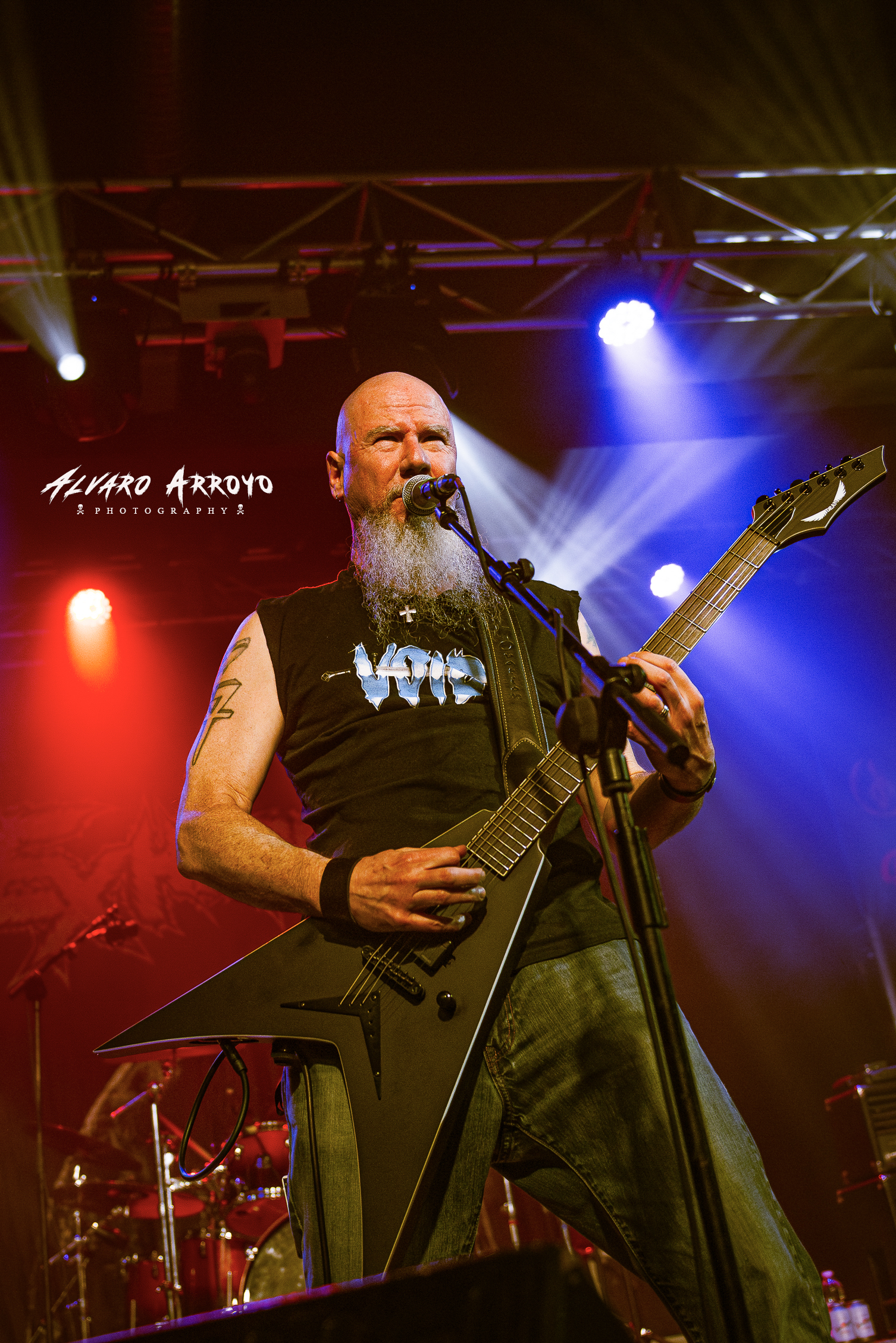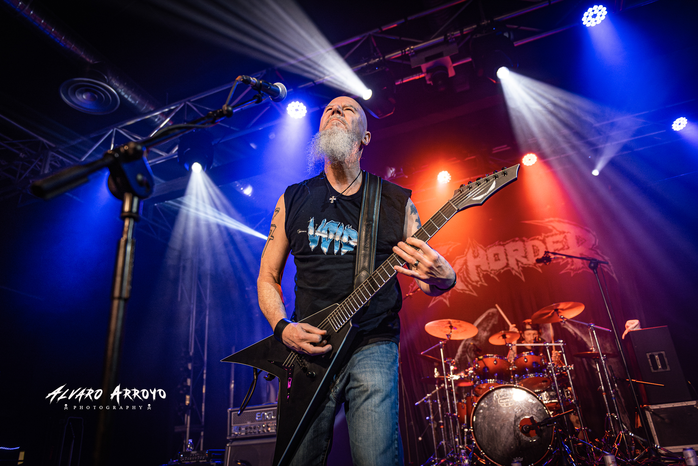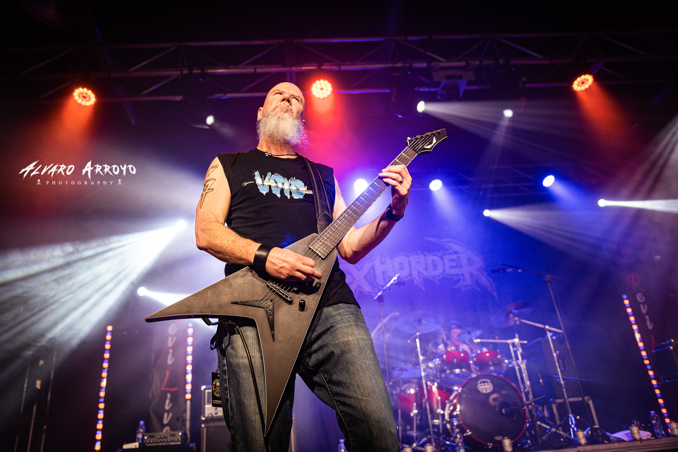 De todas las citas musicales que un cargado fin de semana previo a Semana Santa nos dejaba en Madrid, la del domingo en Revi Live a cargo de los thrashers originarios de Nueva Orleans EXHORDER, probablemente era mi preferida de todas. Del quinteto formado en la segunda mitad de los ochenta y que a principios de los noventa nos regaló dos revolucionarios LPs como “Slaughter in the Vatican” y “The Law”, claves para entender la evolución del Heavy Metal clásico a derroteros más extremos en la última década del milenio —y fuente de la que bebieron monstruos del Groove Metal como PANTERA o CROWBAR—, sólo queda, tras su vuelta a la actualidad discográfica en 2019 con “Mourn The Southern Skies” después de prácticamente tres décadas de silencio e intentos de reunión fallidos, su líder y vocalista Kyle Thomas, quien se basta y se sobra tras la salida de la banda del guitarra fundador Vinnie LaBelle, para reclamar sobre el escenario con una inusitada energía el legado de estos auténticos pioneros, reagrupados en formato de cuarteto, y con una nueva obra (“Defectum Omnium”) repleta de buenos momentos que defender sobre los escenarios europeos.