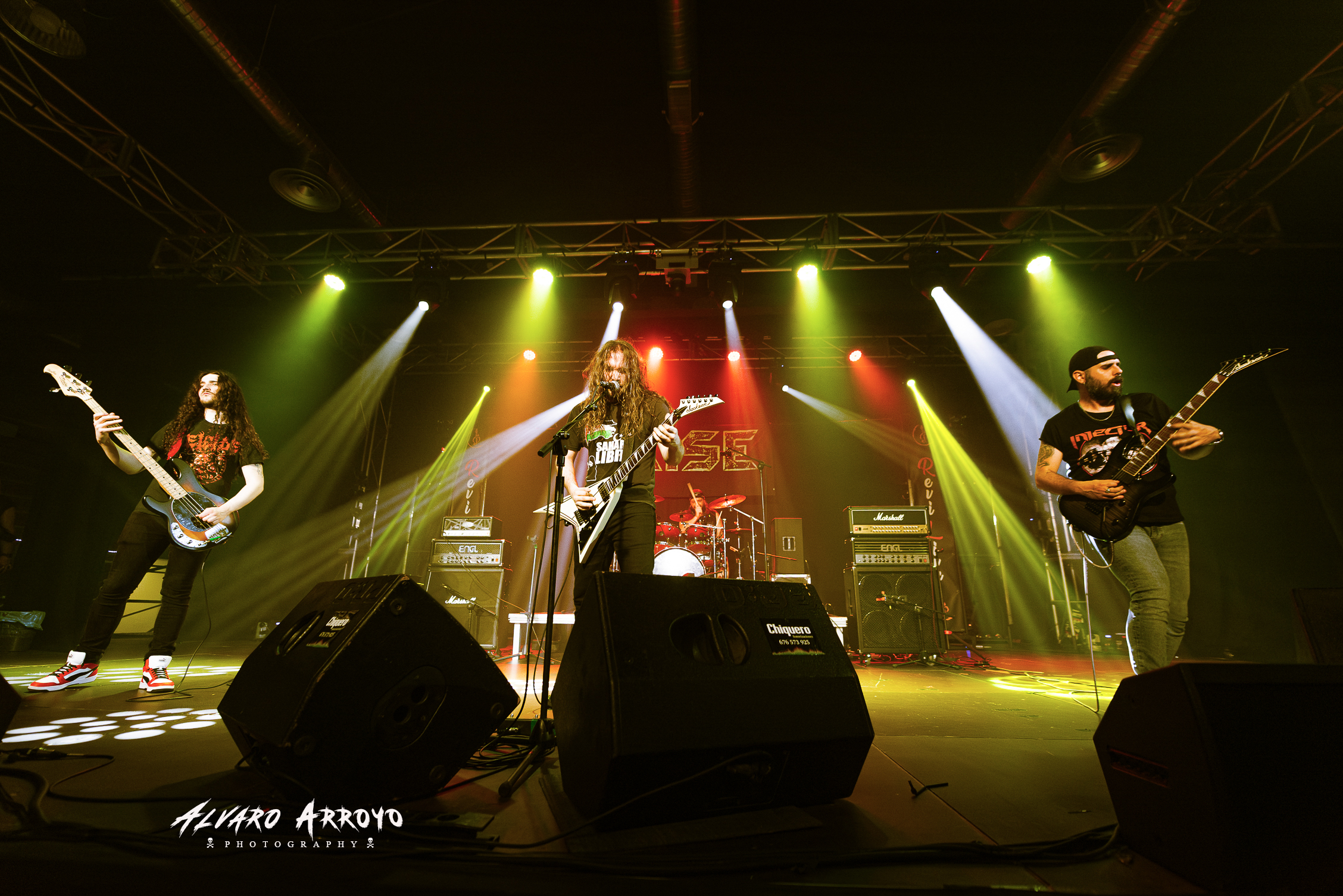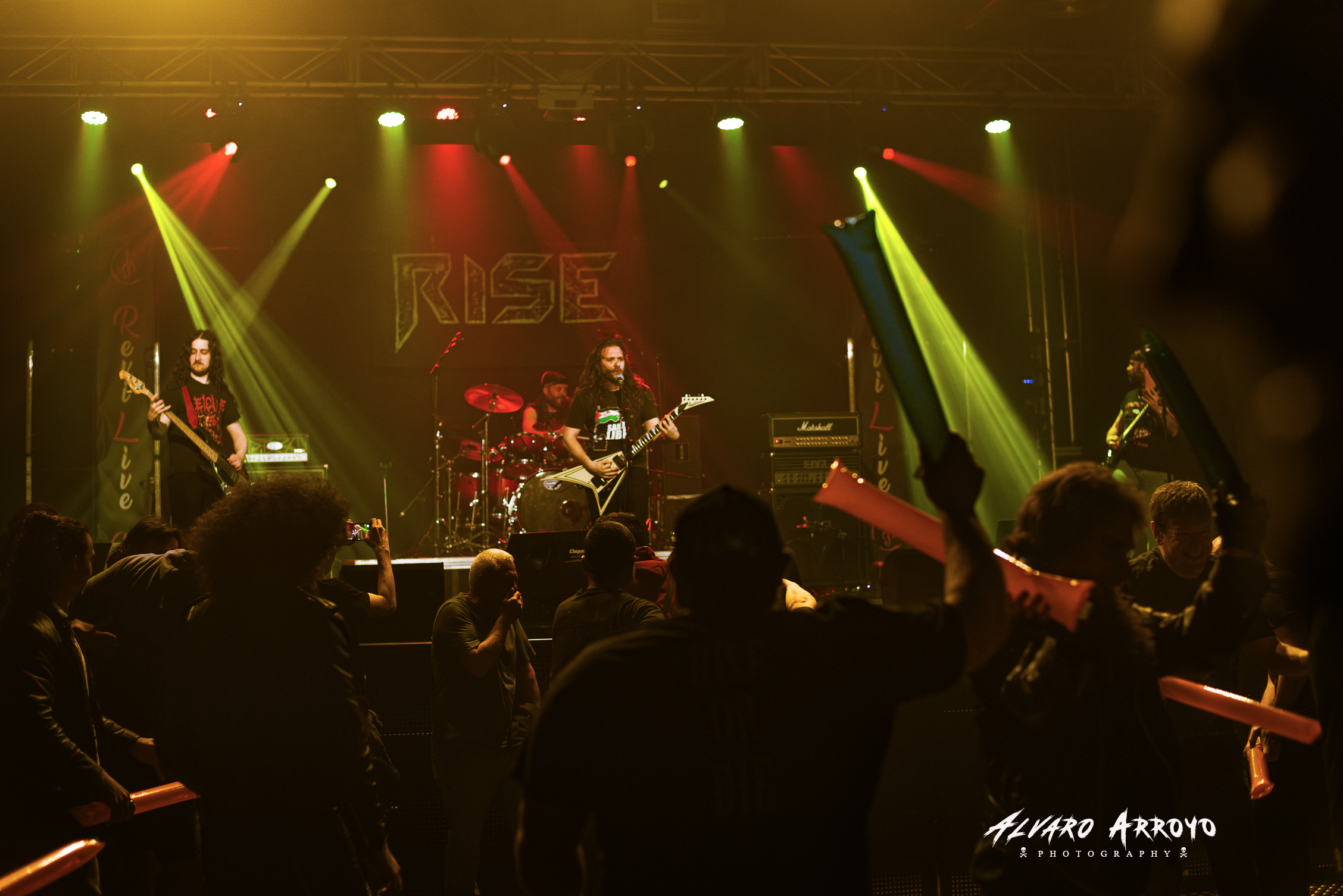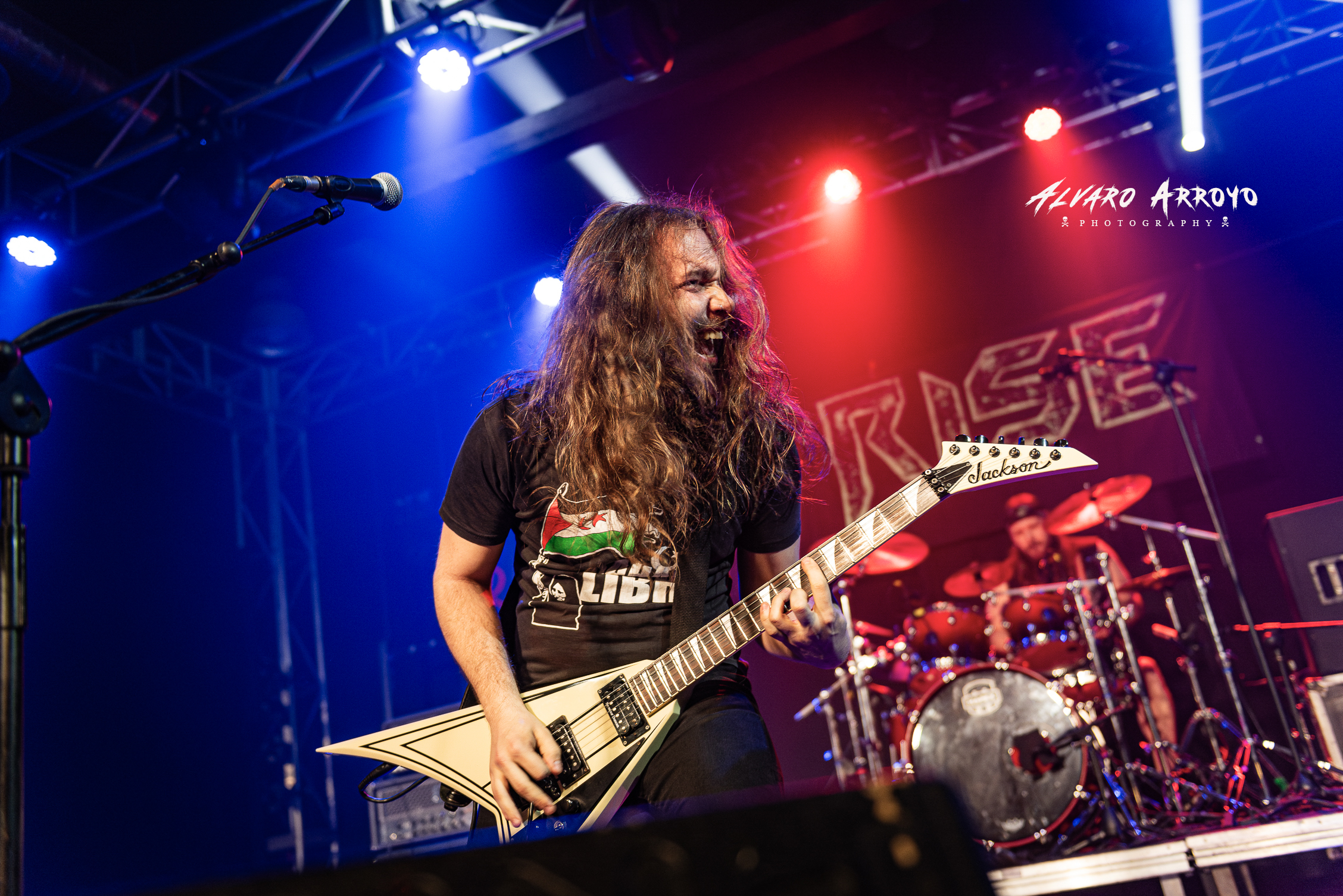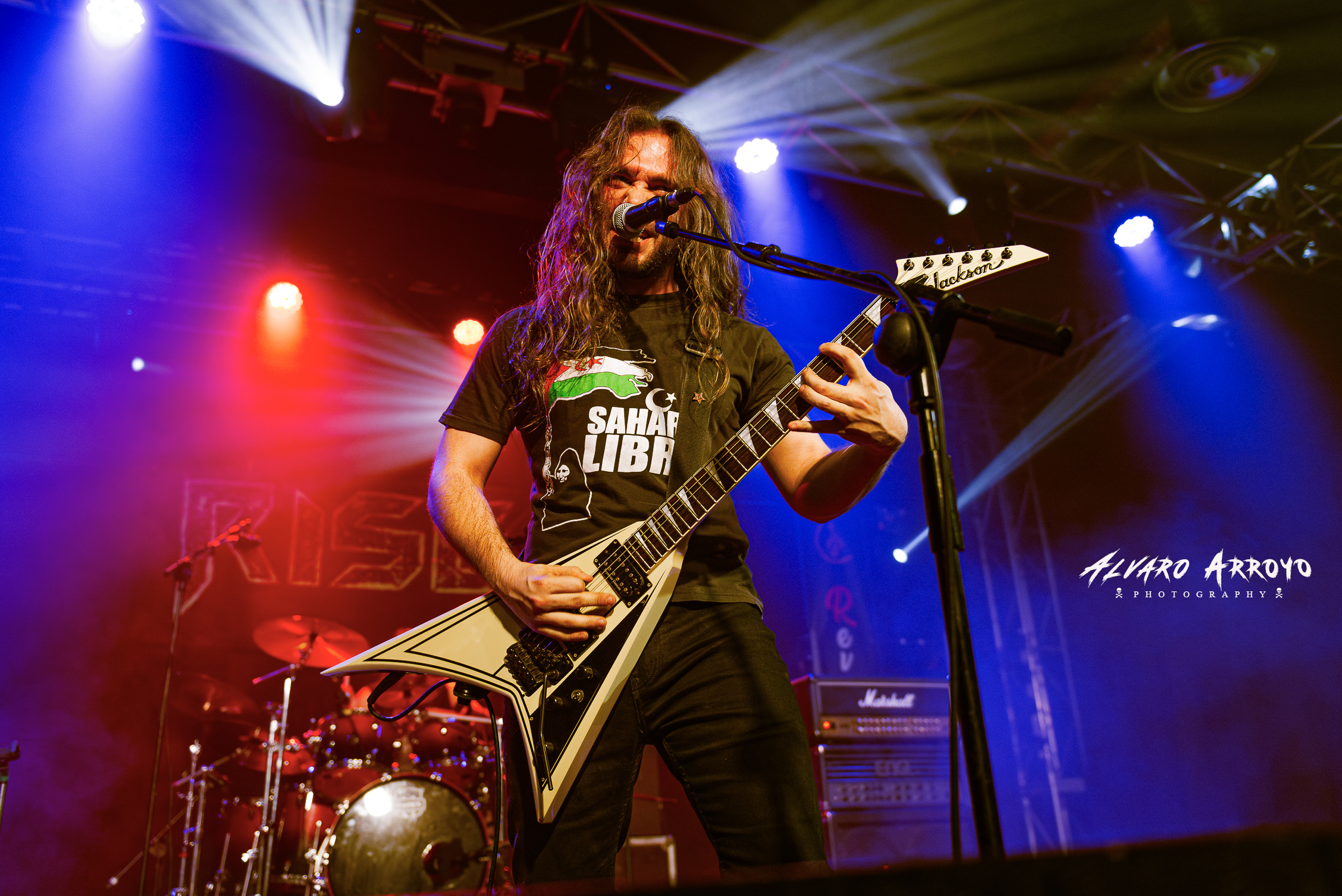 El tirón de las huestes de Kyle Thomas para esta su primera visita a nuestro país como cabezas de cartel era evidente desde el momento de la apertura, con grupos de personas en las afueras apurando su entrada a la sala, alcanzando finalmente entorno a los 200 seguidores, ante los que se presentaría el cuarteto de Hortaleza RISE a la hora prevista, quienes con la “Intro” de su segunda y reciente obra “Breathing Again” saltarían al escenario de la Revi Live sin ningún tipo de complejo, para dejar patente desde la inicial “M.O.P.K.” que su inclusión en el cartel de hoy sería todo un acierto, con un Thrash Metal muy intenso y cañero, con las guitarras de su vocalista Iván Sánchez y de Raúl Solís compartiendo abrasadores solos en onda MEGADETH en temas como “Unchained Souls” y la potente basé rítmica a cargo de Aitor Sánchez a los tambores y Andrés Gordo al bajo marcando el paso de forma efectiva en “I´m the Light”, sonando la banda muy potente y conjuntada, con unas letras de alto contenido social en su mayoría y otras dedicadas a personajes históricos (“Garbo”), para conectar rápidamente su propuesta con los gustos de los presentes.