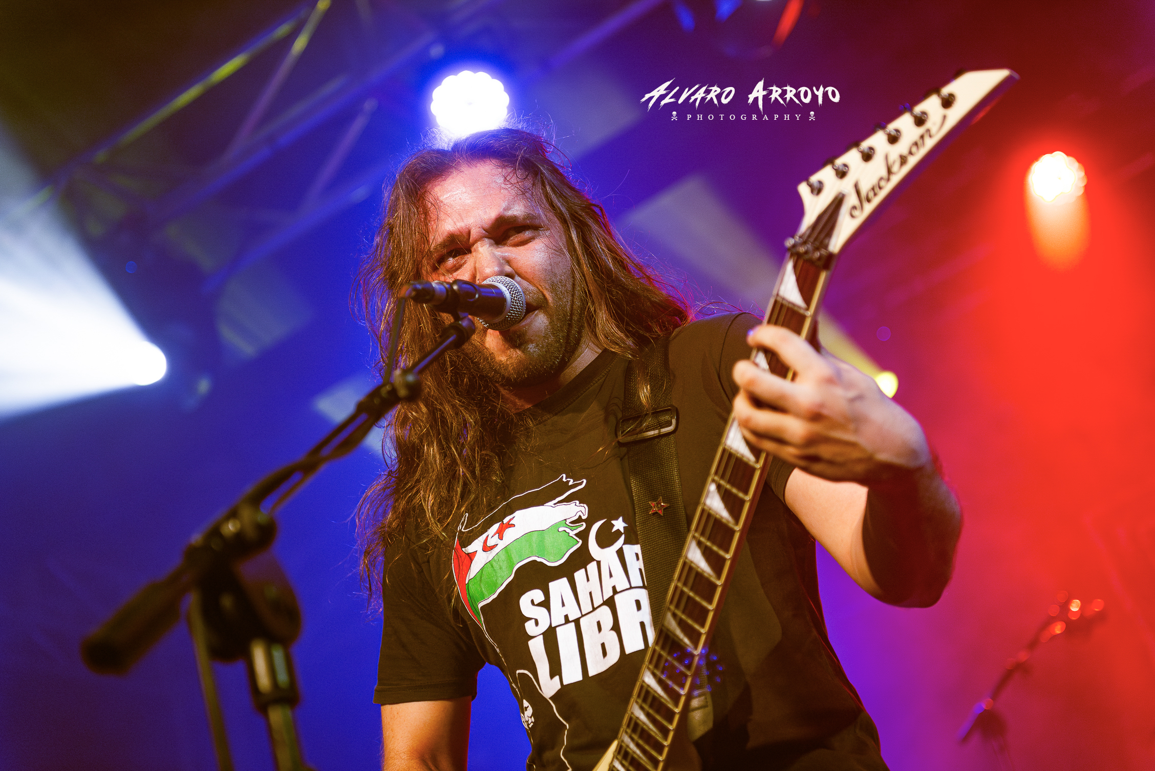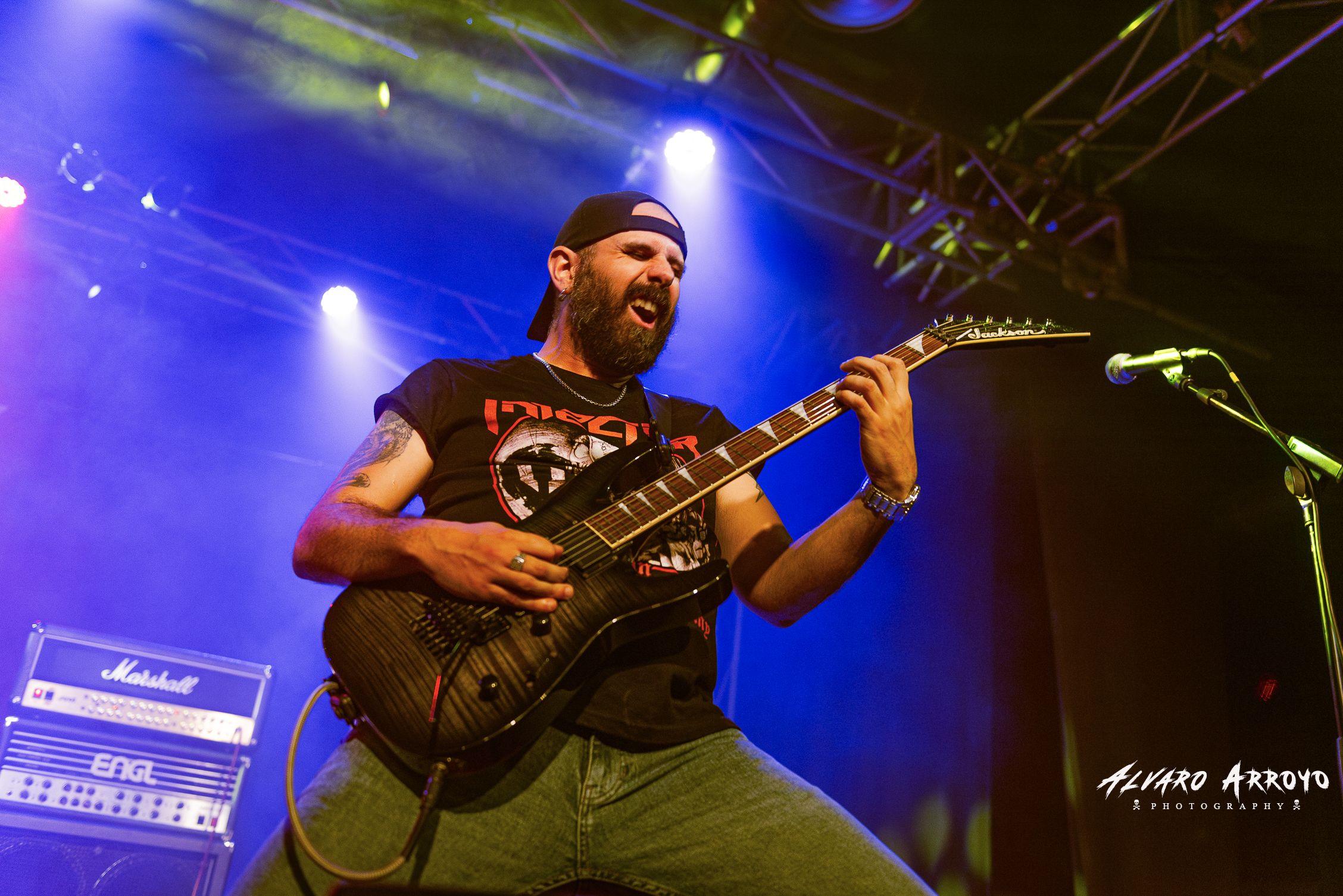La única bala de “Mourn The Southern Skies” sería el ataque Thrash de la vieja escuela de “My Time” y su potente estribillo melódico, antes de retornar a su última obra con los ritmos vibrantes y riffs pesados en perfecta conjunción de “Forever and Beyond Despair”, donde nuevamente Pat O´Brien nos regalaría uno de lo mejores solos de la noche, dejando claro que está de vuelta tras sus problemas con la justicia del pasado. La influencia de Mr. Tony Iommi y los padres del invento se manifestaría en una excelsa revisión del clásico de BLACK SABBATH “Into the Void”, debidamente pasada por el filtro de EXHORDER, antes de que Thomas nos avanzara el último tema de los más recientes pidiendo al público acción con una afilada y pegadiza “Divide and Conquer”.