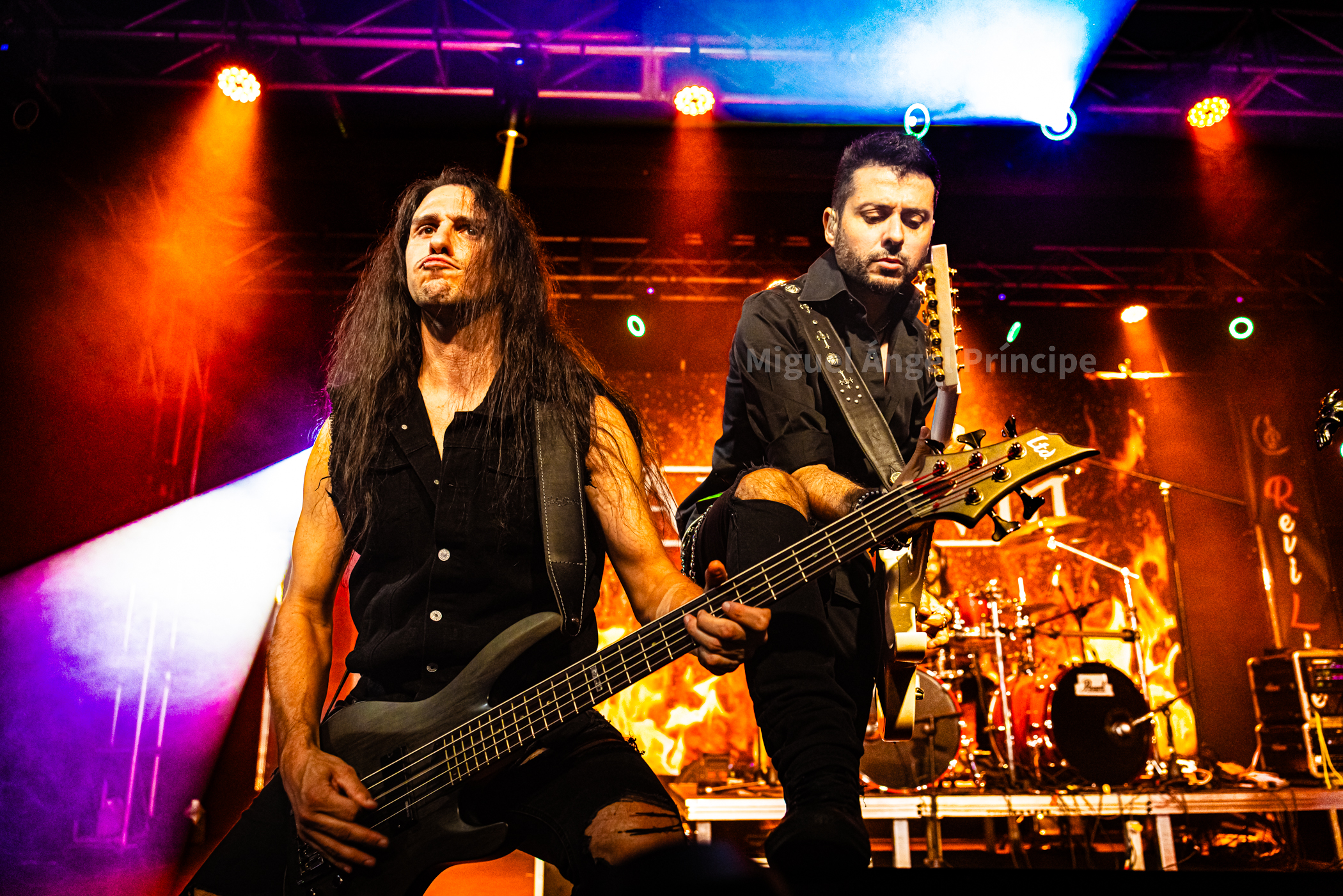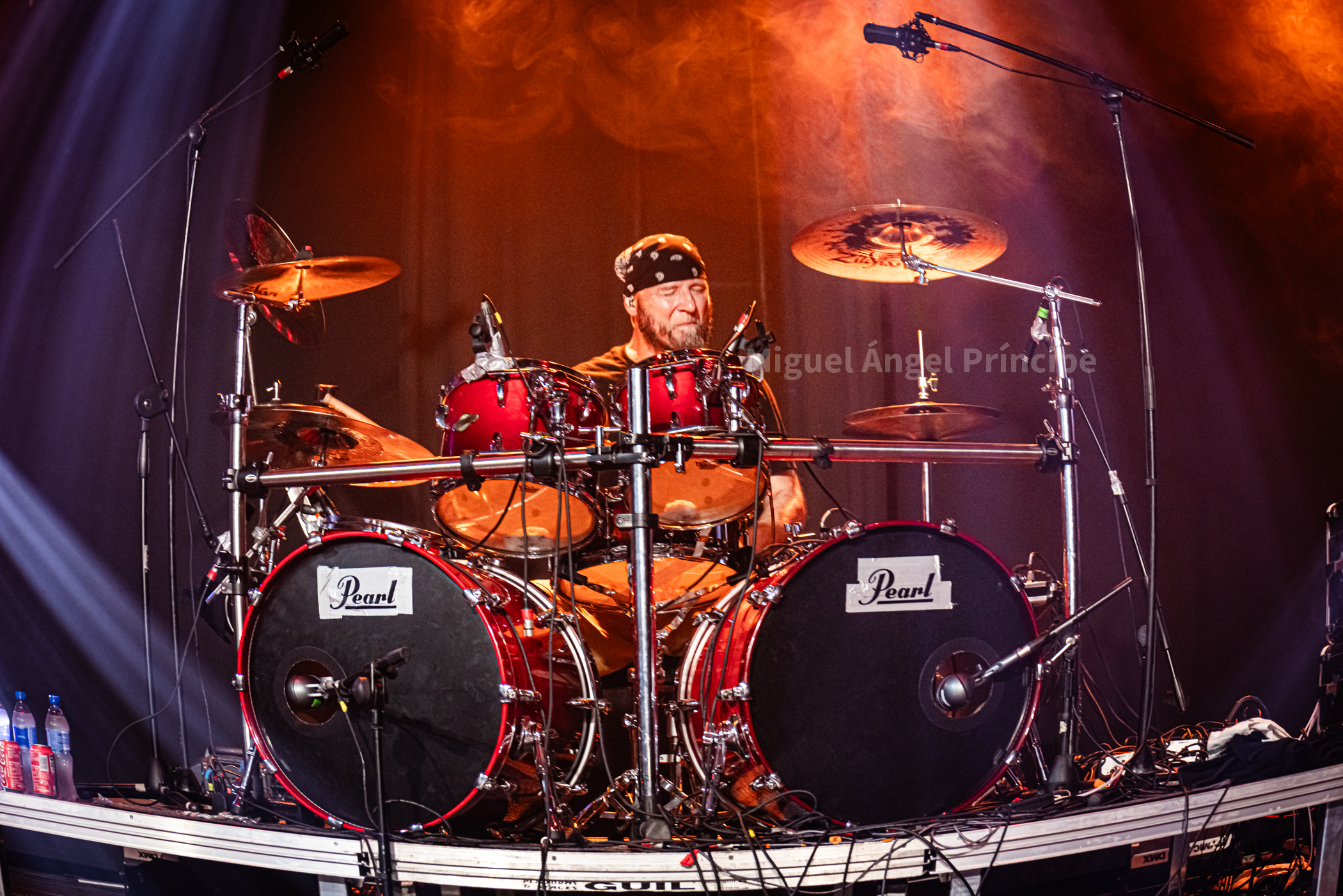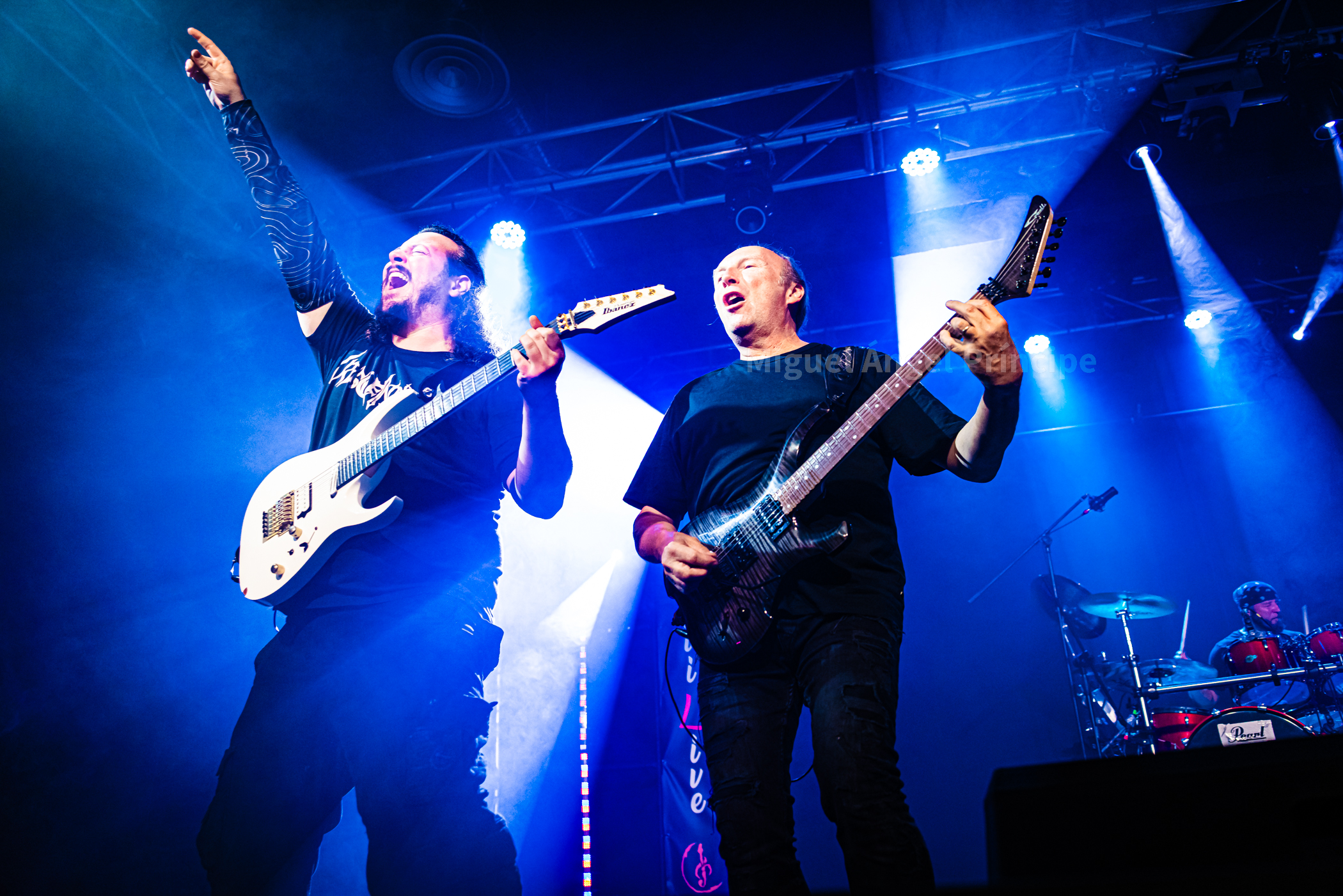 Con «Drag Me To Hell» comenzó la romería donde ya detectamos partes grabadas tanto en coros como en bases y sintetizadores como tónica general del show sin desmerecer esto la actuación, pues las piezas se fueron sucediendo de forma implacable con «Sirens Call» que pudo presumir de ser un bordado medio tiempo con unas percusiones punteras e imprescindibles o «Crossroads Inn» con ambas seis cuerdas tan nítidas como brillantes repletas de ritmos y riffs aplicados también a otras con la misma carga optimista de la talla de «Firebringer», «Shadowsong» de trazas más endurecidas cercanas al Metal más ortodoxo o la homónima al disco «Of War And Flames», pudiendo observar la banda desde la tarima que aún siendo la primera vez que pisaba con varias fechas nuestro país la devoción de la gente estaba siendo absoluta.