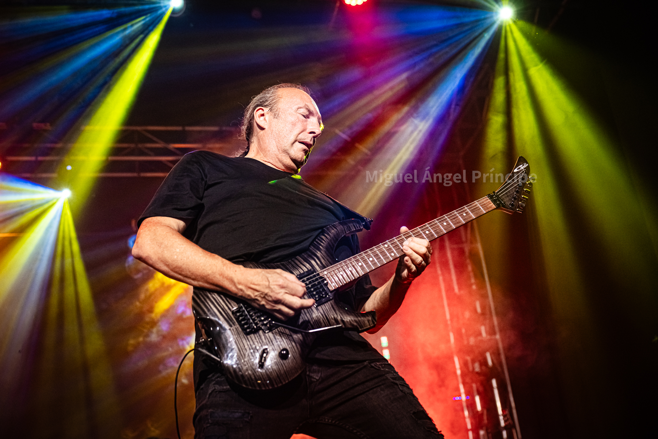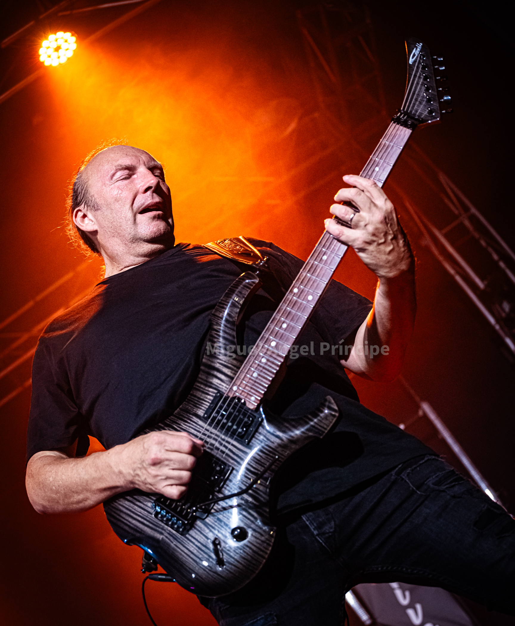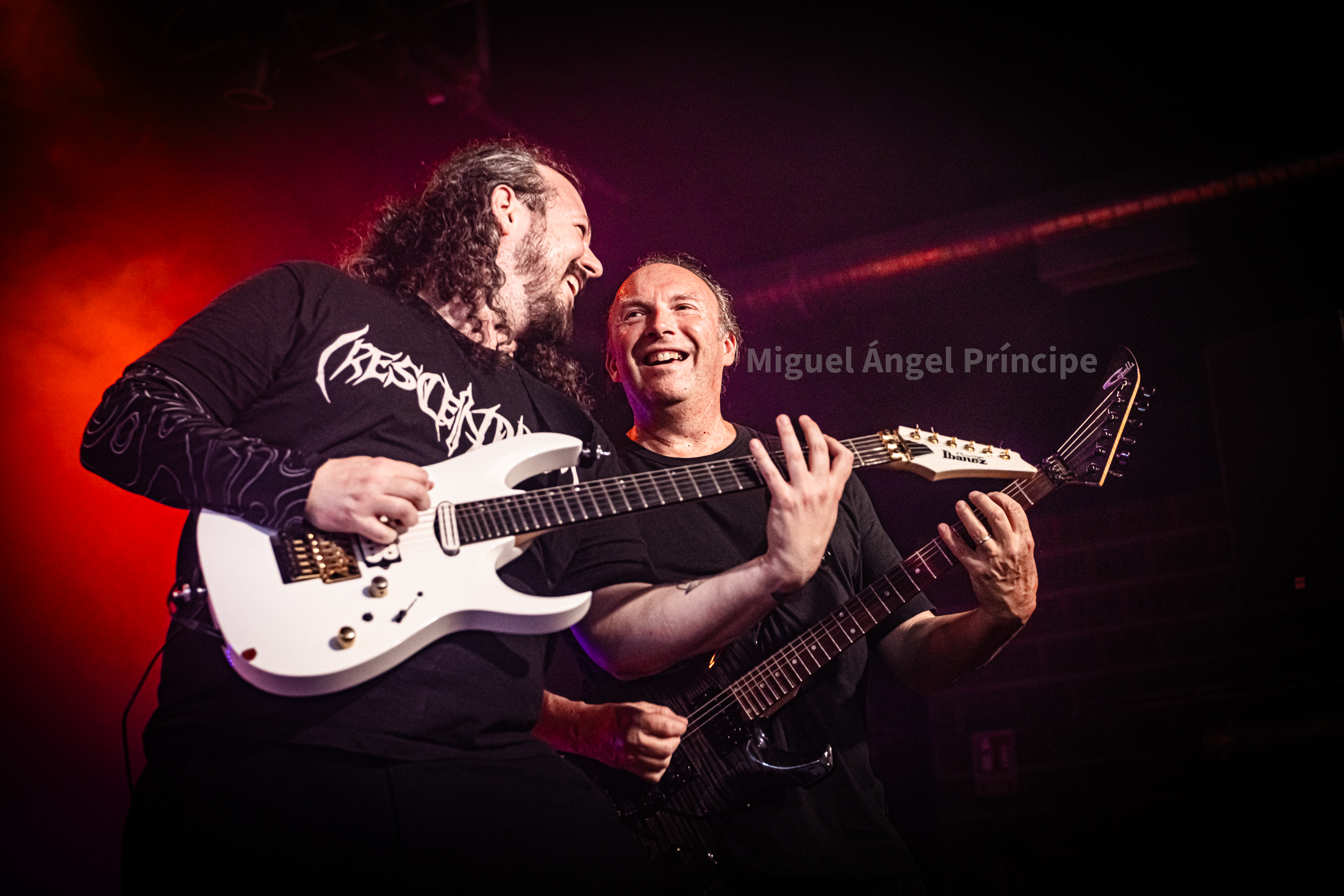 Con «Drag Me To Hell» comenzó la romería donde ya detectamos partes grabadas tanto en coros como en bases y sintetizadores como tónica general del show sin desmerecer esto la actuación, pues las piezas se fueron sucediendo de forma implacable con «Sirens Call» que pudo presumir de ser un bordado medio tiempo con unas percusiones punteras e imprescindibles o «Crossroads Inn» con ambas seis cuerdas tan nítidas como brillantes repletas de ritmos y riffs aplicados también a otras con la misma carga optimista de la talla de «Firebringer», «Shadowsong» de trazas más endurecidas cercanas al Metal más ortodoxo o la homónima al disco «Of War And Flames», pudiendo observar la banda desde la tarima que aún siendo la primera vez que pisaba con varias fechas nuestro país la devoción de la gente estaba siendo absoluta.