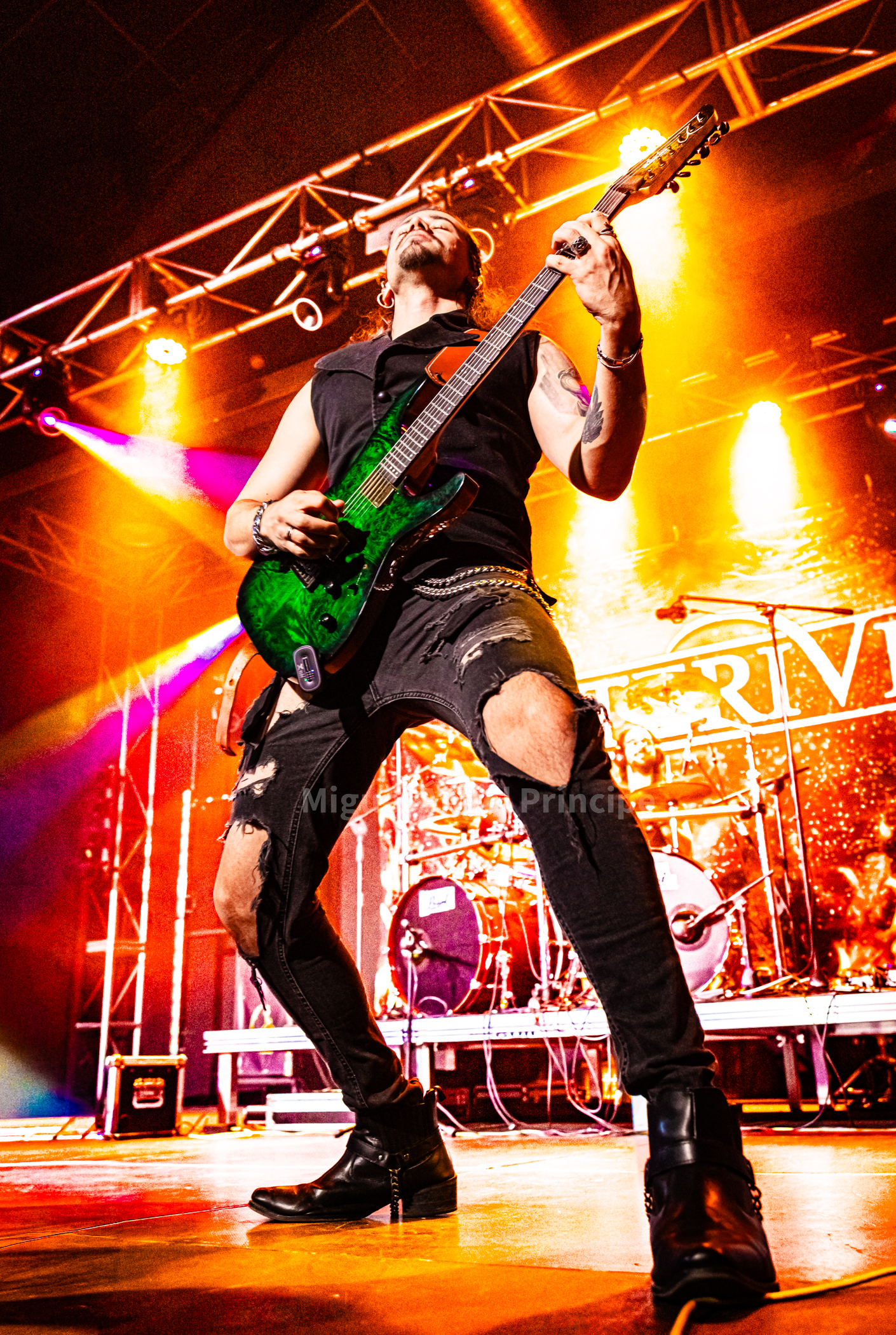 Dominique Leurquin junto con Justin Hombach a las guitarras, Alex Holzwarth a la batería, Patrice Guers al bajo y el carismático vocalista Fabio Lione liderando este quinteto de jinetes del Symphonic Epic Metal, saltaron al escenario de la Sala Revi Live dispuestos a poner color a la noche ofreciendo optimismo no sólo musical sino también en cuanto a empatía y conexión con la gente se refiere, regalando estos colosos italianos ya desde el comienzo una actitud de victoria y alegría que irradiaron hacia la feligresía contagiando así a ésta que respondió devolviendo el feedback con creces nada más arrancar tras la Intro la descarga con «Dawn Of Victory», consolidando con este tema el combo desde el inicio tanto la valía como la validez de la banda al recordar con nombre propio sus aclamadas raíces.