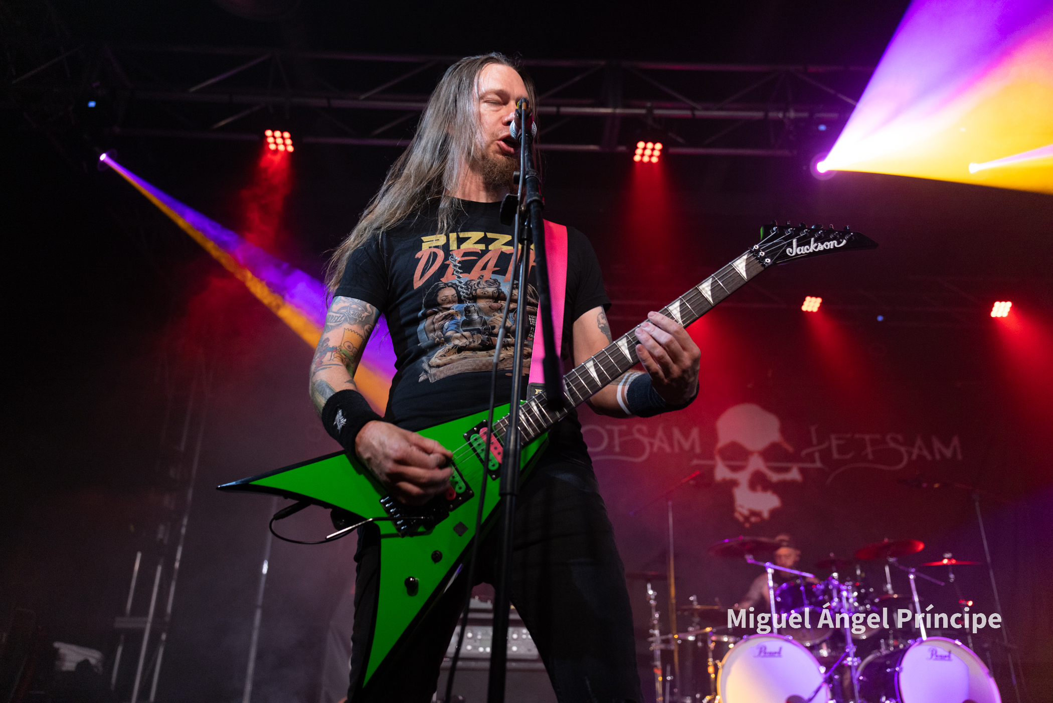 FLOTSAM AND JETSAM desde Arizona y presentando por «El Viejo Continente» en la gira I Am The Weapon Summer Tour 2025 el disco que da nombre a ésta podemos decir que deslumbraron y nos quedaríamos cortos para describir el espectáculo de sonido, luz e imbatible actitud que ofreció la banda ante unos fans totalmente predispuestos para afrontar un concierto único en el que pudimos comprobar que los de Phoenix, han vendido sin duda su alma al diablo pretendiendo en lo que fue un directo memorable que los demás hiciésemos lo mismo para acompañarles en la eternidad.