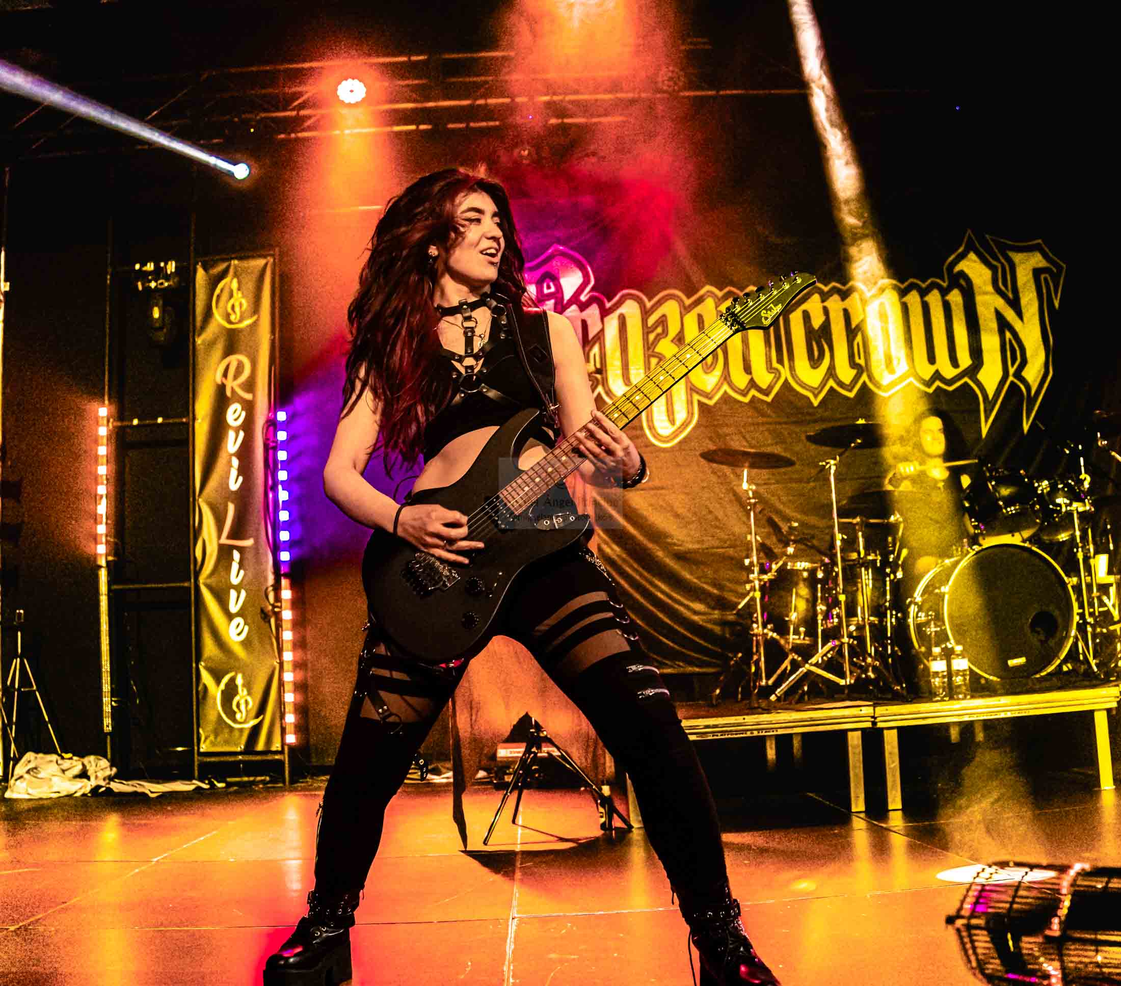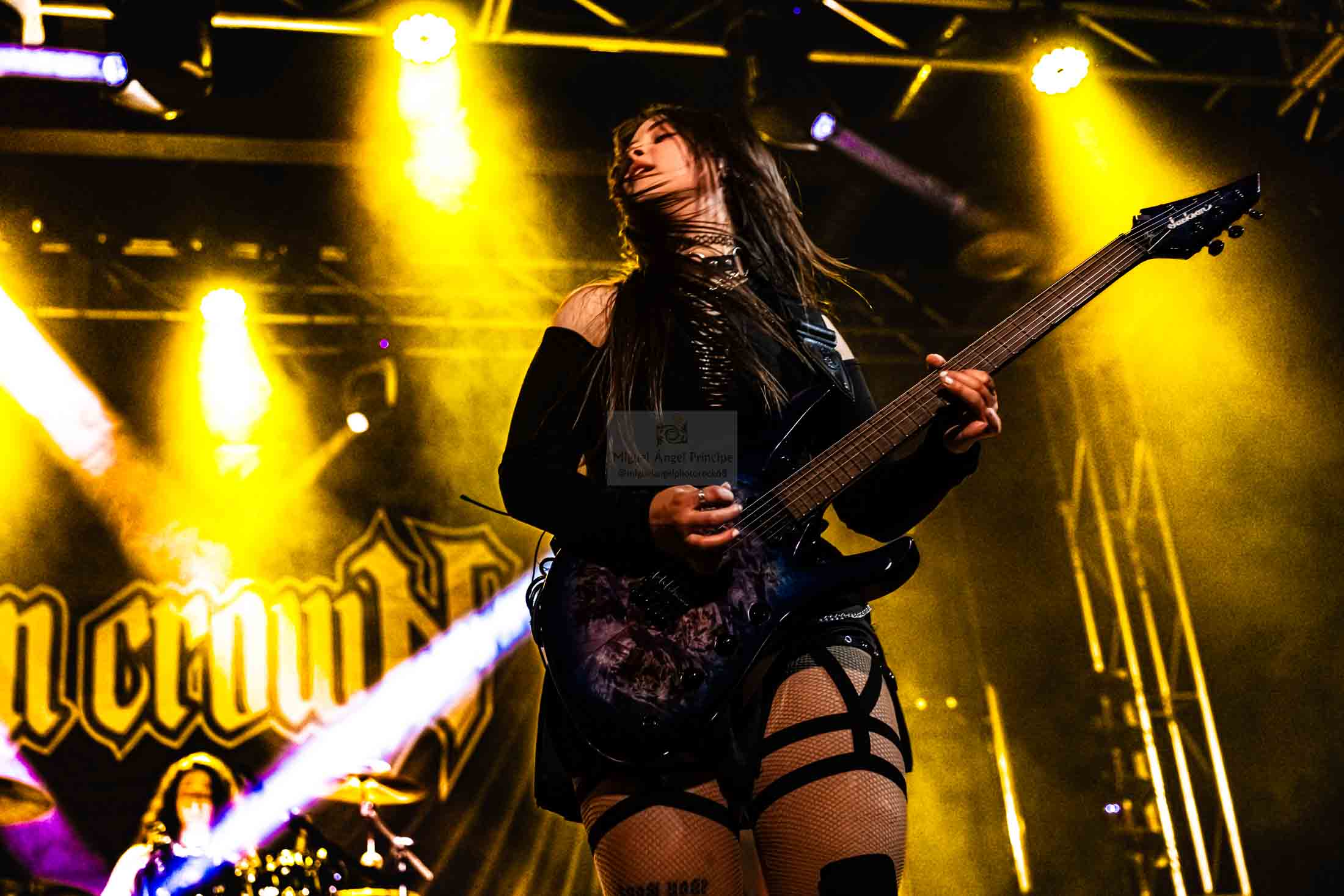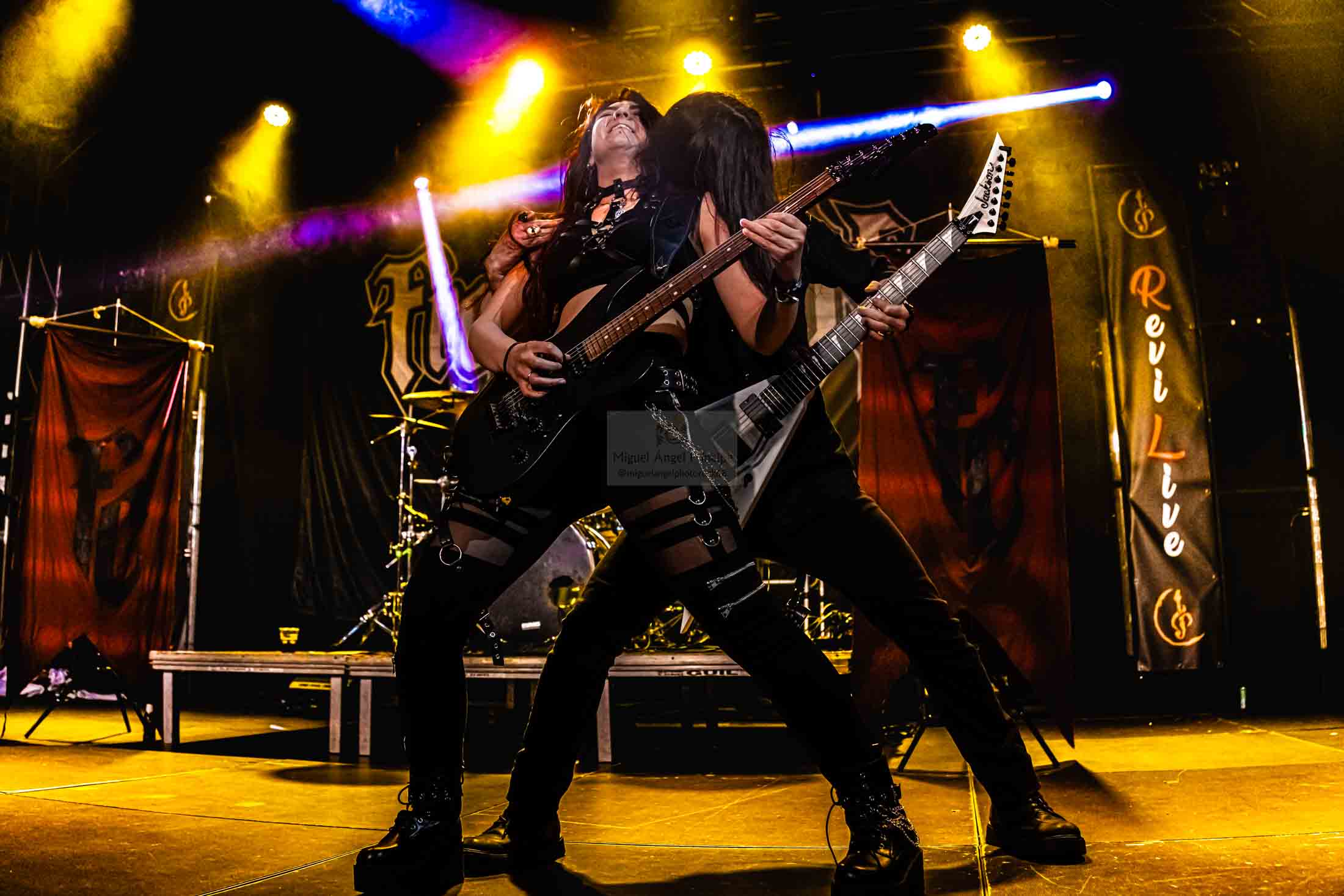 La expectación llegó a su punto álgido con la aparición en el escenario de FROZEN CROWN, una formación italiana ya consolidada como una de las referencias del Power Metal Melódico actual que no defraudó pues ya desde el primer acorde de «Call Of The North» con la energía desbordante de Giada «Jade» Etro y Federico Mondelli, se contagió toda la sala gracias a la innegable química entre ambos complementándose sus voces a la perfección para crearse una dinámica escénica muy atractiva.