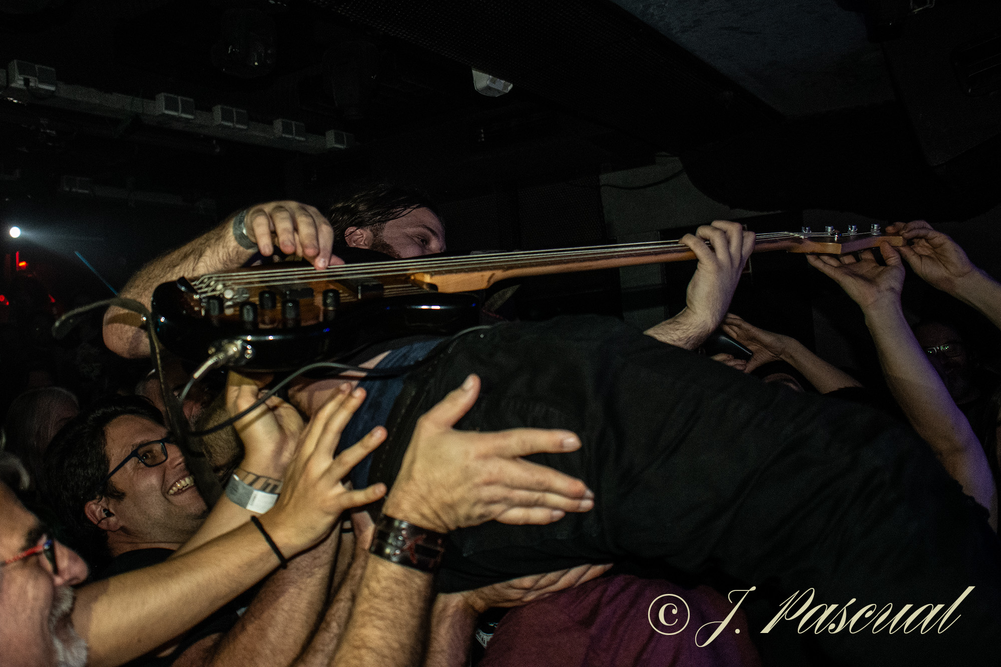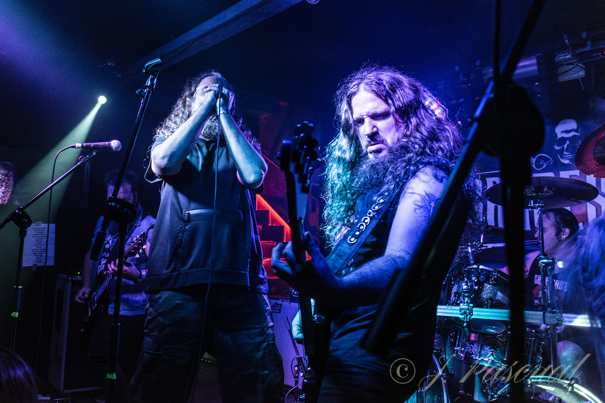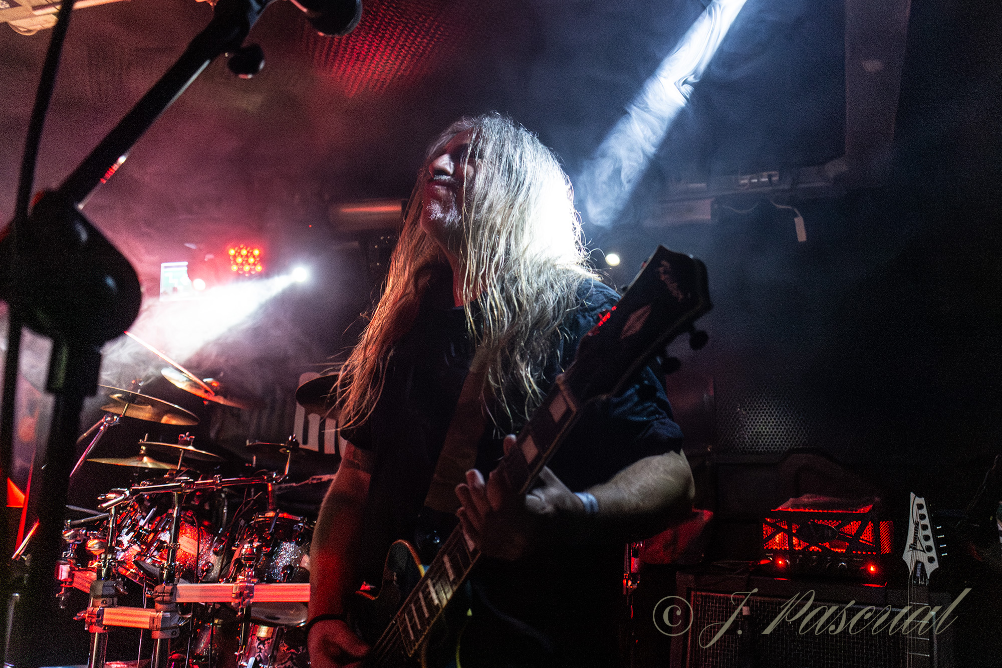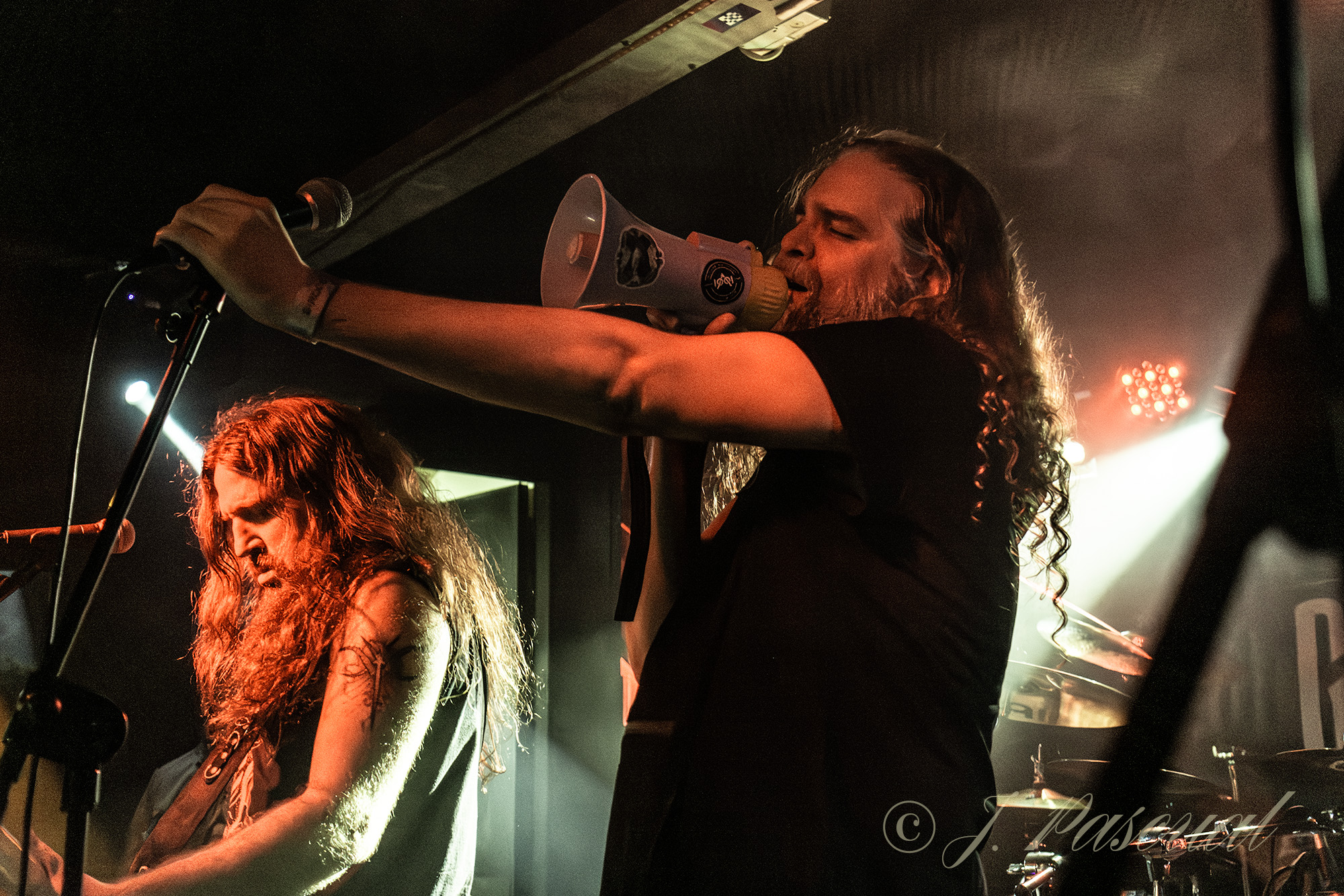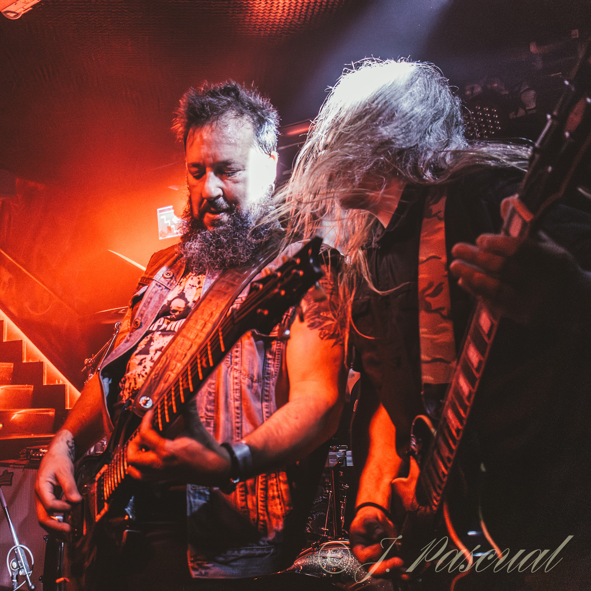 «We’ll Return» subía al escenario a un nuevo invitado Txus Borao violinista de Celtian, que abandonaba los sonidos celtas, para poner las cuerdas de su violín al servicio del Stoner más oscuro, a la par que Esteban cambiaba su pie de micro habitual por uno en forma de fusil. una invitación a un chupito de licor, para los integrantes de las primeras filas propiciaba que lejos de refugiarnos en el mismo como el protagonista del tema «Right On» se caldeara si es que eso era aún posible un poco más el ambiente que se vivía, no solo en esas primeras filas sino en toda la sala. El contundente y pegadizo «All In», parecía presagiar que se acercaba el final de la noche, que aún nos depararía un par de sorpresas, la primera en forma de versión algo que como nos hacía notar Esteban en su presentación era la primera vez que ocurría en la historia de la banda, Pantera los reyes del Grovee eran la banda elegida y el tema «Fucking Hostile», para terminar con la última sorpresa de la noche, la presencia de Luis Gortrax para acompañar en las voces a Esteban, interpretando «A Hostias» en un delirante final en el que los integrantes de la banda acabarían tocando entre el público.