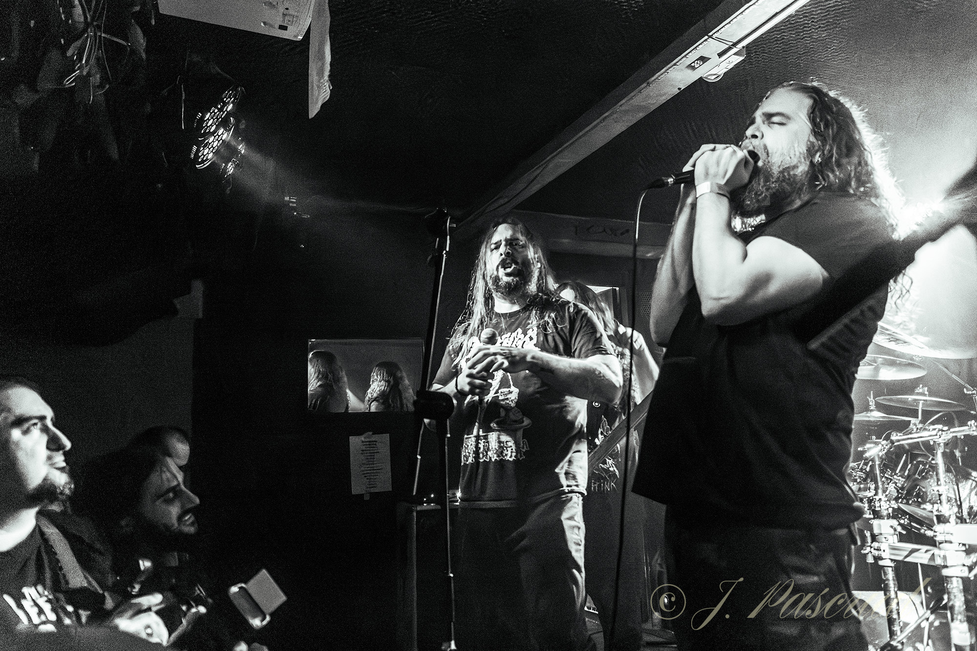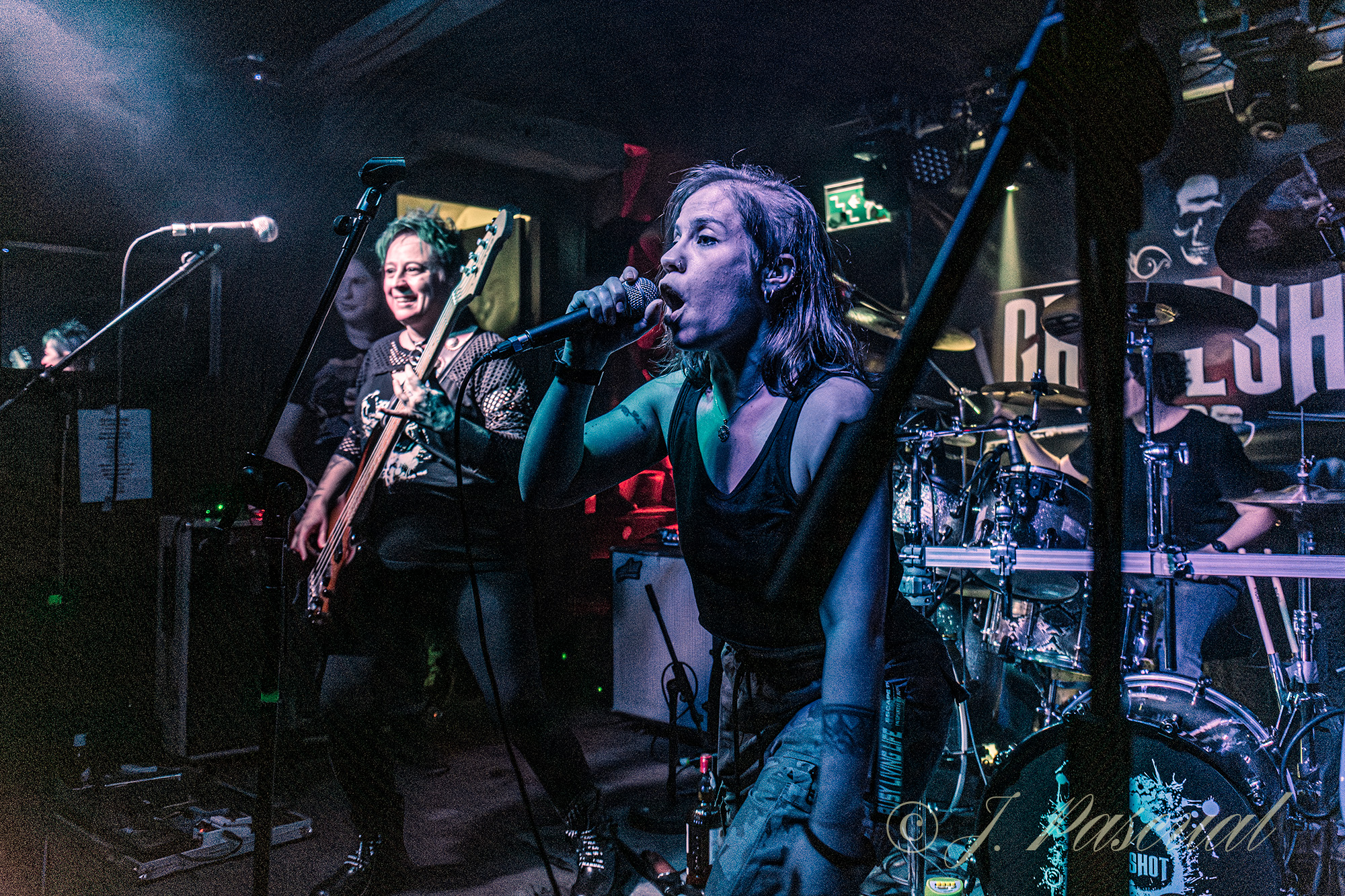 Aunque la suave melodía de la intro, con las que los miembros de la banda iban tomando posiciones en el escenario, podría dar a entender lo contrario, lo cierto que sin apenas contemplaciones al más puro estilo thrasher arrancaban con «Morning Rally» para adentrarse ya rápidamente en Oblivion con el primero de los cinco temas que configuran el mismo, «Lost My Way» para a golpe de doble bombo elevar la temperatura de la sala, temperatura que ya no bajaría en ningún momento de la noche, donde no faltaron pequeños pogos sobre todo con temas ya clásicos como «Pasasites» o «Hamster Wheel» en los que la escases de espacio no supuso ningún impedimento. «Out of my Hands» con el megáfono de Esteban y los pegadizos riff de la pareja de hachas como protagonistas, delimitaban un punto y aparte en su descarga para dejar el protagonismo de la noche a al rock femenino, cediendo los integrantes de la banda sus instrumentos a Leny (Red Whore) a la voz Kiara (Krazark) y Maca a las guitarras, Silvicius (Ser-Vício Permanente) al bajo y Ana (Axion9) a la batería, a las que les basto un solo tema «Calumet» para dejar claro su poderío sobre el escenario, para nuevamente depositar los instrumentos en manos de los principales protagonistas de la noche, entre los aplausos del público, que las solicitaba otro tema más.