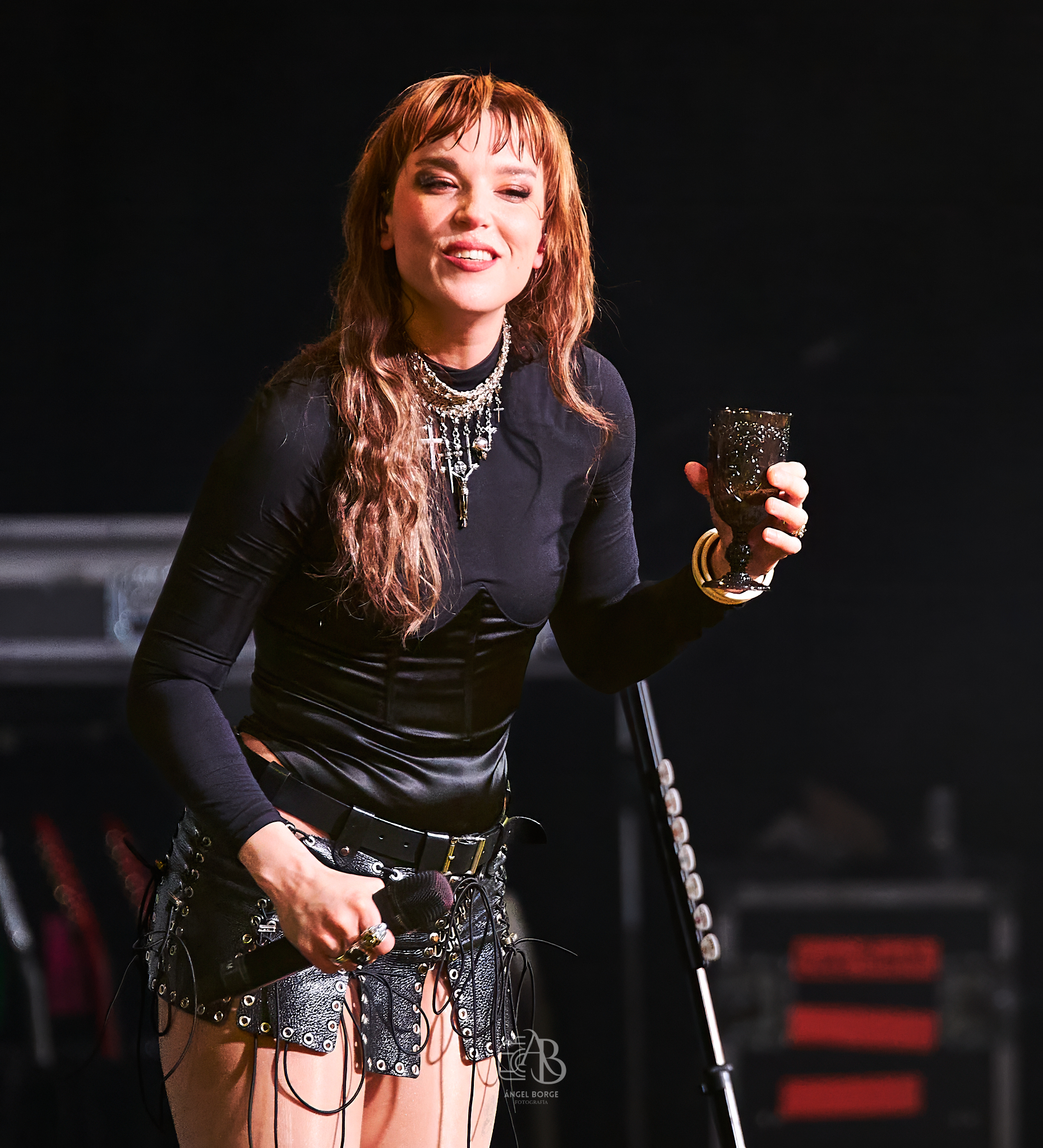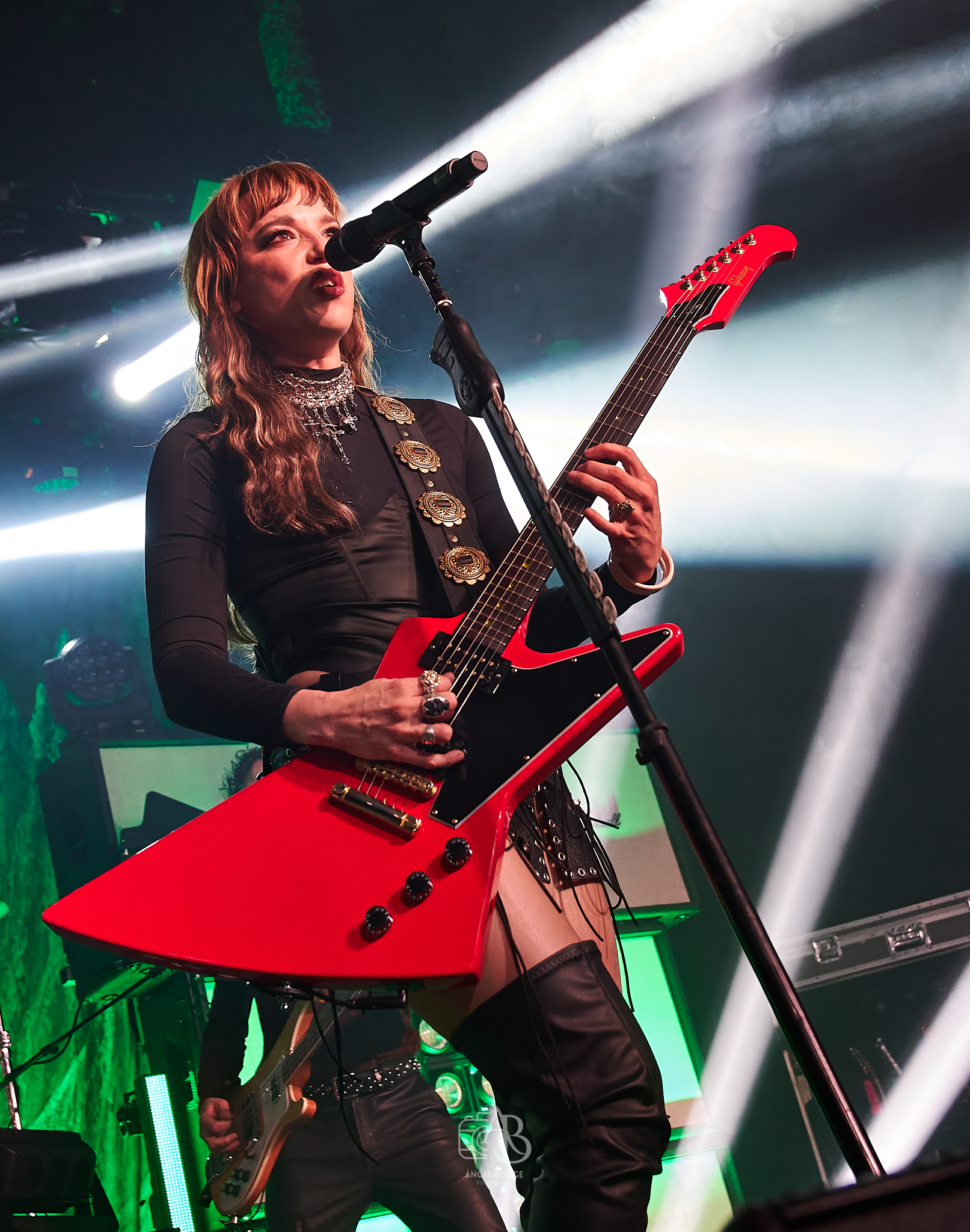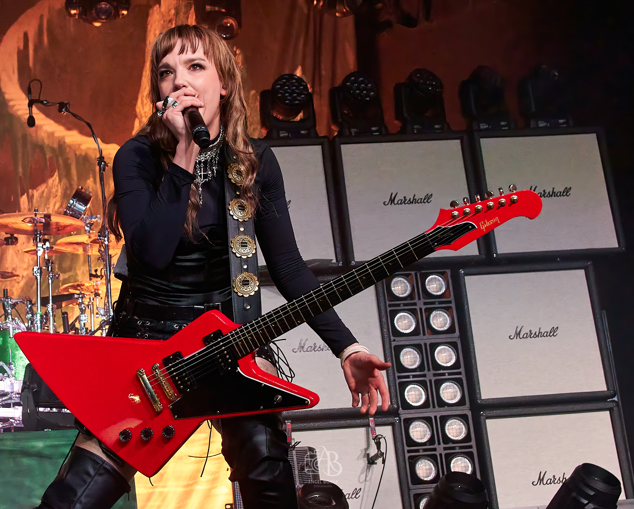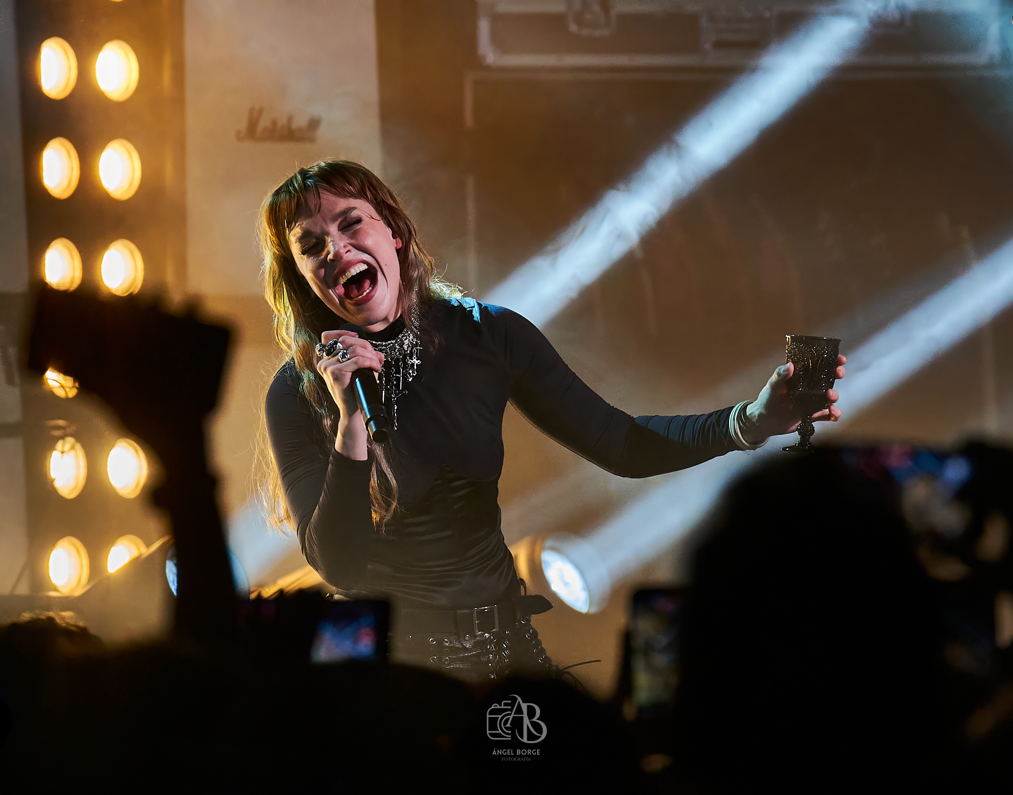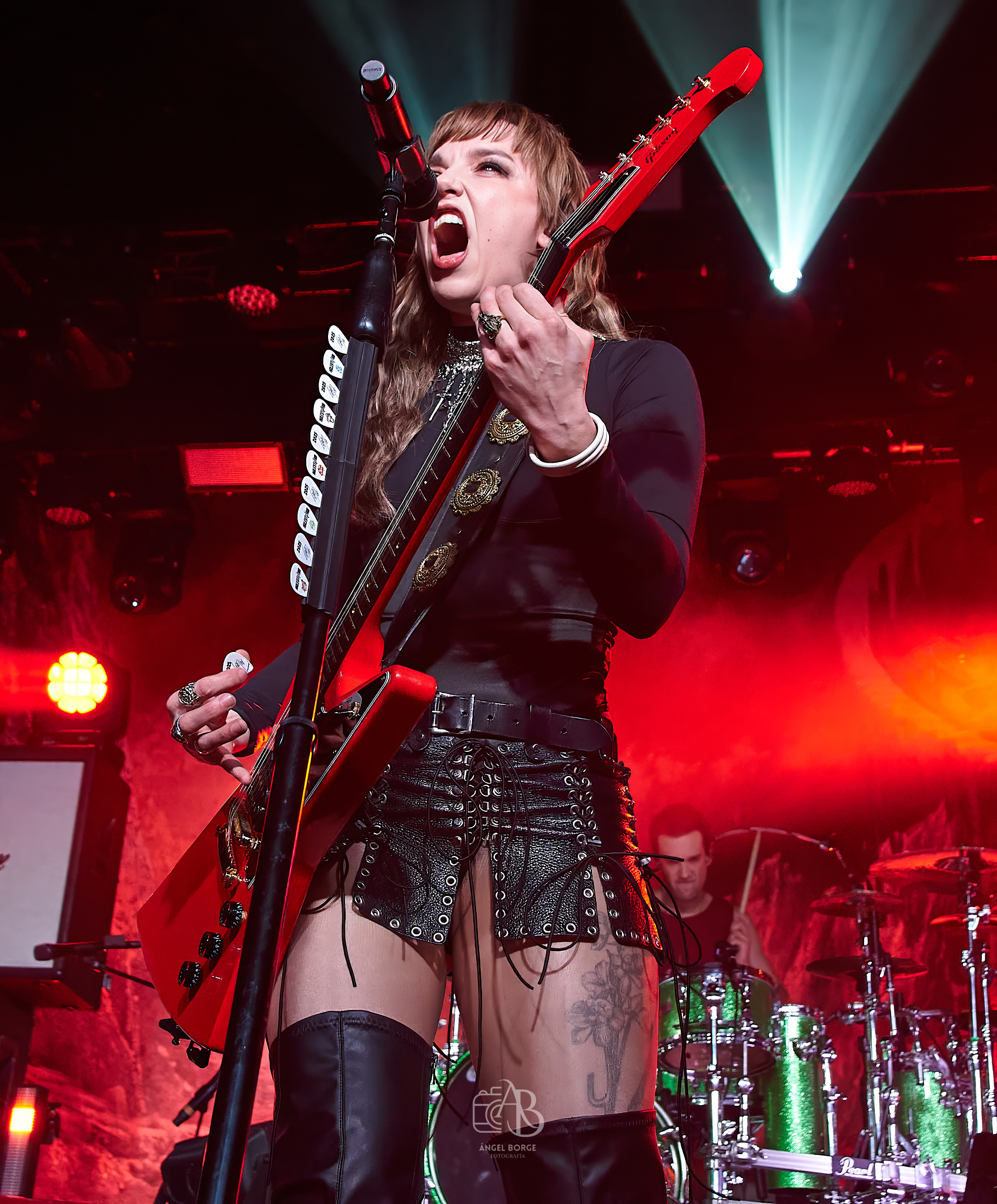 Llegó el momento de bajar el registro y tras colocarse el teclado en el centro de la tarima comenzó a sonar «Like A Woman Can», ese medio tiempo donde Lzzy fue capaz de transmitir un sentimiento brutal continuando tanto el sonido de dicho teclado como la emotividad durante la interpretación de «How Will You Remember Me?» como un especial recuerdo a todos esos desaparecidos que siempre pervivirían en nuestros corazones. Tras algo más de media hora de show volvió la energía con «Rock Show», habiendo sido las guitarras a estas alturas cambiadas varias veces por modelos diferentes y precisamente en el siguiente corte «I Am The Fire» apareciendo éstas con doble mástil. Con una copa mano en alto y tras arrodillarse en el escenario Lzzy ofreció prácticamente un «solo de voz» en «Familiar Taste Of Poison», dándose paso posteriormente a la rockera «Rain Your Blood On Me» donde el público fue un apoyo fundamental en los coros.
