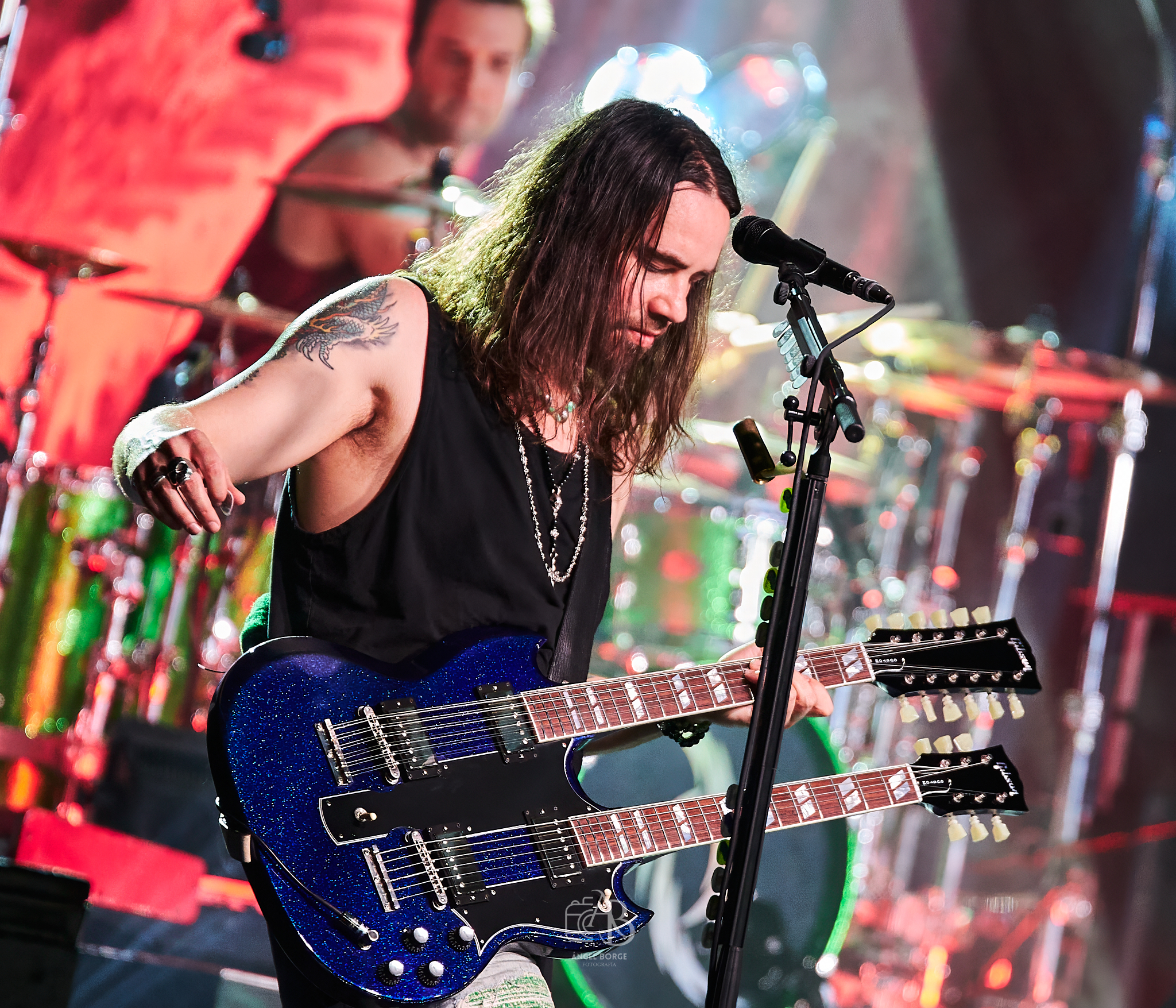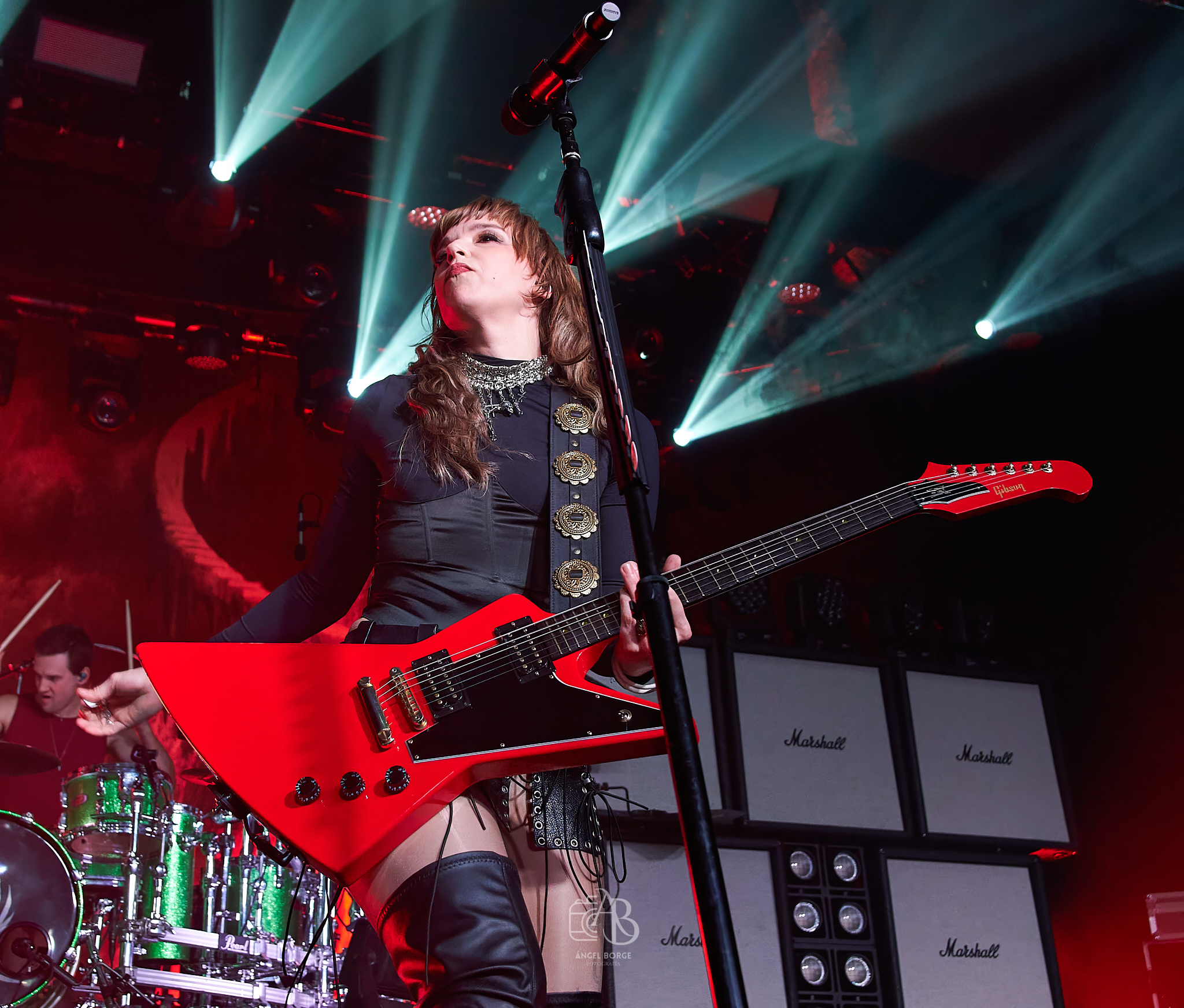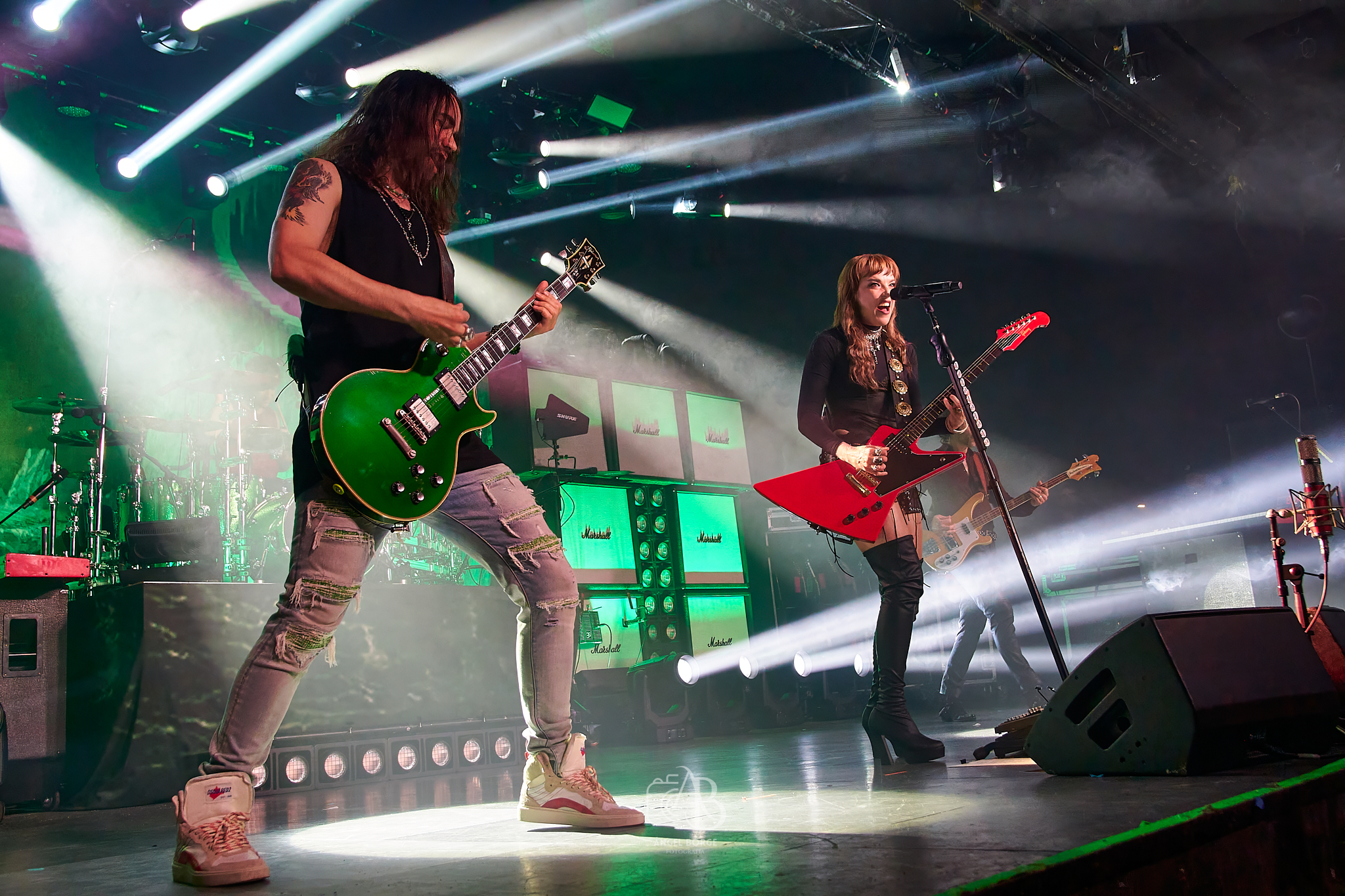 Media hora después y tras cambiarse el backline se presentó ante todos los allí presentes la banda de Pensilvania HALESTORM, notándose ya desde unos minutos antes de su aparición la impaciencia y la ilusión en las caras de la feligresía que ocupaba las primeras filas como es de rigor cuando hablamos de un quinteto formado por Joe Hottinger a las seis cuerdas, Josh Smith a las cuatro y teclados, los hermanos Hale con Arejay a la batería y la inmensa Lzzy a la voz, guitarra y también a los teclados que han hecho muy bien las cosas a lo largo de los años, ya que llevan más de quince en la música siendo su último trabajo Everest ejemplo de una trayectoria la cual sitúa actualmente a la formación en la cima.