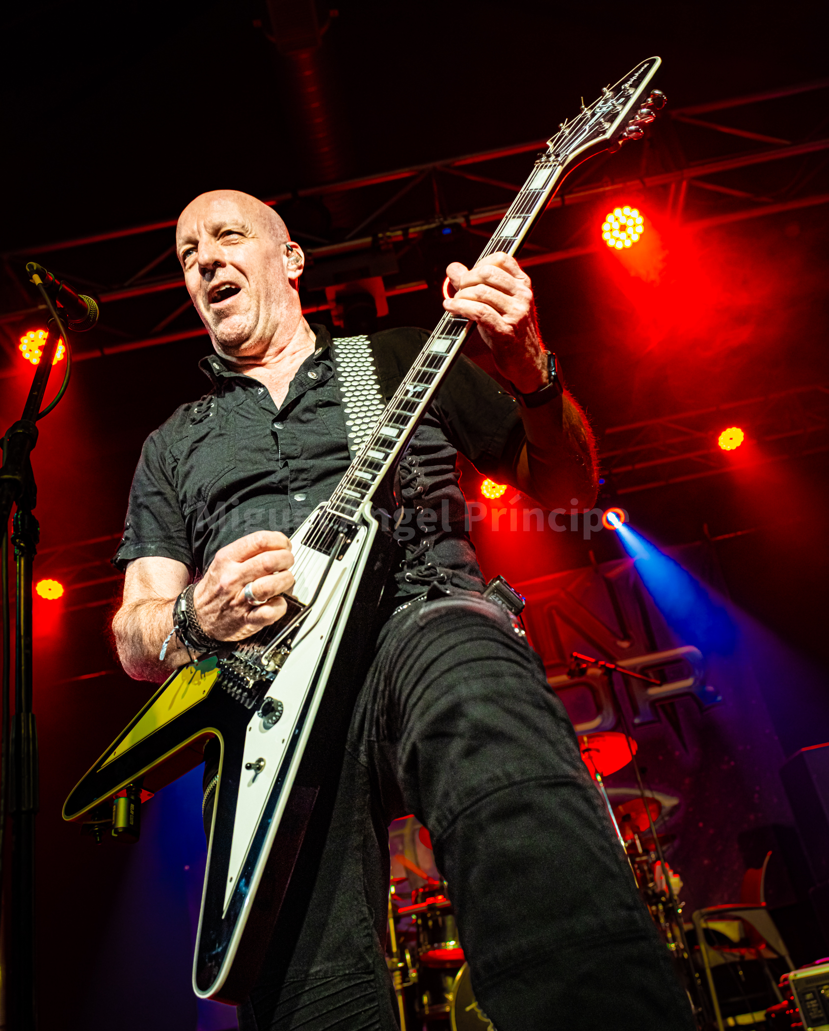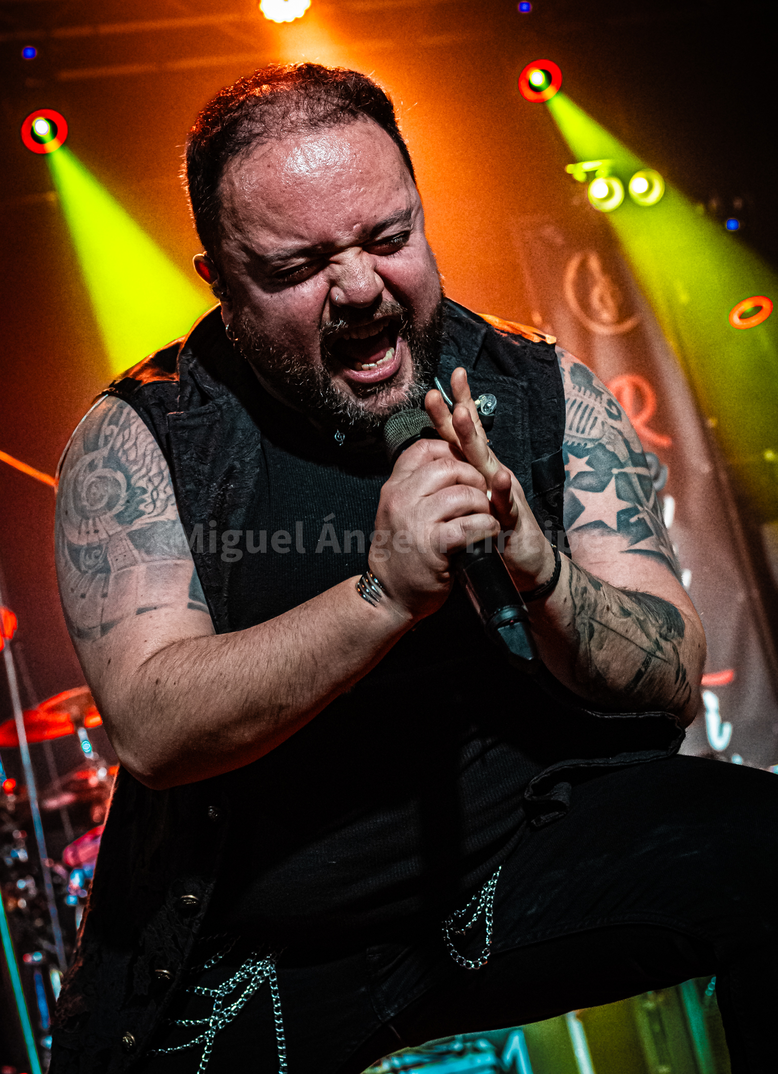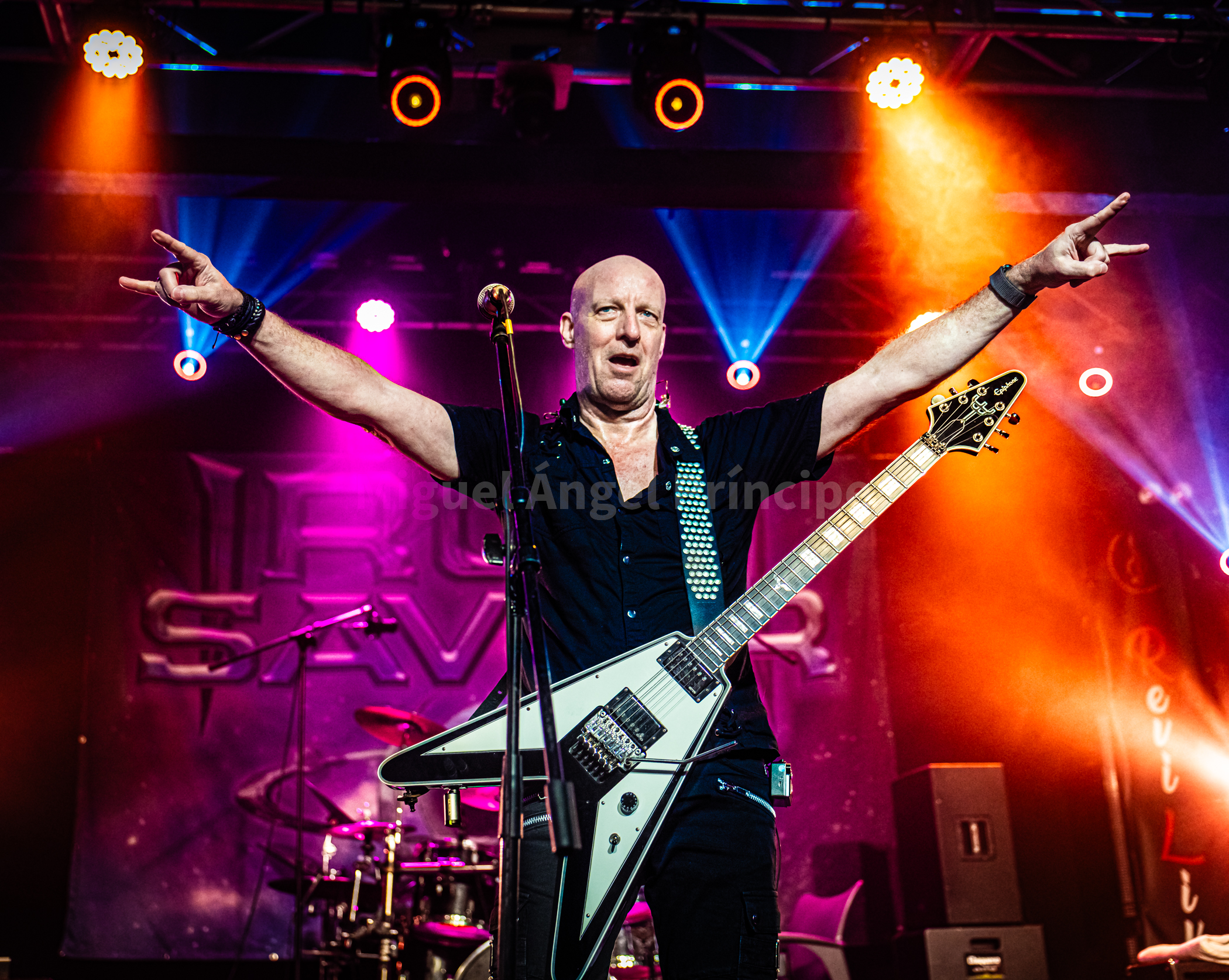 Era su noche; IRON SAVIOR estuvo tocado por el dedo divino durante toda la actuación comenzando bajo un alucinante juego de luces con «Way Of The Blade» directa a la cabeza y desenfundada con el pulso de un diamante para continuar marcando precisión gracias al corte «Roaring Thunder» del 2019, tema donde se lució el batería enrocado en un doble bombo atronador mantenido durante todo el show mientras las piezas de Power Metal se iban sucediendo con más o menos epicidad pero con una base clara en la autoritaria garganta de Piet abrazando himnos como «Starlight» o «Souleater», ambas coreadas por el público en puro feedback con unos entregados SAVIOR.