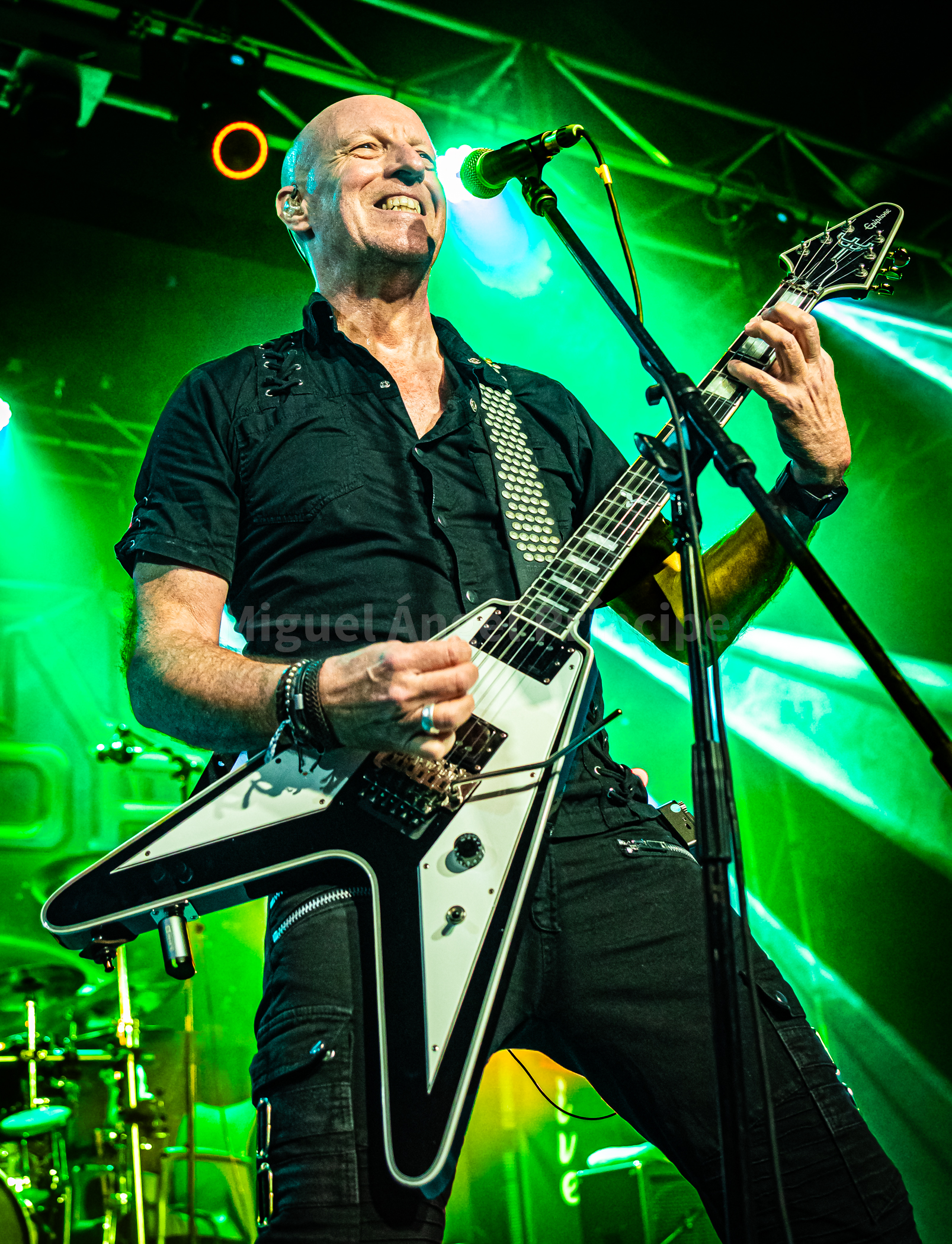 La montaña rusa final estaba a las puertas que se abrieron majestuosamente con «Heavy Metal Never Dies» en total eclosión siendo este himno una apuesta a caballo ganador en los directos, un tema que ha envejecido como el buen vino haciendo subir tanto decibelios como adrenalina para abrazar también a la enérgica «Condition Red» de afiladas guitarras muy del gusto MAIDEN seguida por el frenesí apocalíptico de «Atlantis Falling» y como punto final la locura en forma de JUDAS PRIEST con su imbatible «Breaking The Law», a la que estos jinetes del Metal otorgaron una pegada a modo de gancho sellándose con la misma un estratosférico concierto.