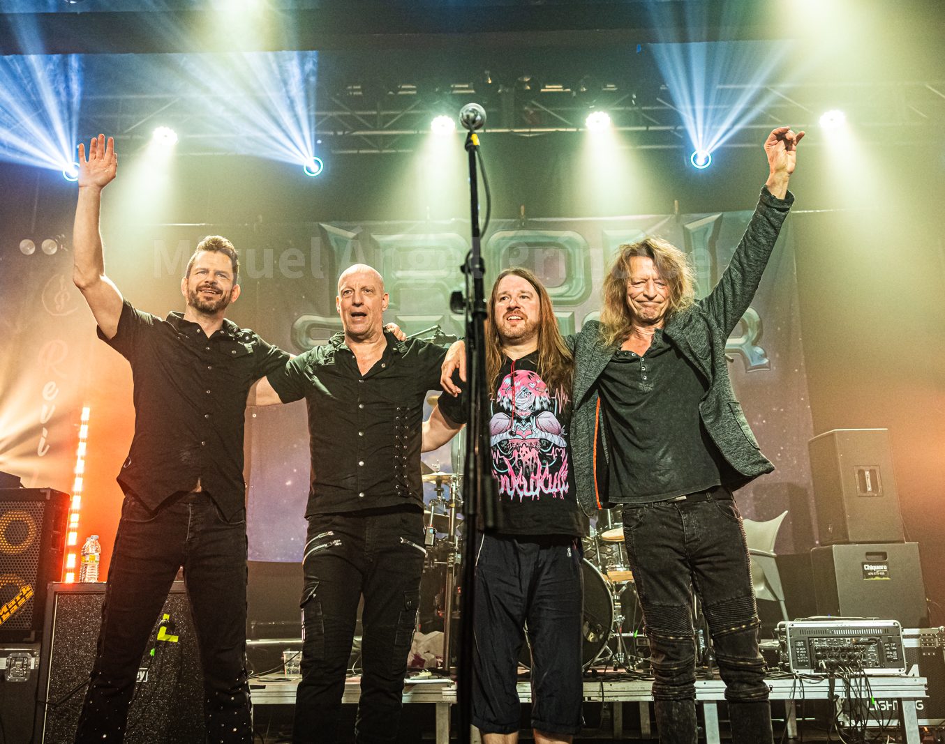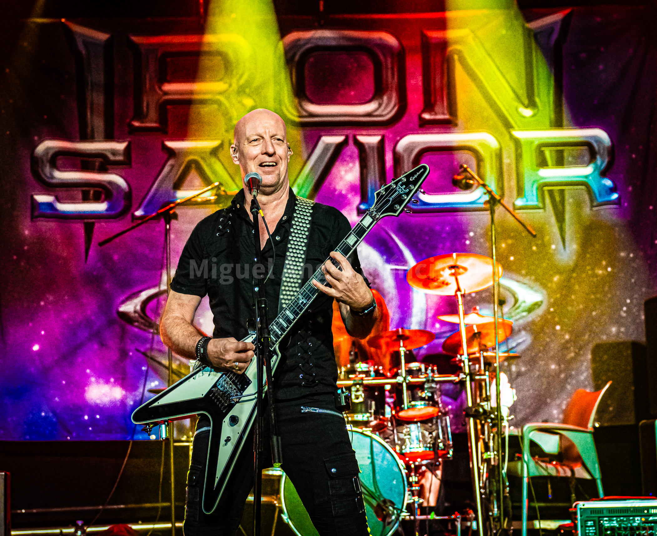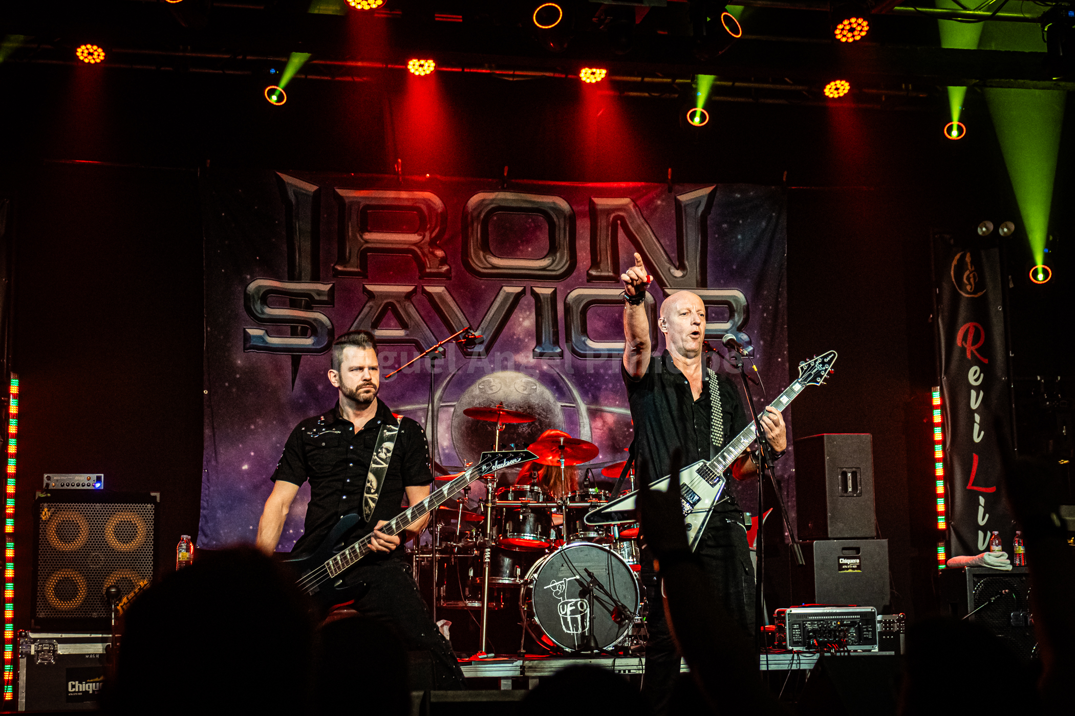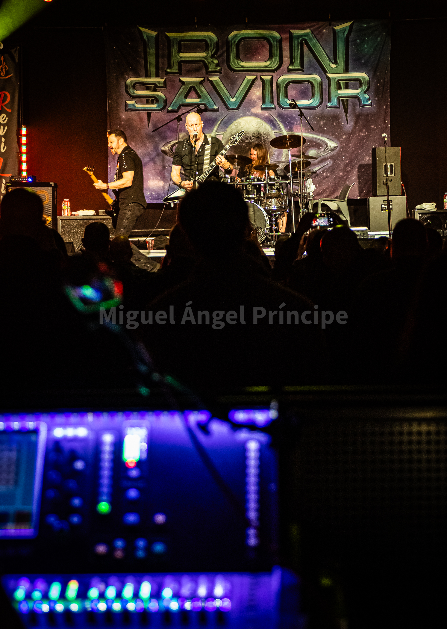 El telón gigante que comenzó a instalarse como parte del cambio de backline lo decía todo, los icónicos germanos del Heavy Metal IRON SAVIOR visitaban la capital culminando en ella una exitosa gira en la que han recorrido seis ciudades de la «piel de toro» celebrando su treinta aniversario y con el disco de autor Reforged – Machine World recién horneado, una ansiada trilogía que se cerraba llevada al directo bajo el liderazgo del carismático Piet Sielck al micrófono aunque sin hacer de menos a los tres jinetes Joachim «Piesel» Küstner a la guitarra, Patrick Opitz al bajo y Patrick Klose a la batería que junto a él asaltaron el escenario arrasándolo de principio a fin.