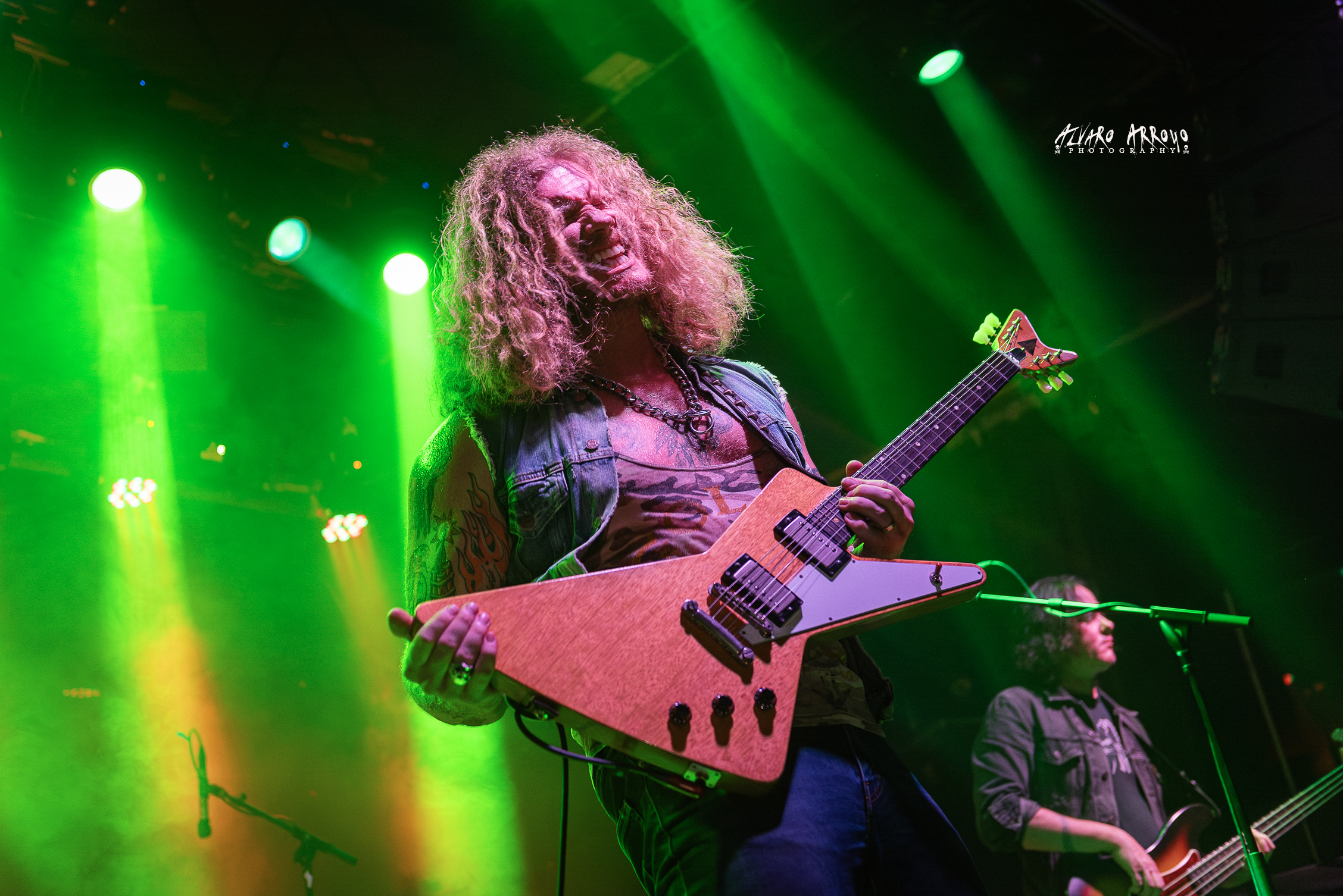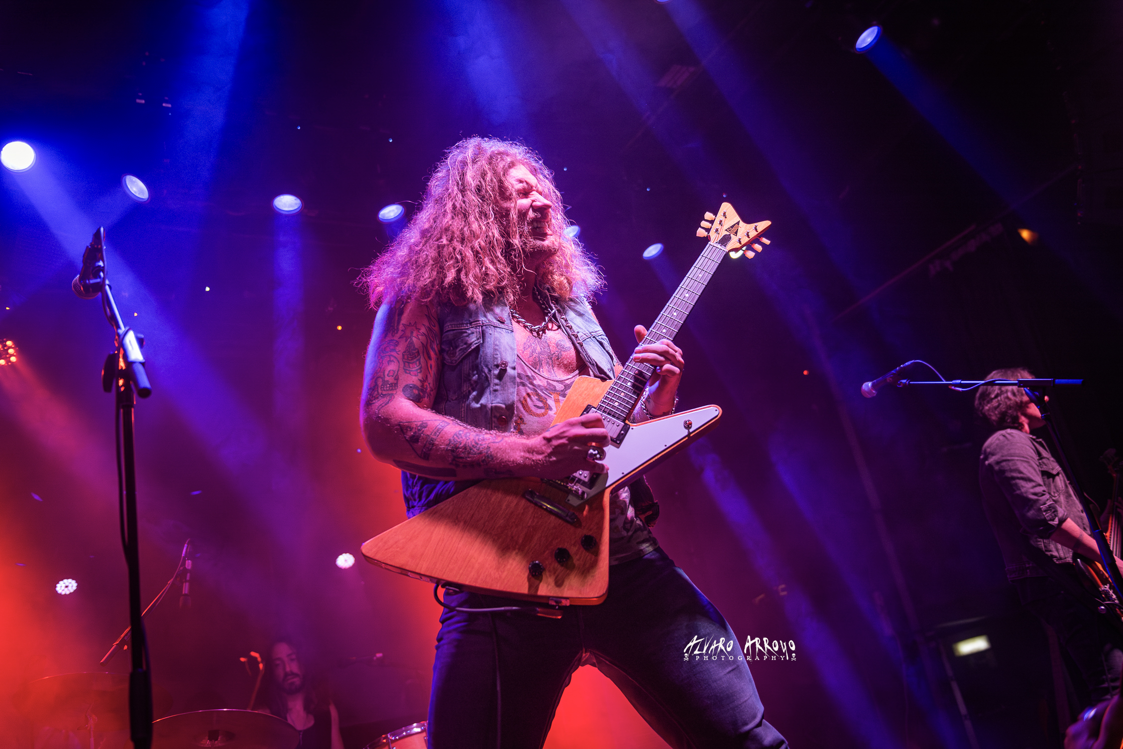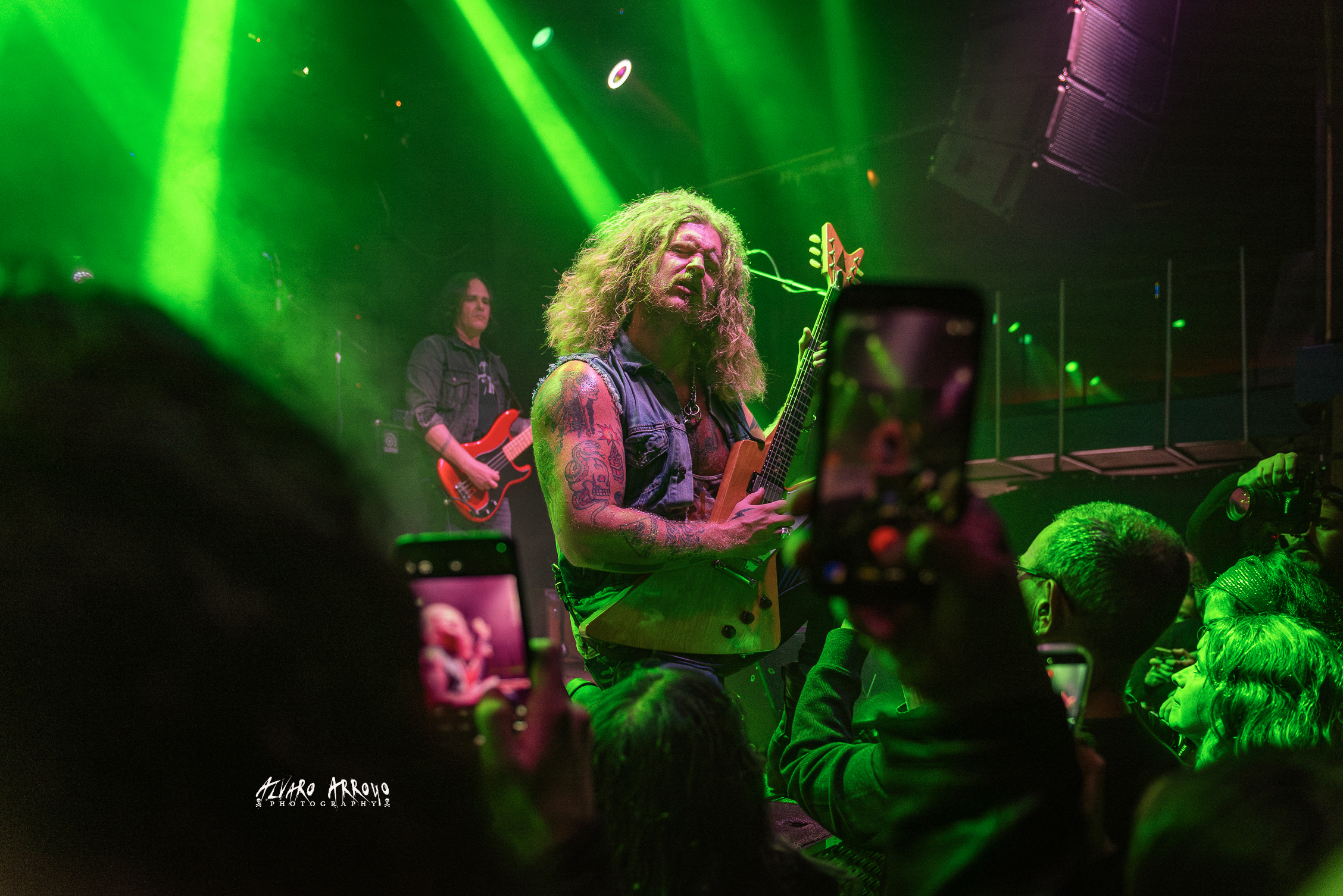 El broche de oro —como ya ocurrió en visitas anteriores a la capital— lo pondría la presencia sobre el escenario de Tony “Waka” Martínez, acompañante habitual de artistas internacionales como Gloria Gaynor o nuestra Marta Sánchez. Presentado por Jared como “El conquistador”, el dúo compartiría duelo guitarrero y se apoderaría de la magia de dos clásicos imperecederos del Rock como son el “Mississippi Queen” de Mountain y el “Voodoo Child” del mago Hendrix, compartiendo habilidades sobre el mástil de sus guitarras para deleite de los más aficionados a las seis cuerdas, antes de retirarse del escenario con el ambiente bien caldeado tras ochenta minutos de abrasadora actuación.