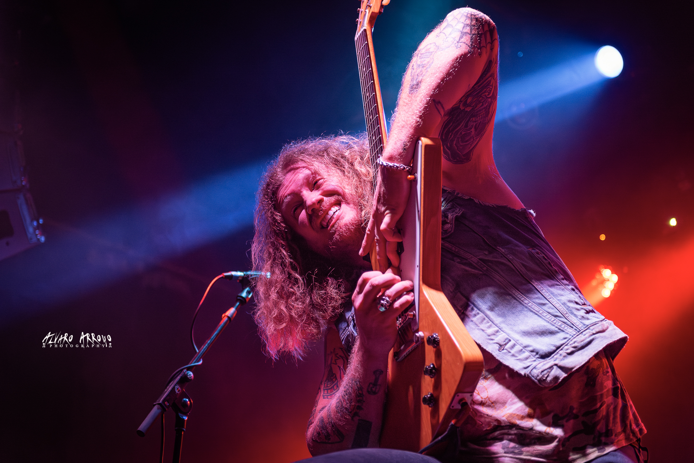 La inspirada y motivadora “Nails in the Coffin” serviría de perfecta pista de despegue al último tercio de la actuación, con la batería de Ryan Rice marcando el paso, sobre ese estribillo de Jared que habla de superación y actitud frente a las adversidades, antes de que el protagonista de la noche nos anunciara que lo siguiente que nos iban a ofrecer era una auténtica jam, arrancando con el inicio Funky de “Honey Forgive Me”, con el guitarrista sentándose en el borde derecho del escenario para regalarnos el solo del tema a escasos centímetros de las primeras filas, antes de volver al centro del mismo para vacilarnos con los acordes de varios clásicos que definieron todo un género como “Smoke on the Water”, “Man on the Silver Mountain” o “Black Sabbath”, para terminar de rematarnos con la inmortal y socarrona melodía de la BSO de “The Pink Panther”.